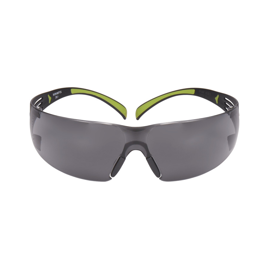 3M™ SecureFit™ beskyttelsesbriller 400-serien har et letvægtsdesign med en uindfattet polykarbonatlinse, 3M™ Pressure Diffusion Temple-teknologi, brede fleksible brillestænger og bløde, justerbare næsepuder.