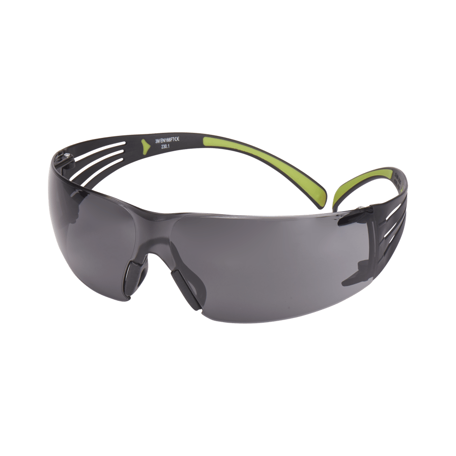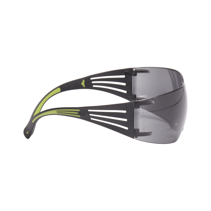 3M™ SecureFit™ beskyttelsesbriller 400-serien har et letvægtsdesign med en uindfattet polykarbonatlinse, 3M™ Pressure Diffusion Temple-teknologi, brede fleksible brillestænger og bløde, justerbare næsepuder.