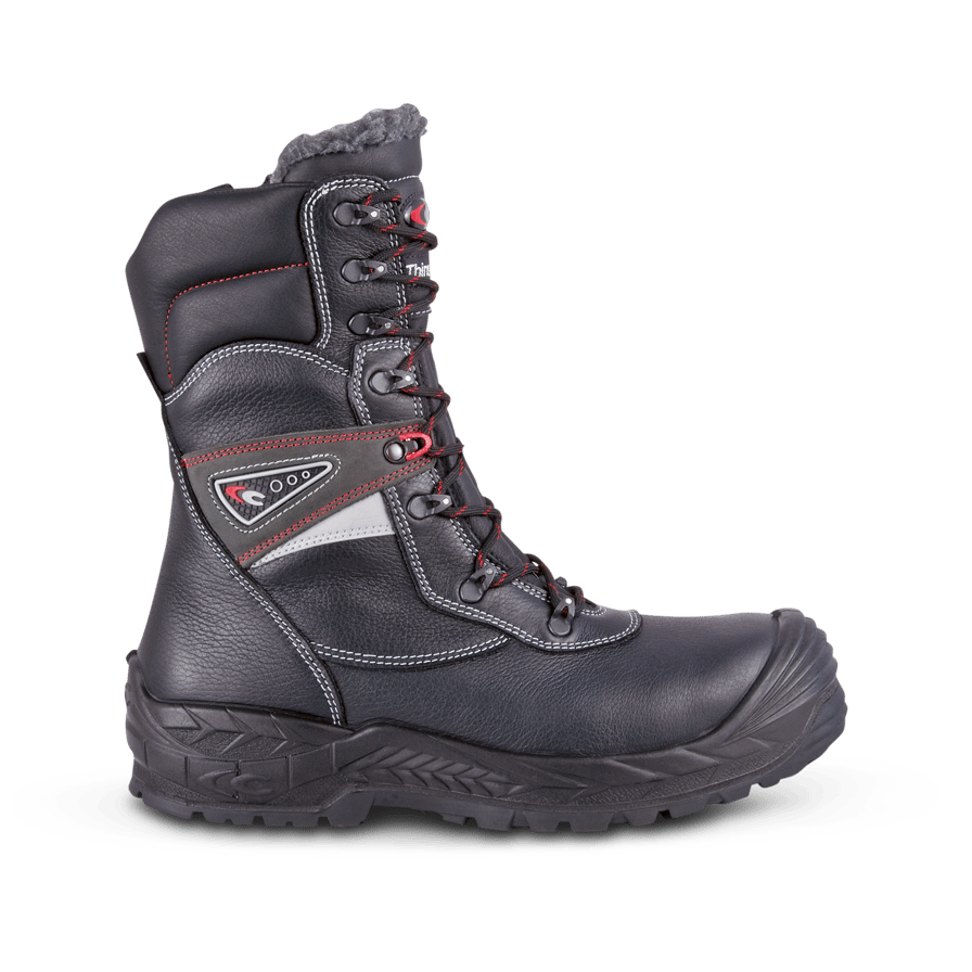 Cofra Fundinn Safety Boot er en ekstra bred vinterstøvle med snørebånd og lynlås. Den har dobbelt foring af pil og Thinsulate®, tåkappe af glasfiber og sømværn af tekstil. Overdelen er lavet af italiensk læder, og ydersålen er lavet af PU/nitrilgummi.