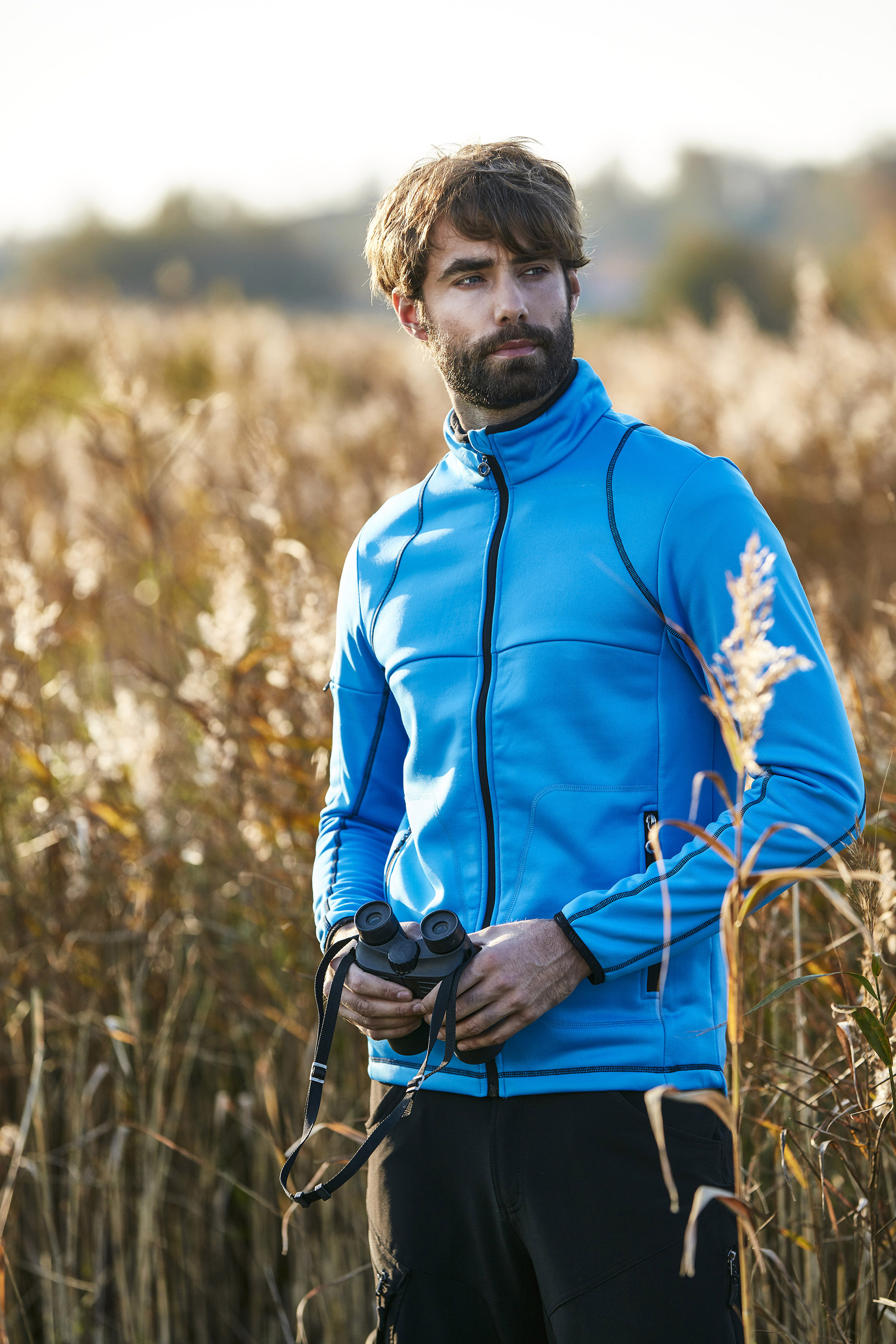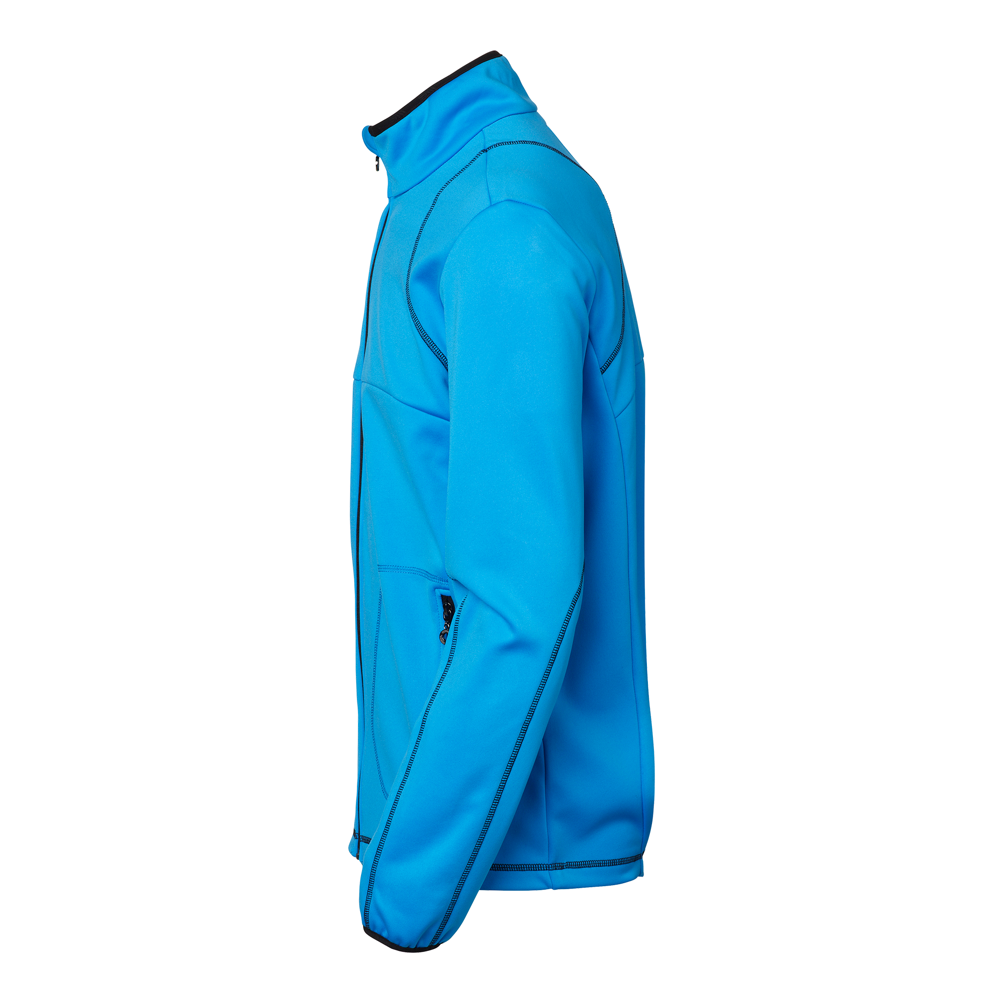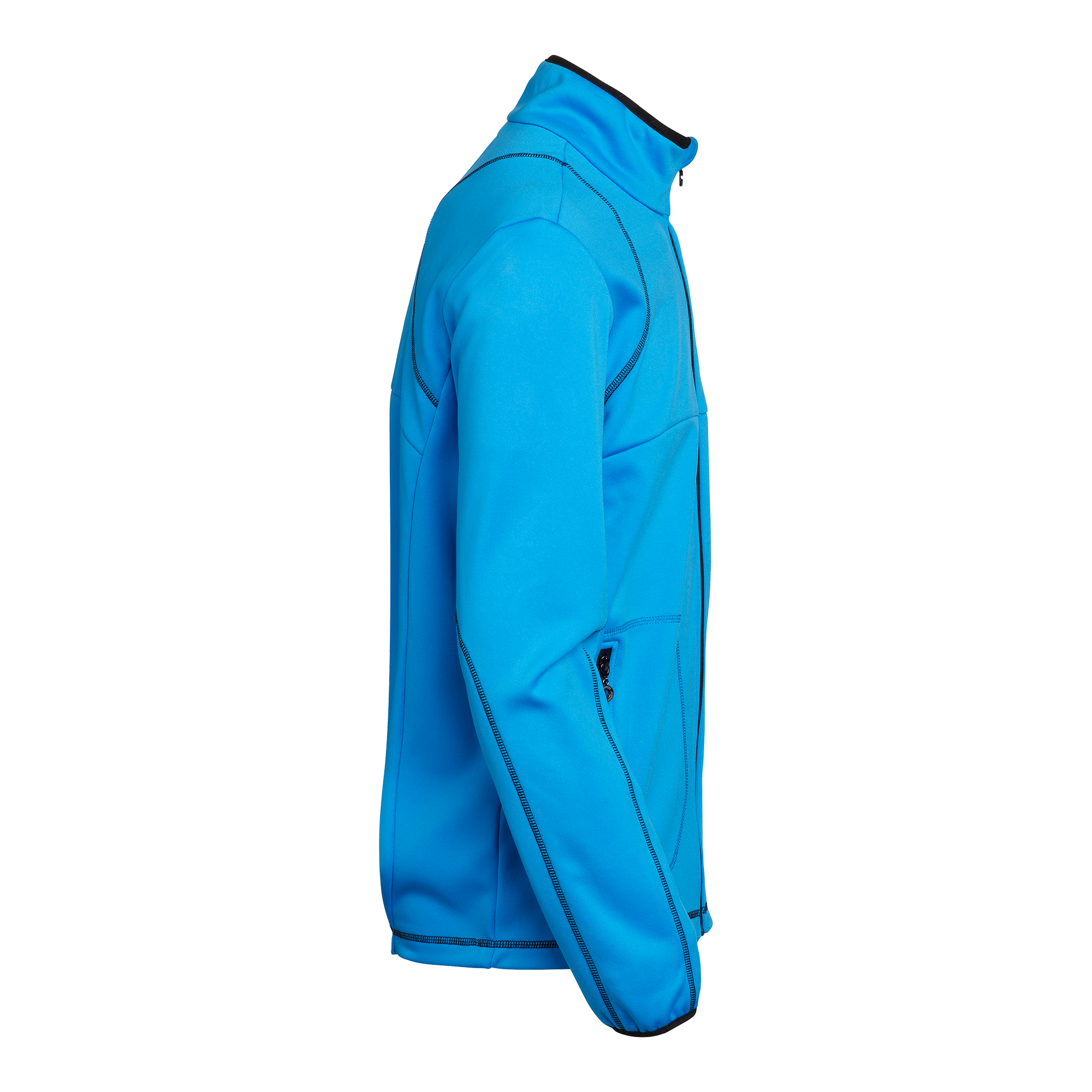 Power stretch-jakke med kontrastfarvede elastikkanter ved hals og ærmer. Udstyret med lynlåse og detaljerede lapper i kontrastfarve. Højre ærme med mobillomme og snøre på indersiden.