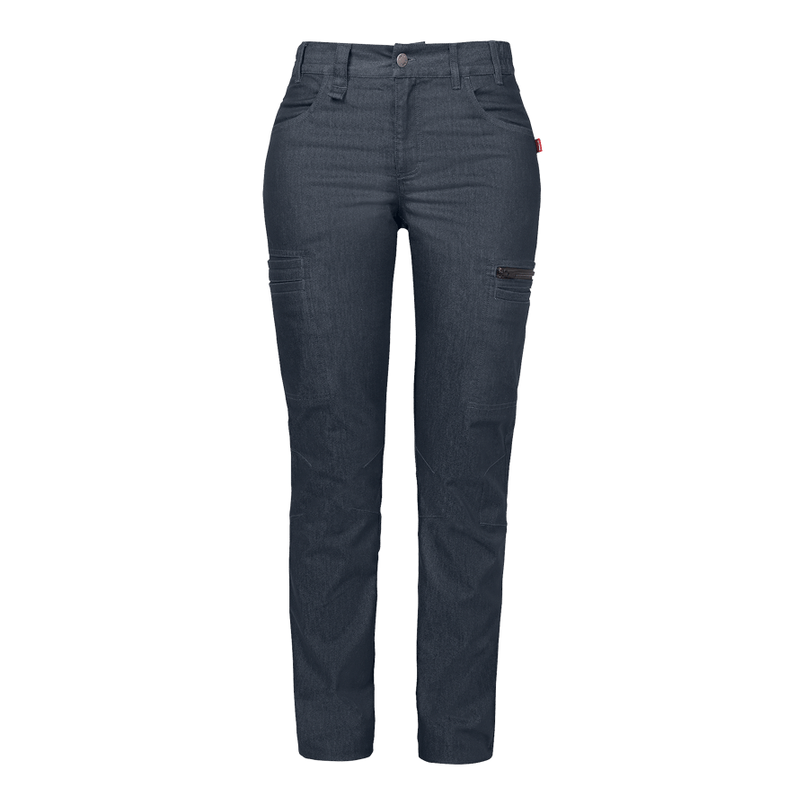 Fia Trousers fra South West er en robust og komfortabel denimbuks til kvinder, som er designet til professionelle, der har brug for slidstærkt arbejdstøj med et feminint touch. Bukserne har stretchkvalitet for optimal bevægelsesfrihed og perfekt pasform, mens den vaskede finish giver en blød og behagelig fornemmelse. De har to forlommer, påsatte baglommer og en benlomme med dobbelt lynlås og mobillomme på venstre ben, hvilket giver rigelig plads til opbevaring af arbejdsredskaber og personlige genstande. På højre ben er der en dobbelt stiklomme og en kuglepenslomme, som giver ekstra opbevaringsmuligheder. Den faste linning med elastik i siderne giver ekstra komfort, og bukserne har også bæltestropper og en nøgleholder til sikker opbevaring. Gylpen er udstyret med lynlås og knap for sikker lukning. Udskæringer ved knæene giver øget bevægelighed og komfort på lange arbejdsdage. Fia Trousers fås i flere tommestørrelser og tre forskellige skridtlængder (30, 32, 34), hvilket gør det nemt at finde den perfekte pasform. South Wests engagement i kvalitet og holdbarhed gør disse bukser til et fremragende valg for kvinder, der kræver både stil og funktion i deres arbejdstøj.
