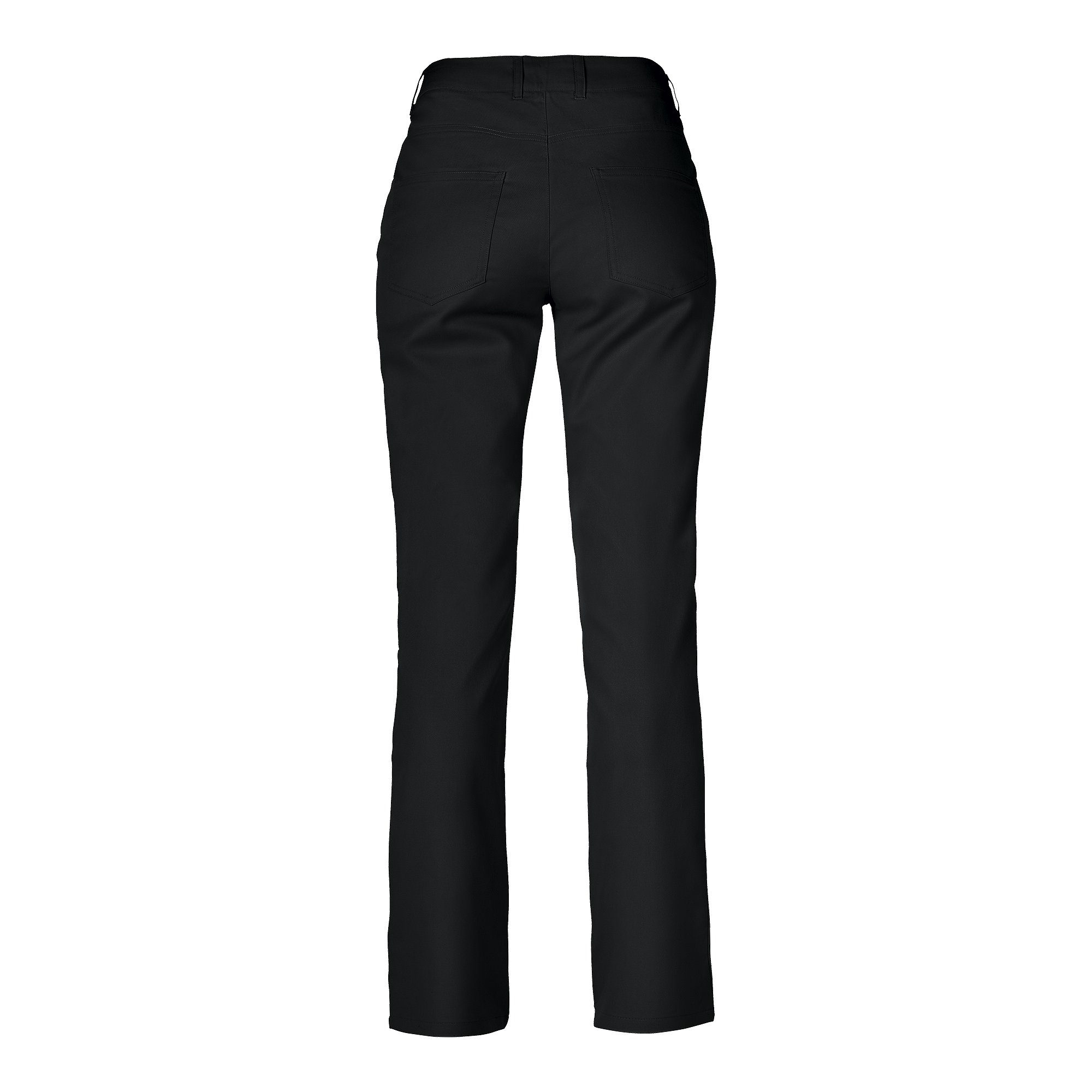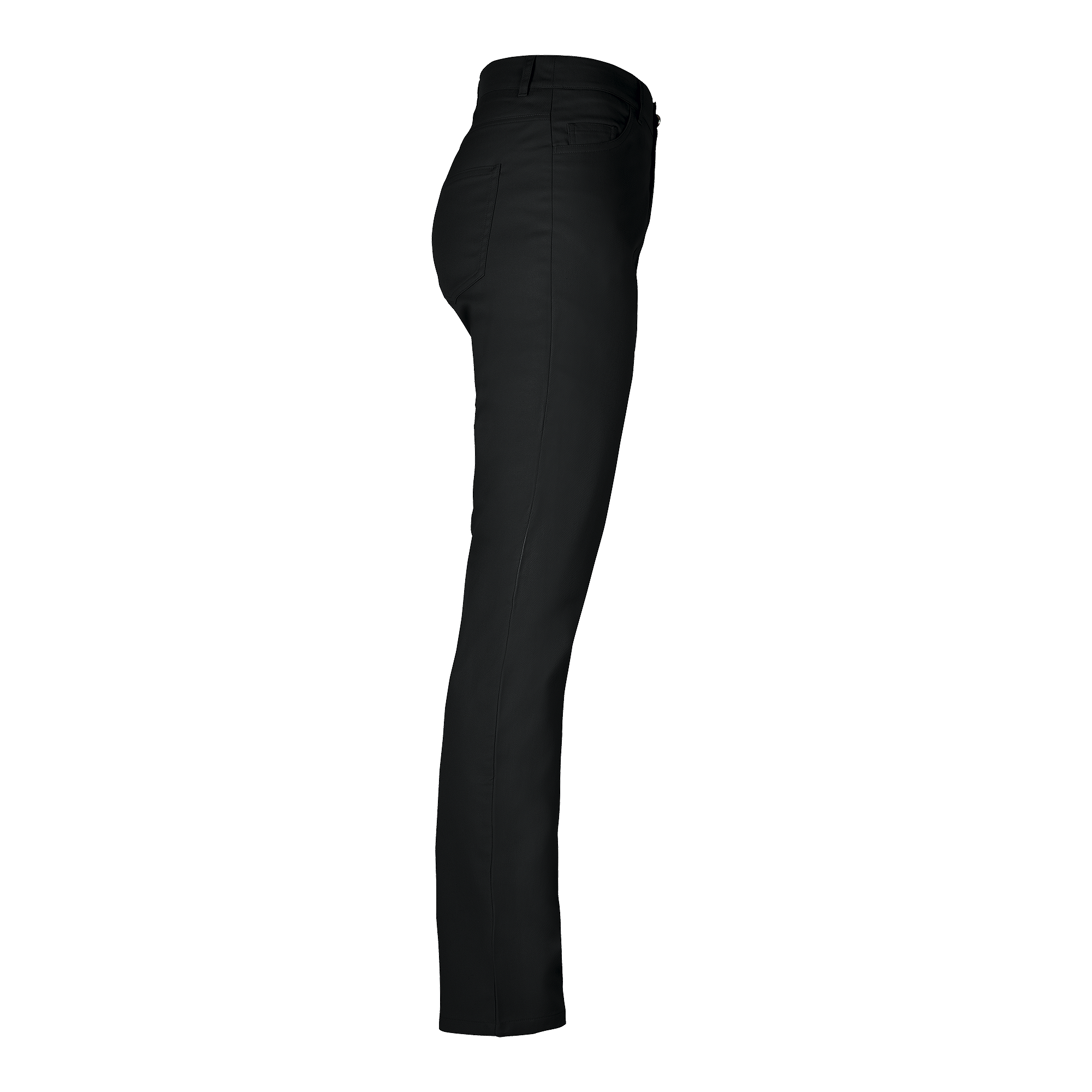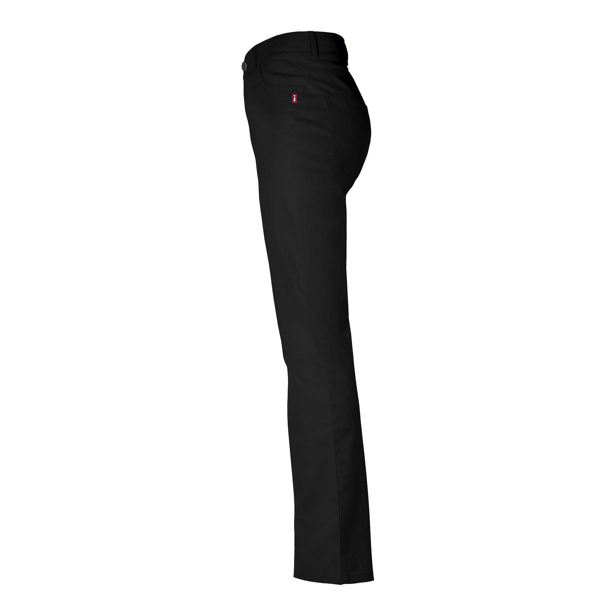 Moderne 5-lomme-bukser i stretchkvalitet med en slankere pasform. Slidstærke arbejdsbukser uden benlommer. Udstyret med lynlås, knap og linning med bæltestropper. Indvendig benlængde 80 cm i størrelse M