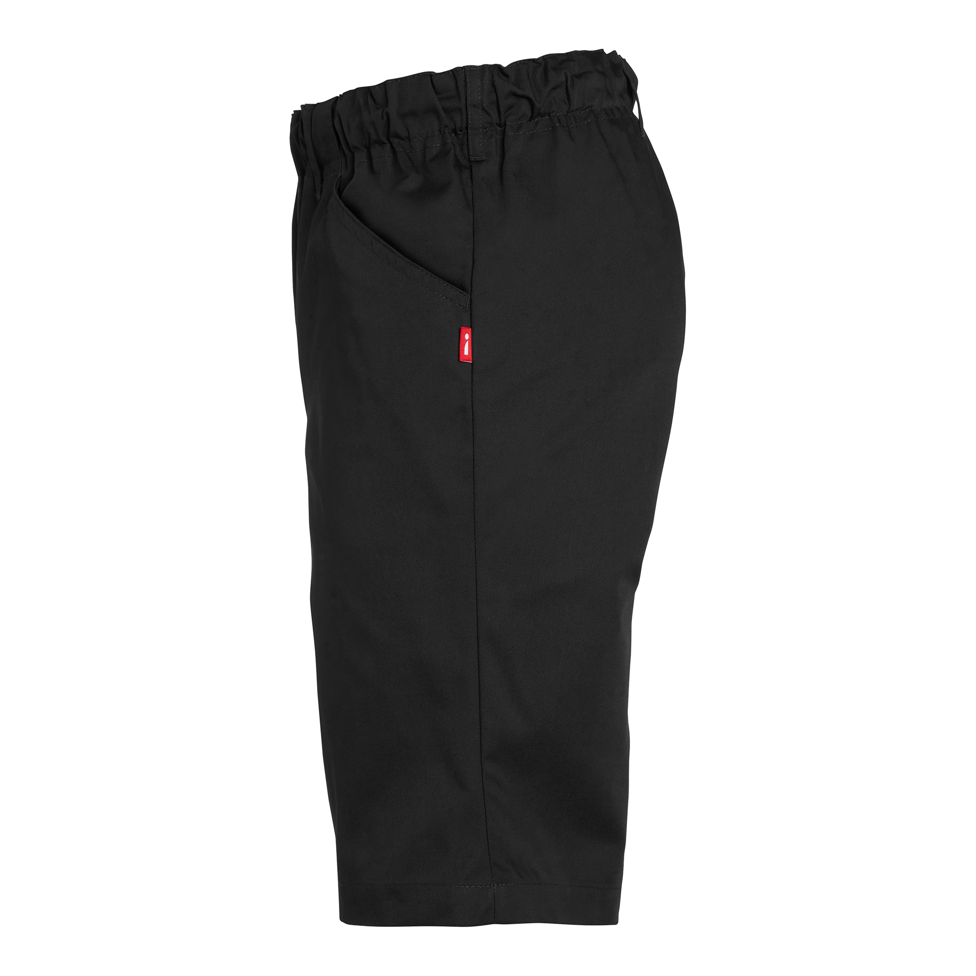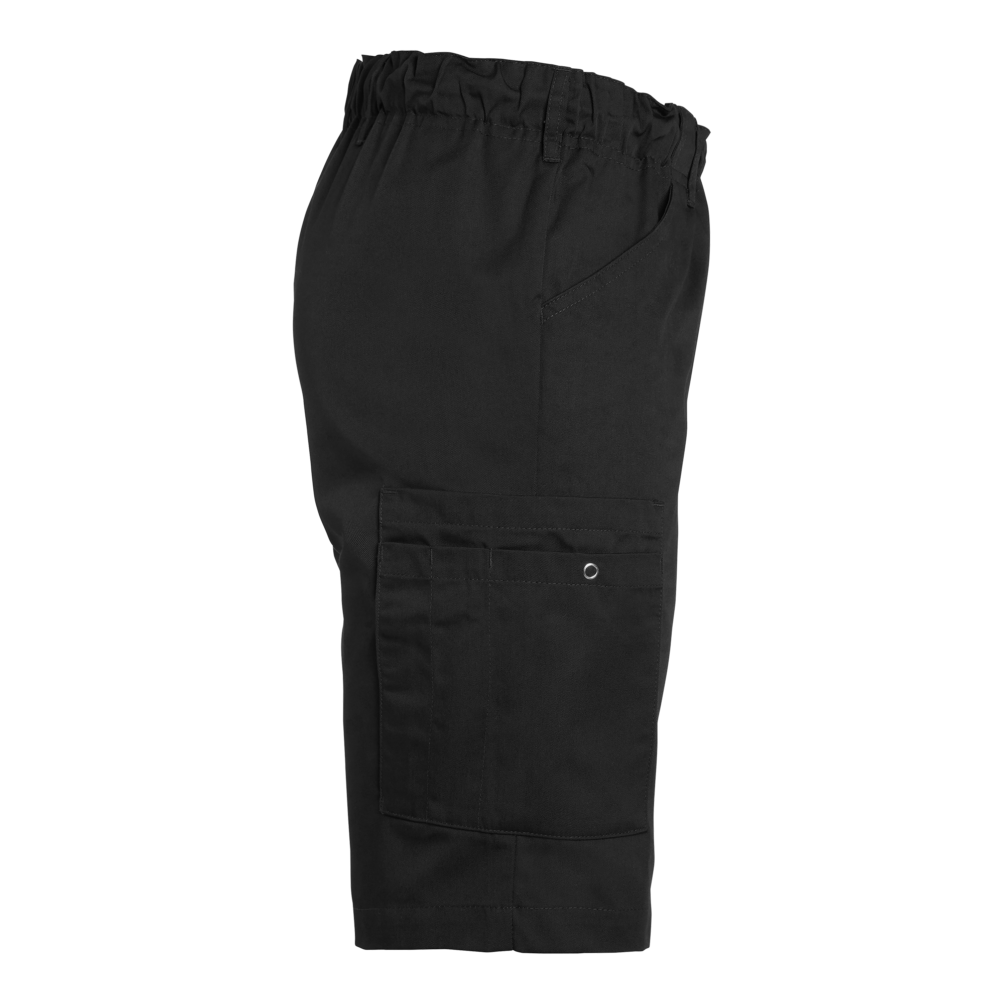 Rummelige unisex-shorts med elastik i taljen og snøre. Udstyret med forsænkede forlommer og dobbelt benlomme med penalhuslommer og trykknap. Indersømslængde 27 cm i størrelse M.