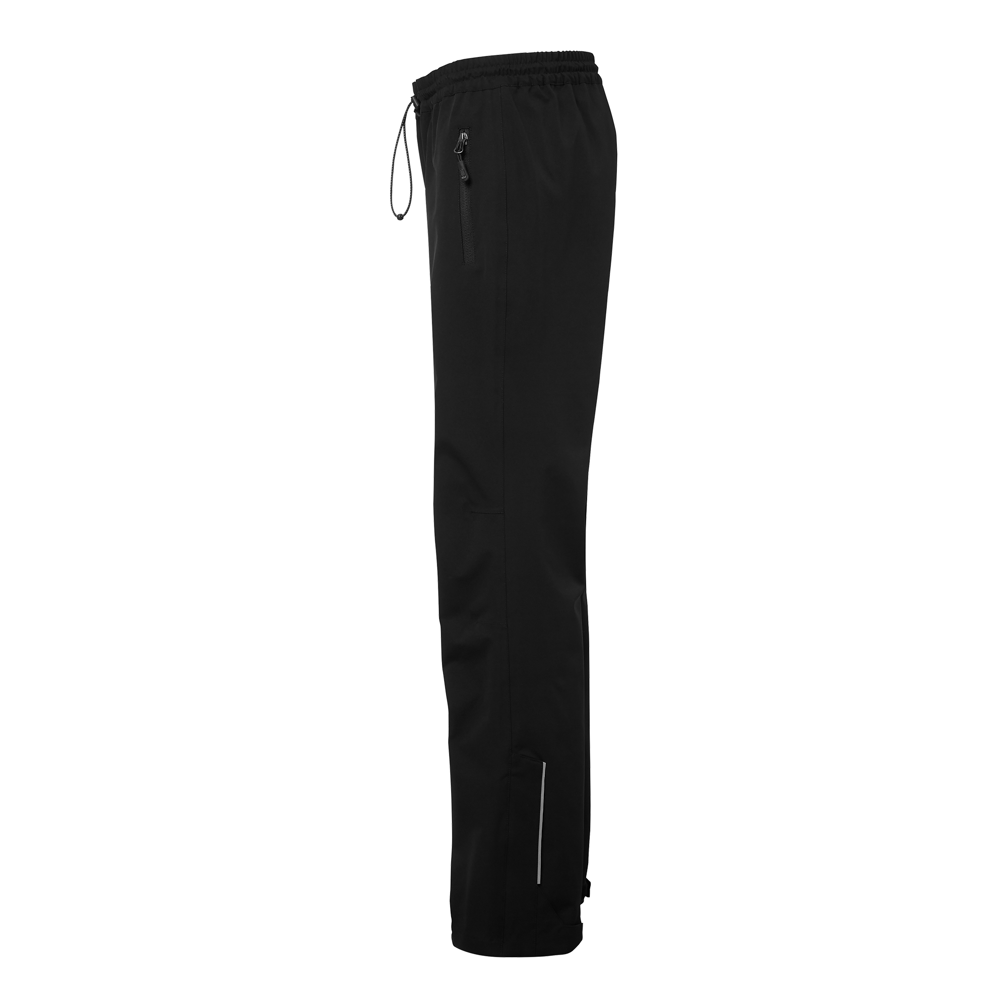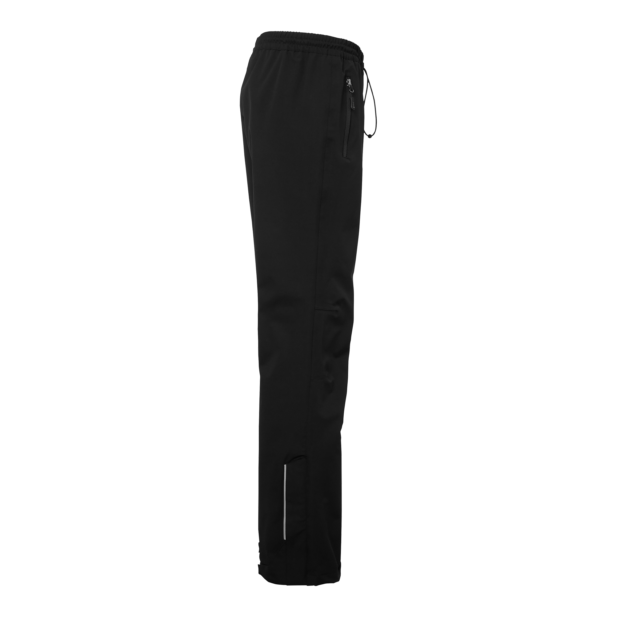 Vind- og vandafvisende skalbukser i vapour fit med tapede sømme og mekanisk stretch. Justerbar elastik i taljen og lynlås med refleksdetaljer ved benafslutningerne. Foret med polyesternet foroven og glat polyester ved benene. To sidelommer med lynlås.