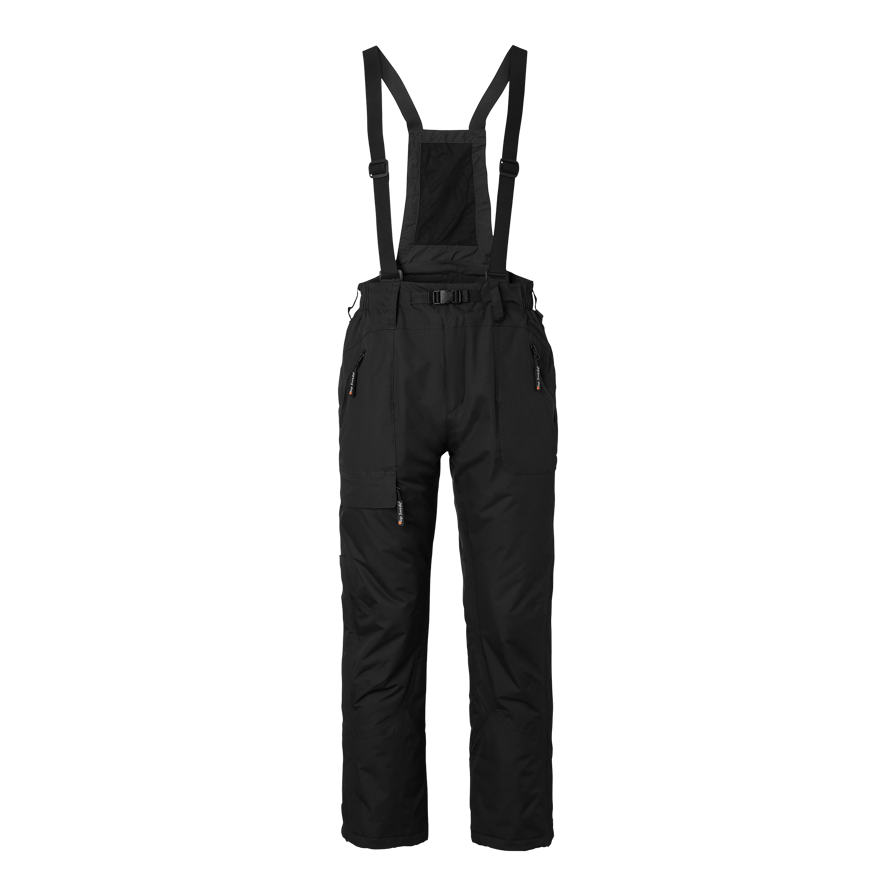 Quiltforede vinterbukser, der er vind- og vandtætte med tapede sømme. Aftagelige seler, to forlommer med vandtætte lynlåse, benlomme med lynlås, forbøjede knæ og justerbare benmanchetter. Ideelle til arbejde i kolde omgivelser.