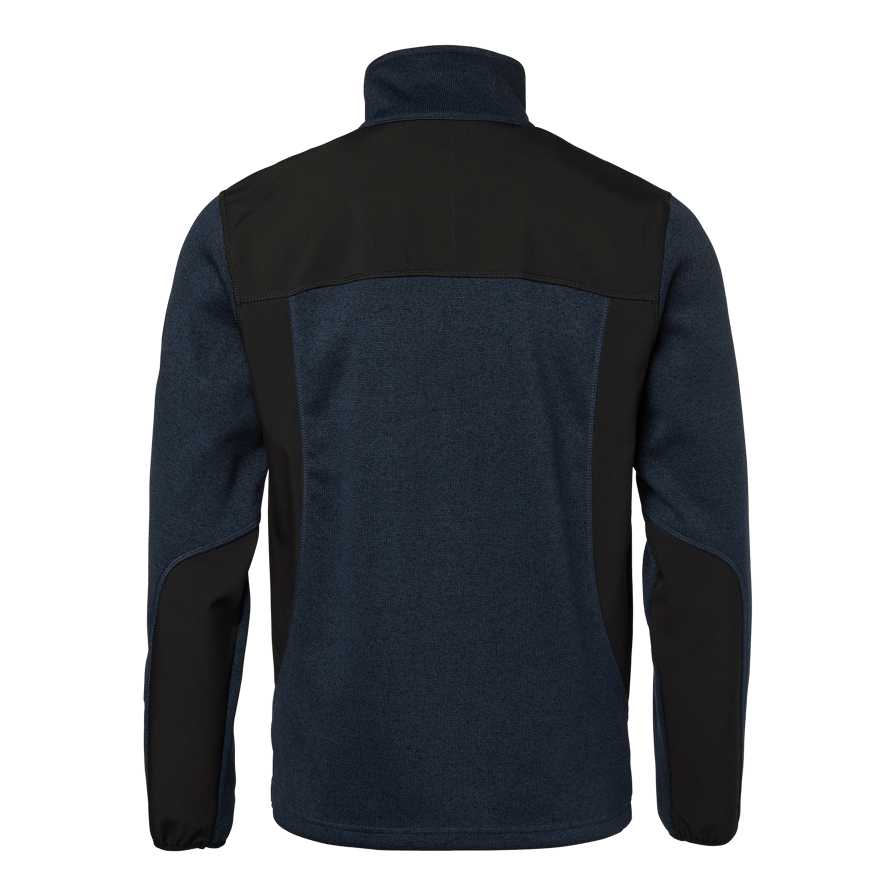 Strikket fleecejakke med detaljer af softshell fra Top Swede. En brystlomme med lynlås, to forlommer med lynlås, elastiske manchetter og snøre i bunden. Ideel til arbejde inden for byggeri og industri.