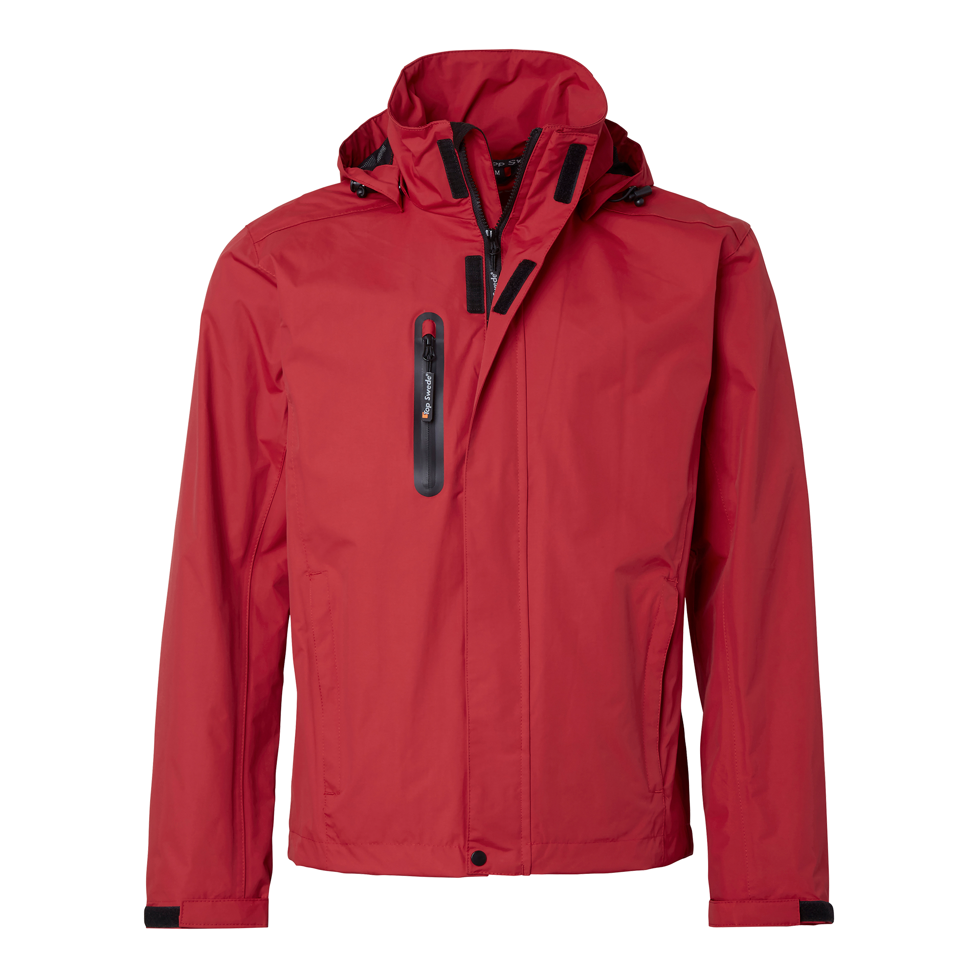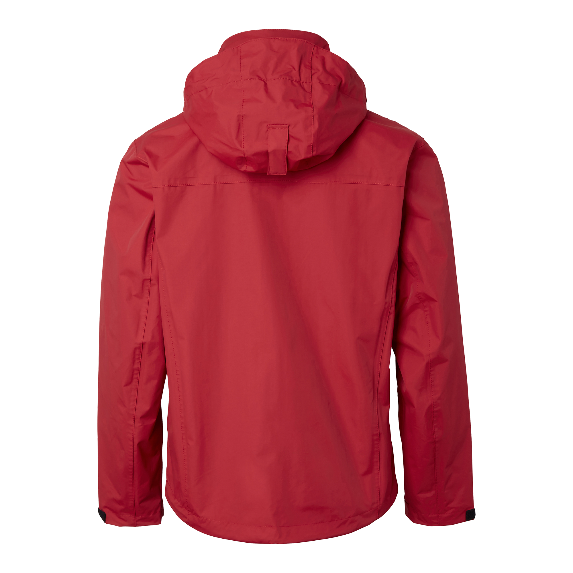 Vind- og vandtæt skaljakke med åndbarhed og tapede sømme. Udstyret med brystlomme og forlommer med lynlås, to inderlommer, justerbar snøre, justerbare manchetter og aftagelig hætte, der kan stoppes ind.