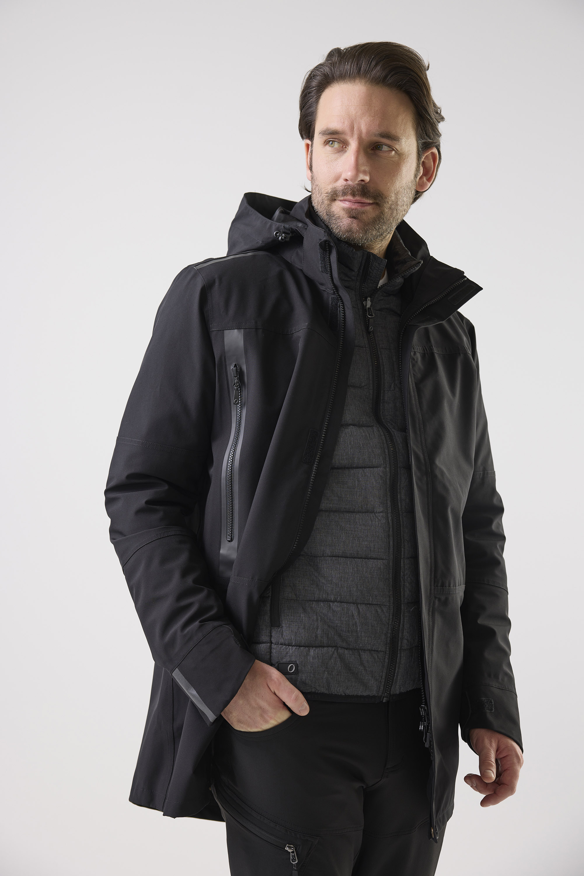 Vind- og vandafvisende parka i slidstærkt materiale med tapede sømme. To store sidelommer, aftagelig hætte og justerbare manchetter. Refleksdetaljer på skuldre, ryg og manchetter. "" Kan kombineres med andre produkter fra The Mix Concept.