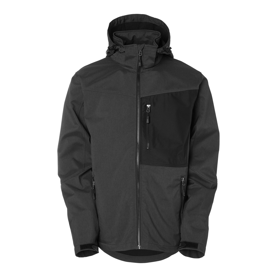 Vandafvisende og vindtæt softshelljakke med god åndbarhed. Justerbare manchetter og refleksdetaljer på hætten. Brystlomme i en anden farve og to rummelige sidelommer med lynlås.