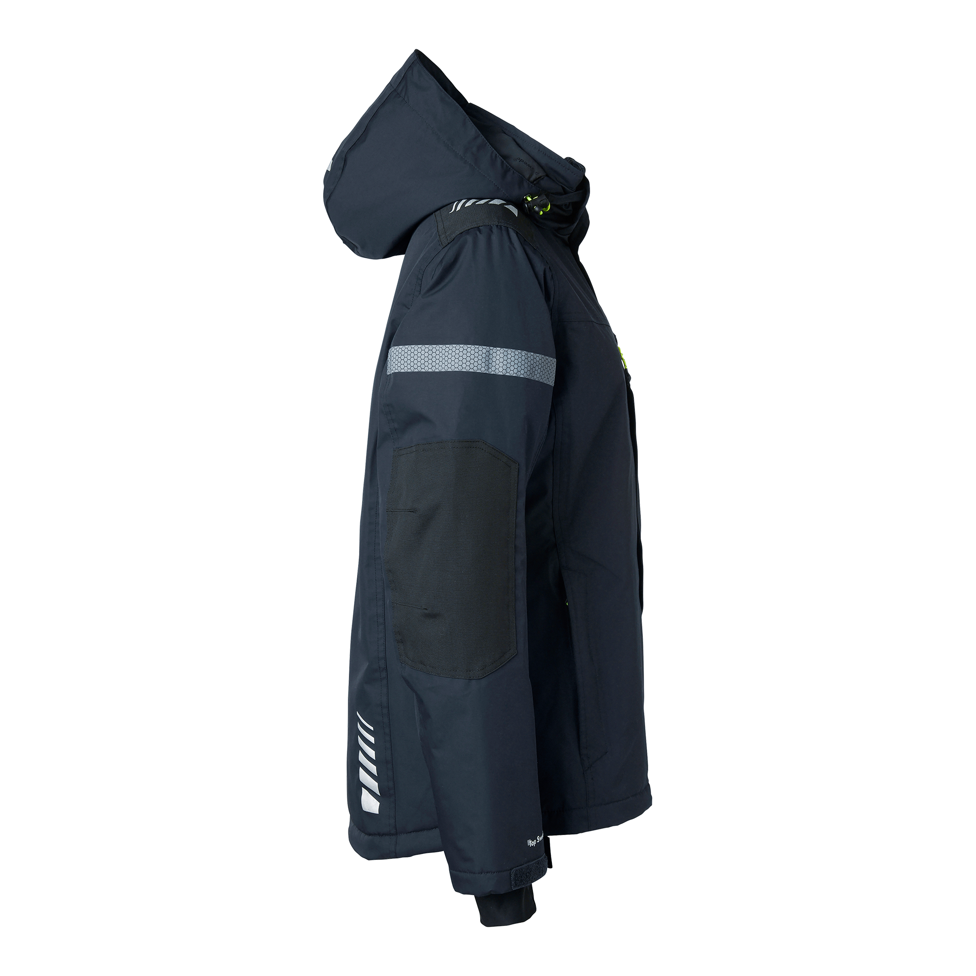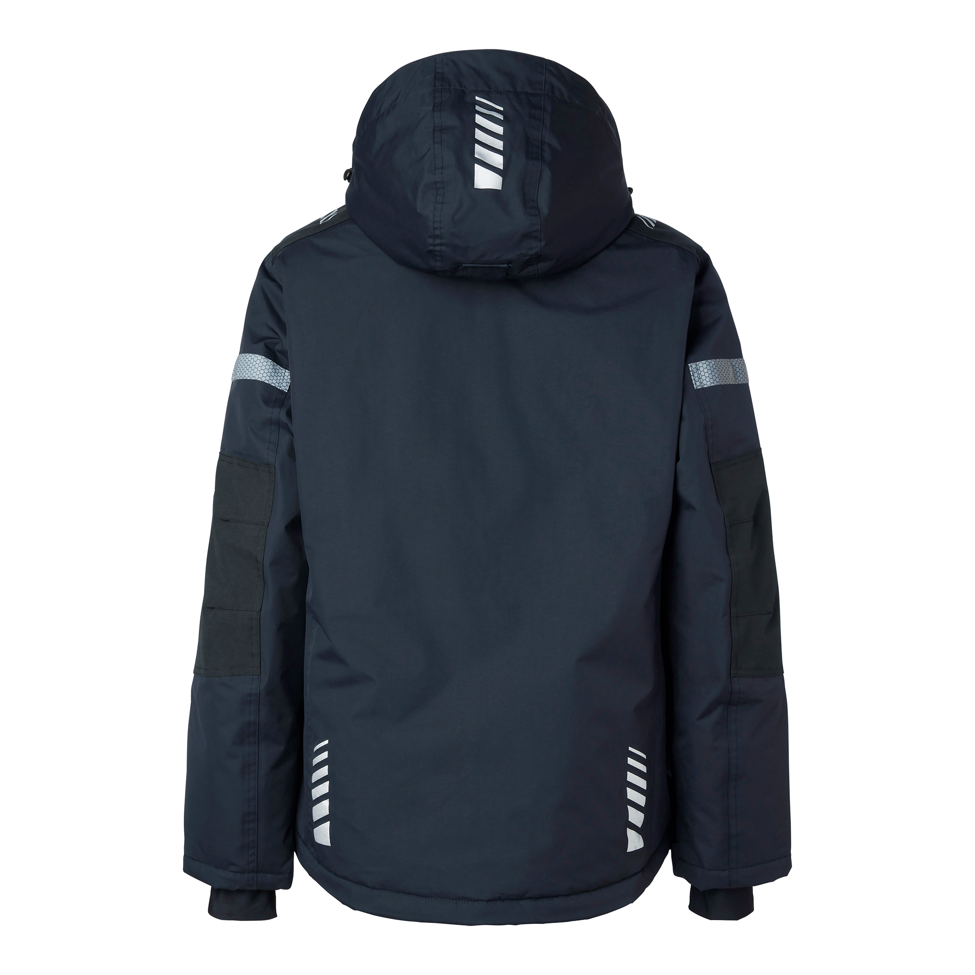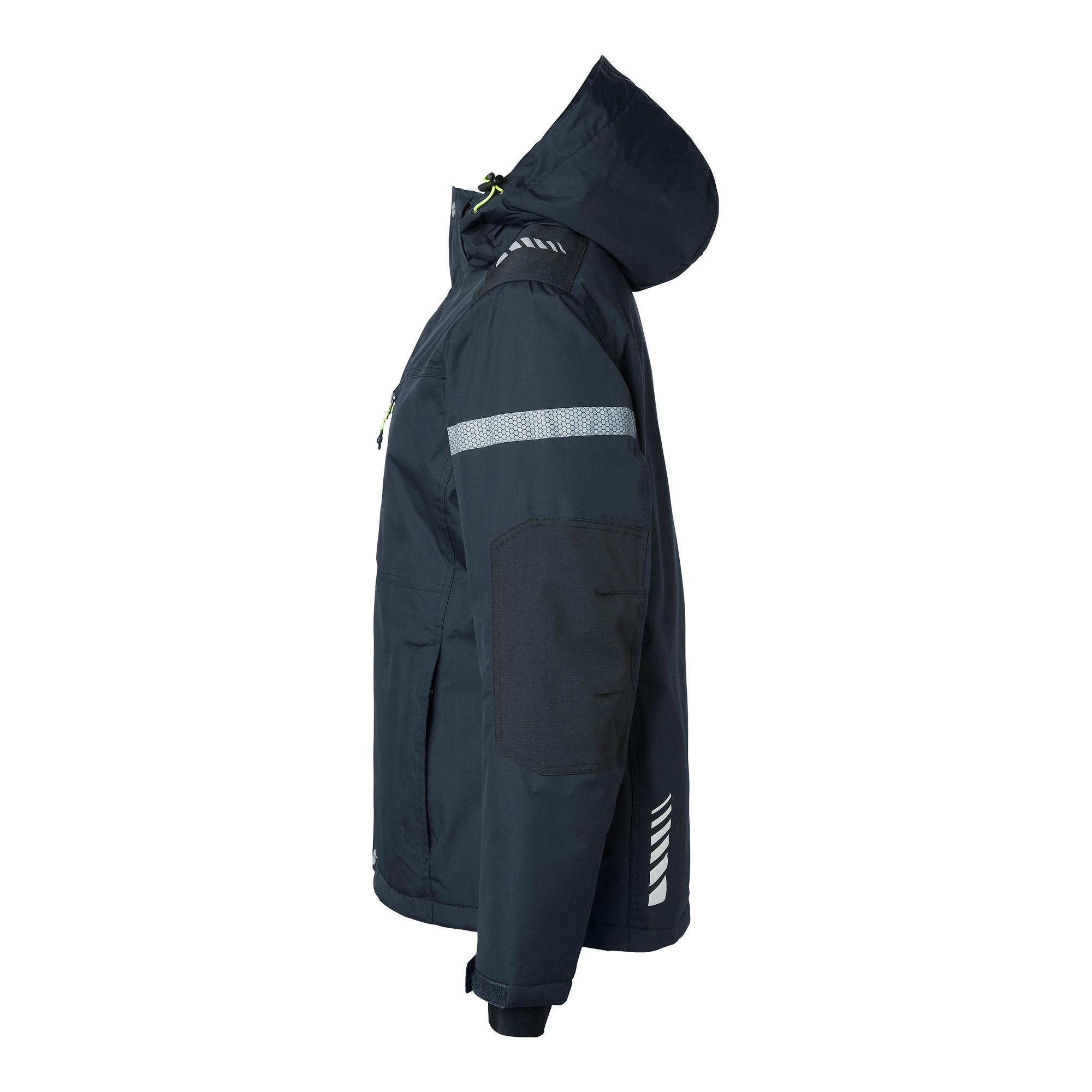 Vind- og vandtæt vinterjakke med tapede sømme, foret med quilt og materialer, der giver varme og ventilation. Brystlomme med vandtæt lynlås, inderlomme, napoleonslomme og sidelommer med lynlås. Aftagelig hætte, reflekterende detaljer, justerbare manchetter og forneden.