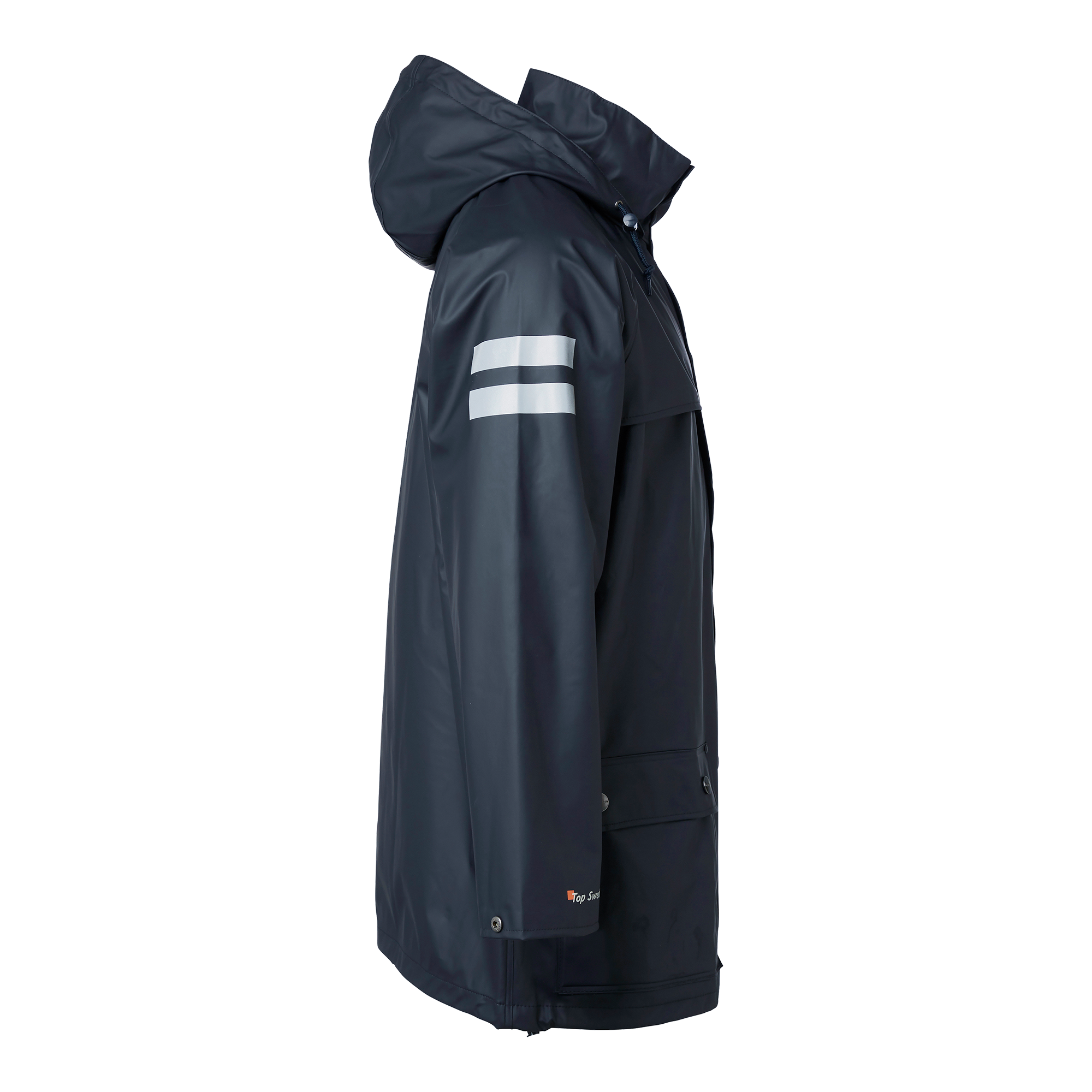 Top Swedes 196 Rain Set giver komplet beskyttelse mod regnen med både jakke og bukser i glat stretchstof. Den praktiske regnjakke er udstyret med to forlommer med klap, lynlåse med beskyttelse og en hætte med snøre til ekstra beskyttelse. De svejsede sømme sikrer, at der ikke trænger vand ind. Bukserne har en elastisk foring og justerbar snøre for optimal pasform samt en justerbar ankellukning for at holde regnen ude. Perfekt til professionelle, der har brug for pålidelig regnbeskyttelse under hårde arbejdsforhold. Oplev holdbarhed og komfort med Top Swedes 196 Rain Set.