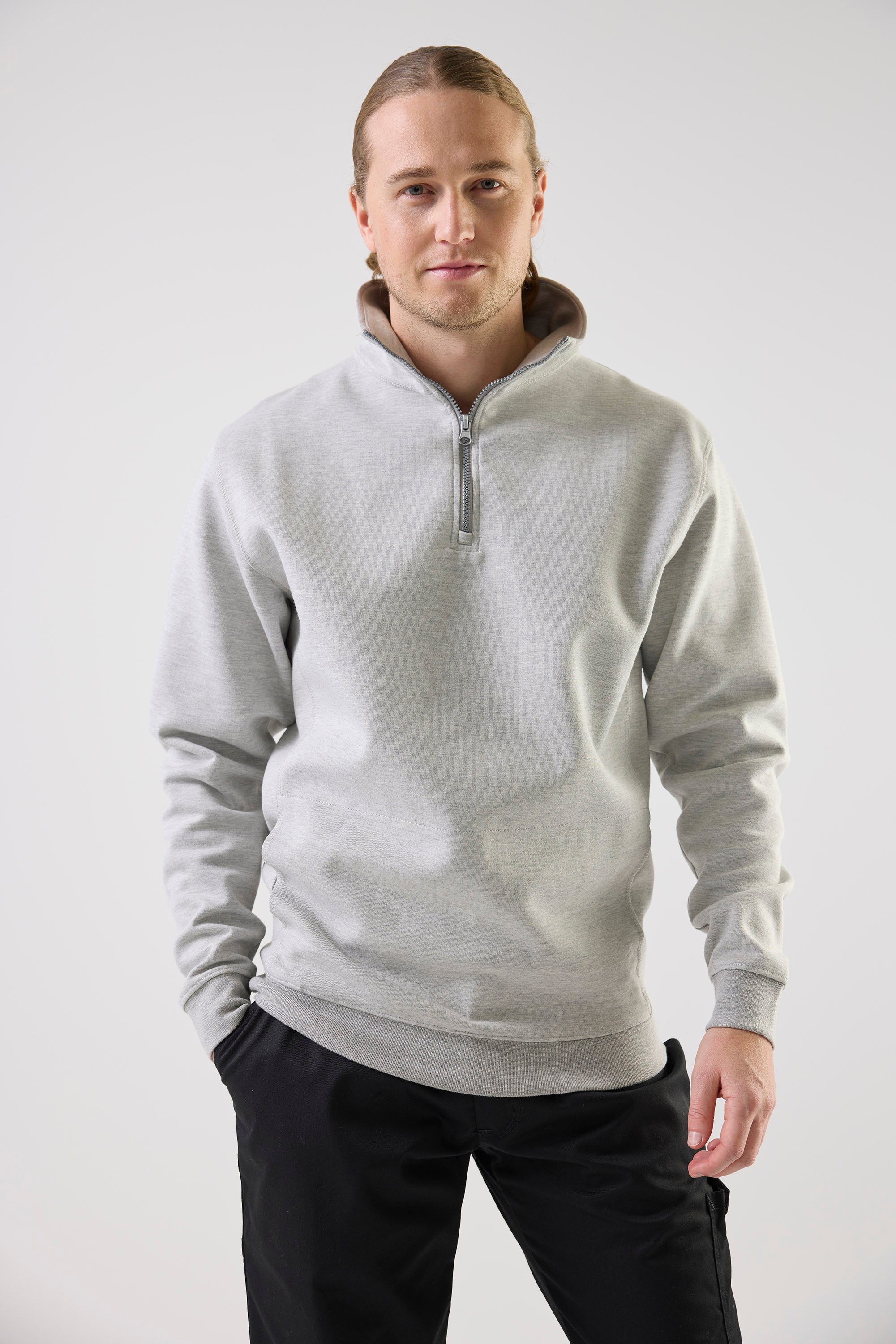 Sweatshirt med krave og kort lynlås fra Top Swede. Designet til både komfort og holdbarhed med ribbede manchetter og forneden. Perfekt til arbejde inden for byggeri og industri, hvor funktion møder stil.