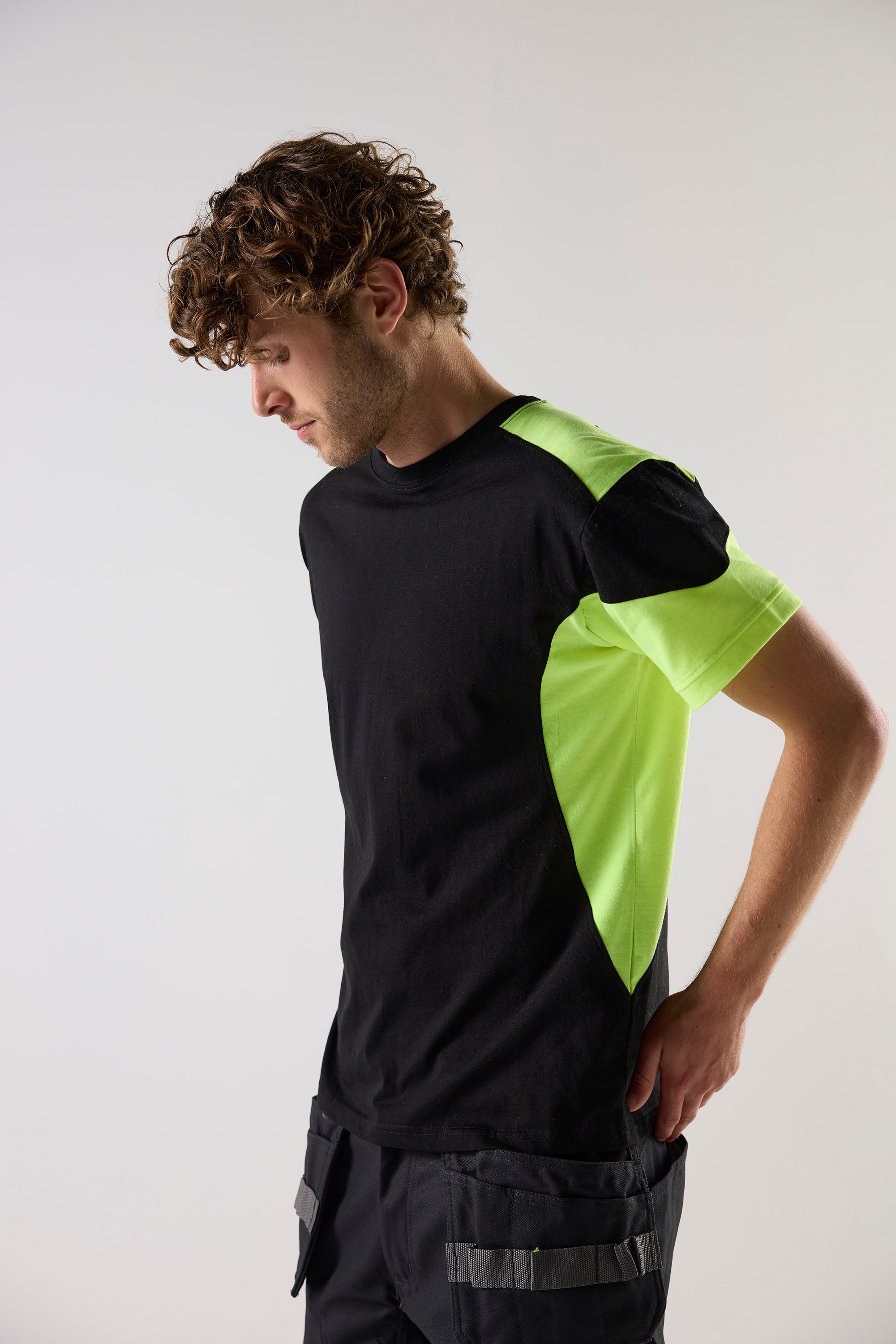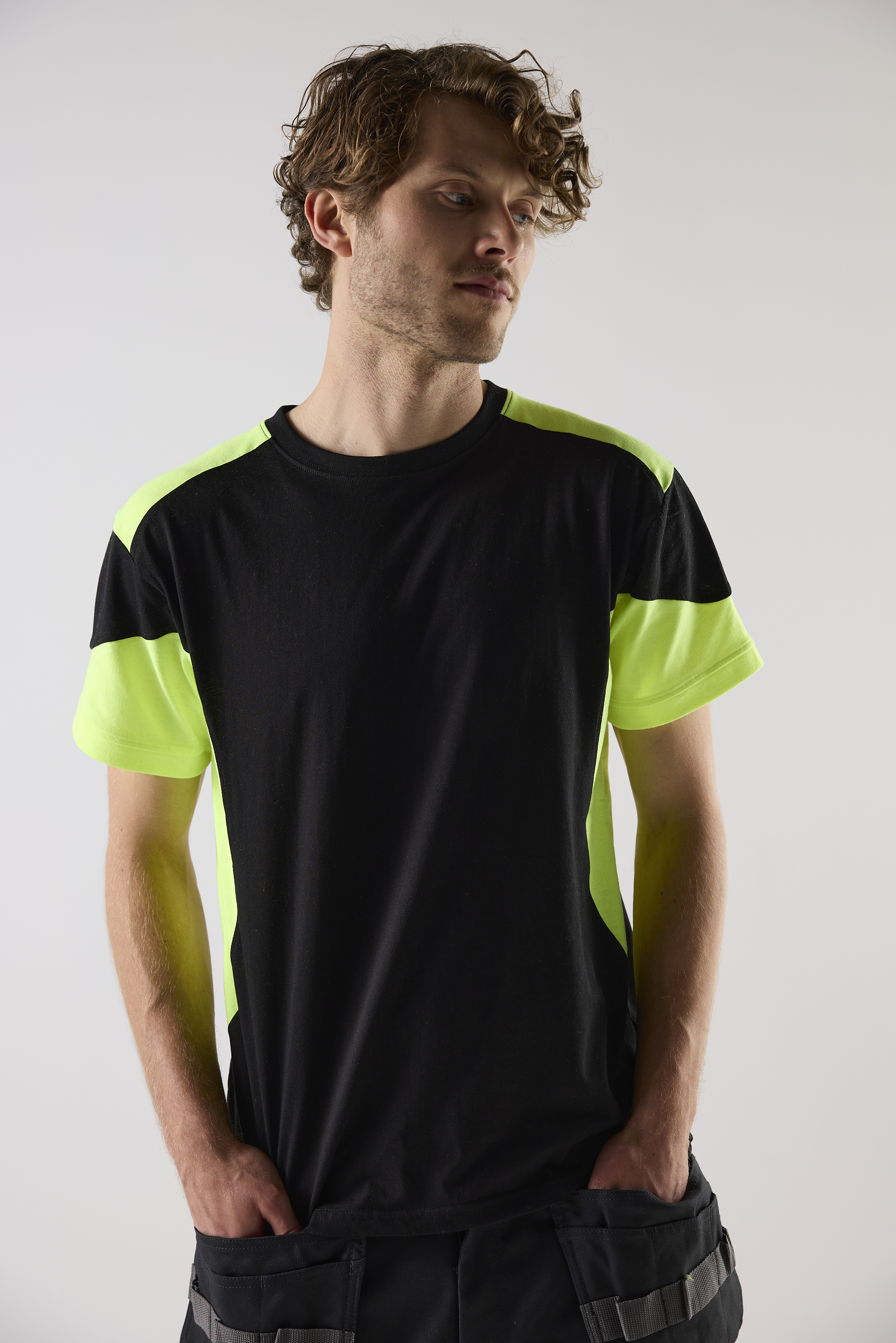 T-shirt med øget synlighed fra Top Swede. Rund hals og dobbelt nakkebånd med elastan. Fremstillet af bomuld og polyester for komfort og holdbarhed. Ideel til arbejde inden for byggeri og industri.