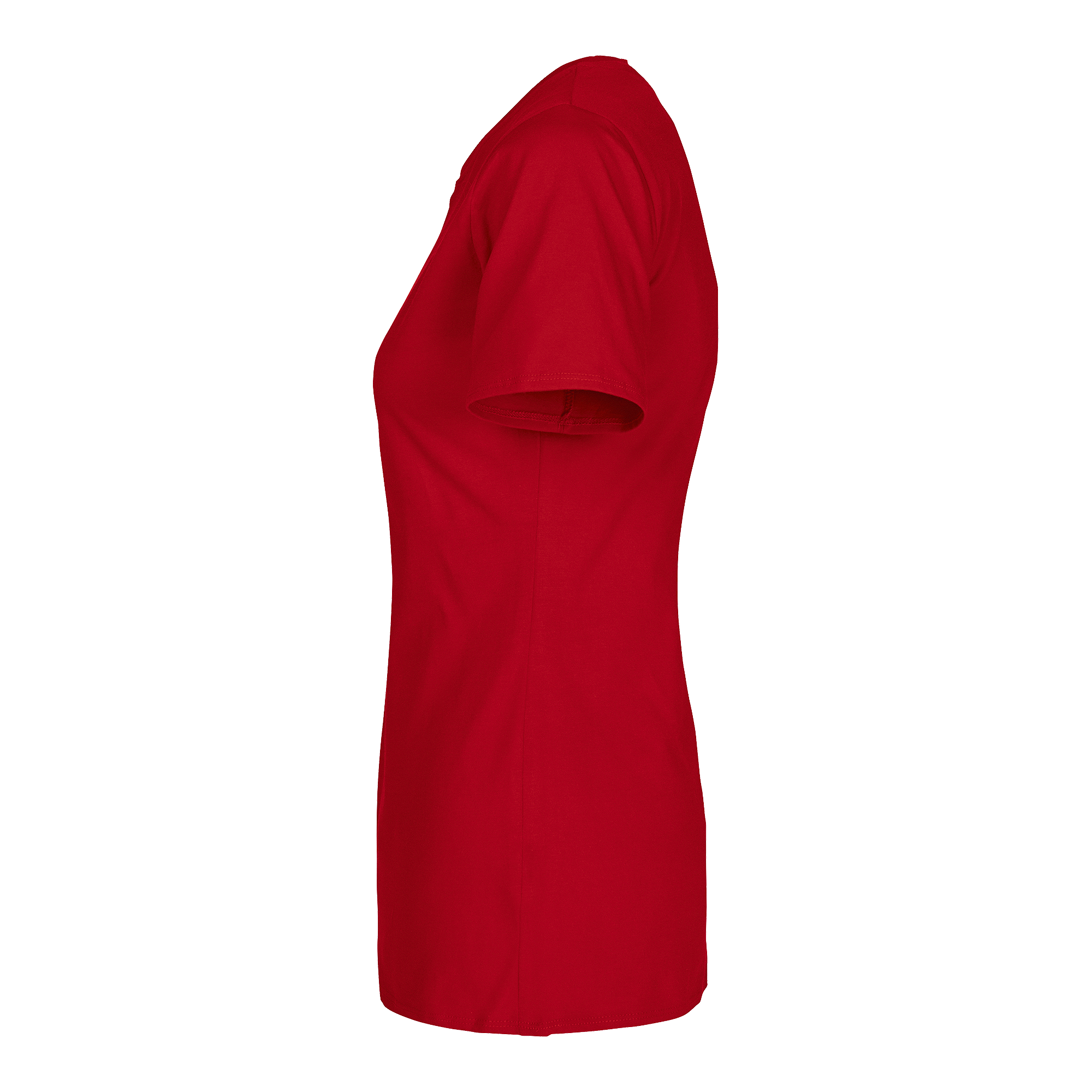 Kortærmet t-shirt til kvinder med slank pasform og rund hals. Længde midt bag 66 cm i størrelse M.