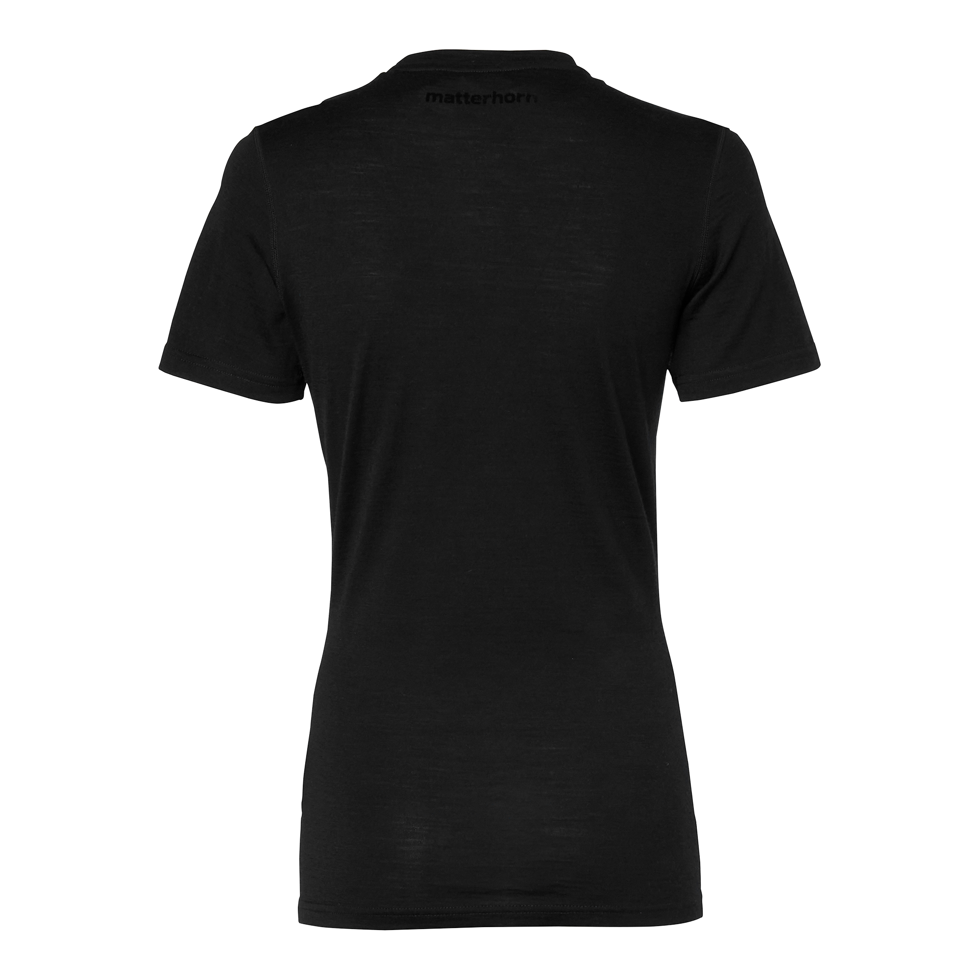 Mallory T-shirt W er en let og funktionel kortærmet T-shirt til kvinder i blød merinould, designet til at give naturlig komfort på aktive dage i forår og efterår. Med en vægt på 160 gram tilbyder merinoulden en god balance mellem varme og åndbarhed, hvilket gør den ideel som et tyndt lag til vandreture, udendørsaktiviteter eller hverdagsbrug. Materialet er temperaturregulerende, fugttransporterende og naturligt antibakterielt – egenskaber, der holder dig tør og frisk, selv under høj aktivitet. Den feminine og tætsiddende pasform sidder behageligt uden at begrænse, og T-shirten fås i sort med et diskret flockprintet Matterhorn-logo på brystet. Kombinér med Hojac Basislagsbukser W for et komplet lag-på-lag-sæt.