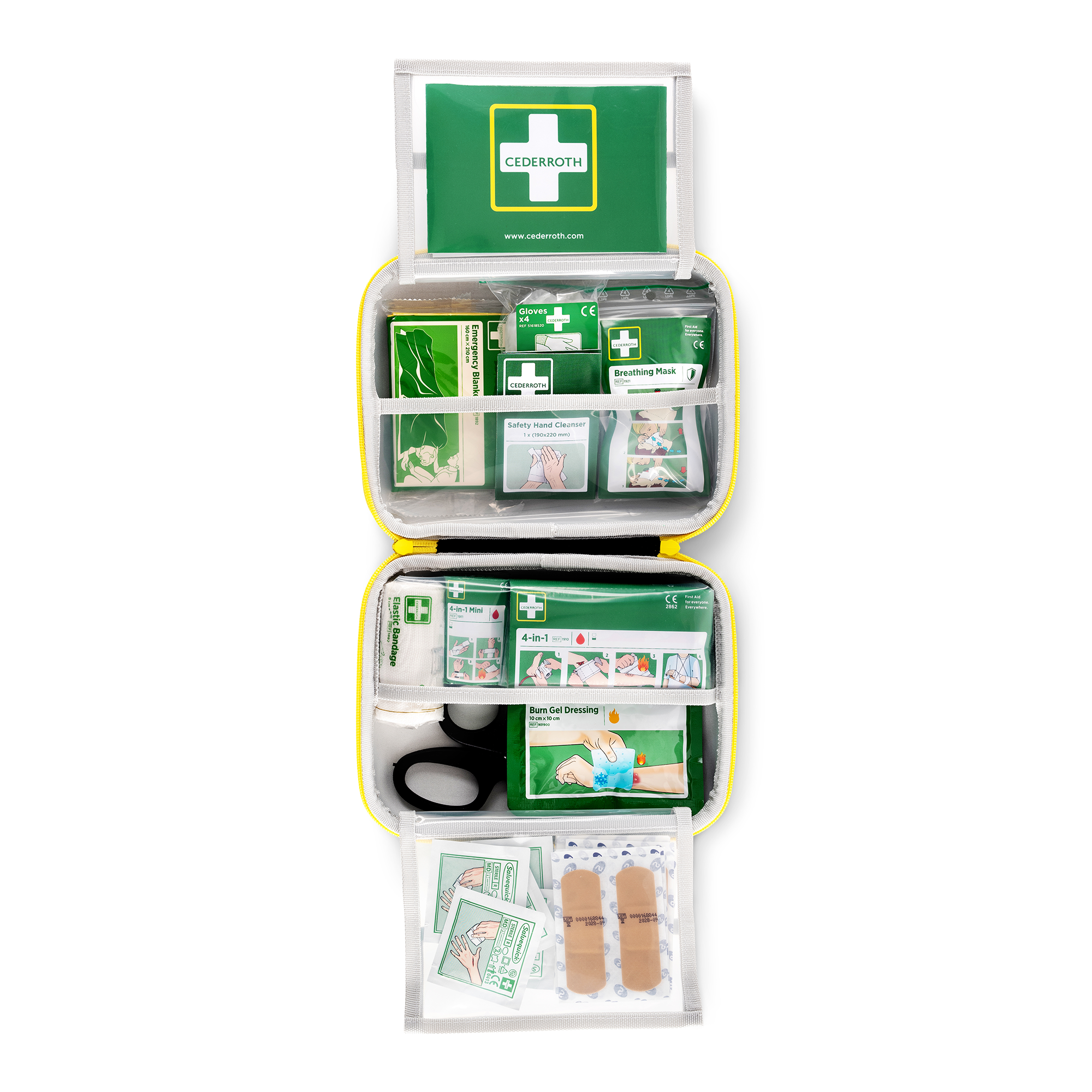 Das Cederroth First Aid Kit Medium ist eine großartige Ergänzung zu Stationen an der Wand. Ideal für unterwegs. Der Koffer ist leicht zu transportieren und hat einen verstellbaren Klettgriff. Cederroths Erste-Hilfe-Koffer sind in Signalfarben gestaltet und benutzerfreundlich. Sie sind mit bewährten Produkten ausgestattet, die einfach gestaltet und mit klaren Anweisungen versehen sind. Inhalt: 1 Cederroth 4-in-1 Blutstiller (REF 1910). 1 Cederroth 4-in-1 Mini-Blutstiller (REF 1911). 1 Cederroth Burn Gel Dressing (REF 901900). 10 Salvequick Pflaster (REF 510005534). 4 Salvequick Big Plasters (REF 510005534). 1 Elastische Binde 8cm x 4m (REF 1882). 6 Salvequick Wundreiniger (REF 510005534). 1 Beatmungsmaske (REF 2596). 2 Paar Handschuhe (REF 2596). 2 Safety Hand Cleanser (REF 2596). 1 Rettungsdecke mit wärmereflektierender Aluminiumseite (REF1892). 1 Schere (REF 270002). 1 Erste-Hilfe-Anleitung. 1 Inhaltsverzeichnis. Abmessungen: B 231 x H 190 x T 78 mm.