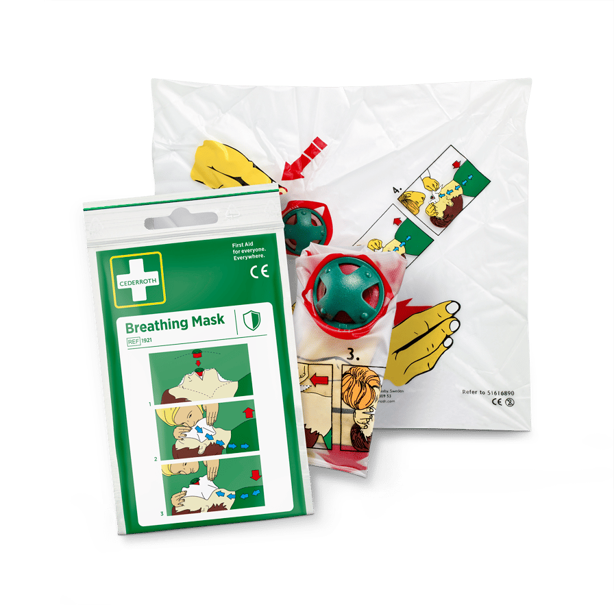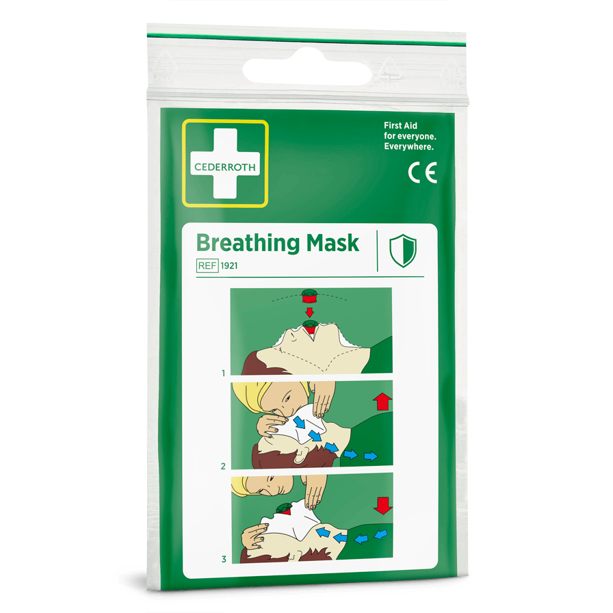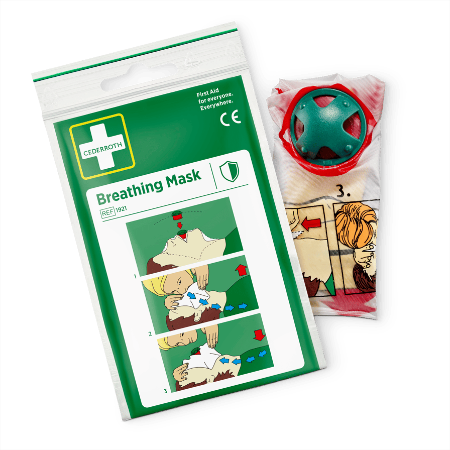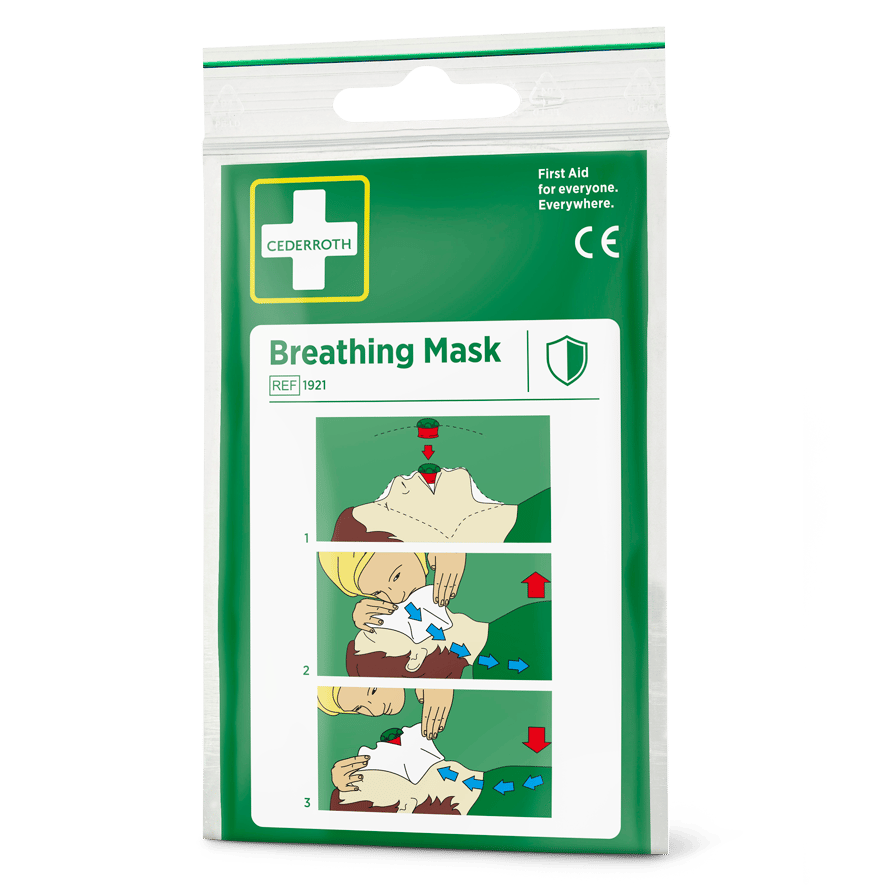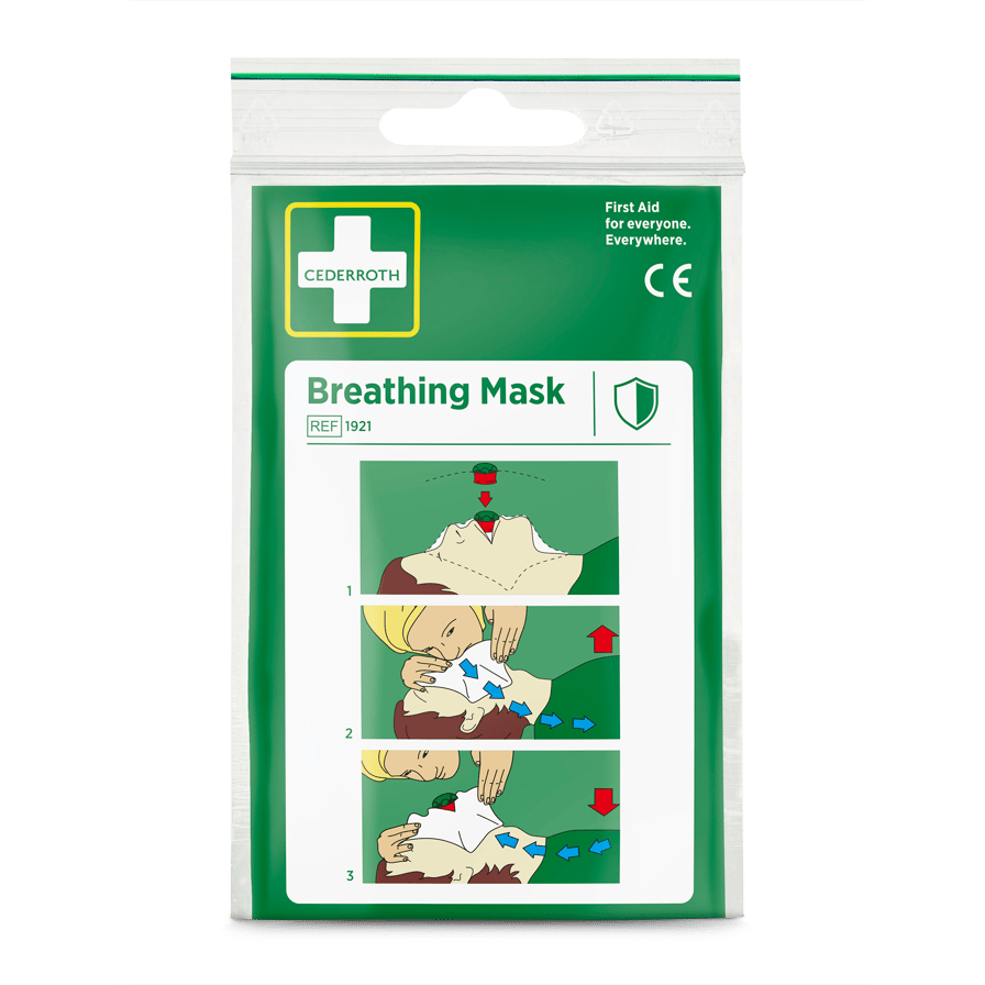 Die Cederroth Beatmungsmaske ist ein Hilfsmittel für die korrekte Mund-zu-Mund-Beatmung. Gleichzeitig verringert sie das Risiko bei Kontakt von Helfer und Verletztem. Die Beatmungsmaske besteht aus einer Kunststofffolie mit einem Rückschlagventil. Klare Anweisungen sind direkt auf das Tuch gedruckt.
