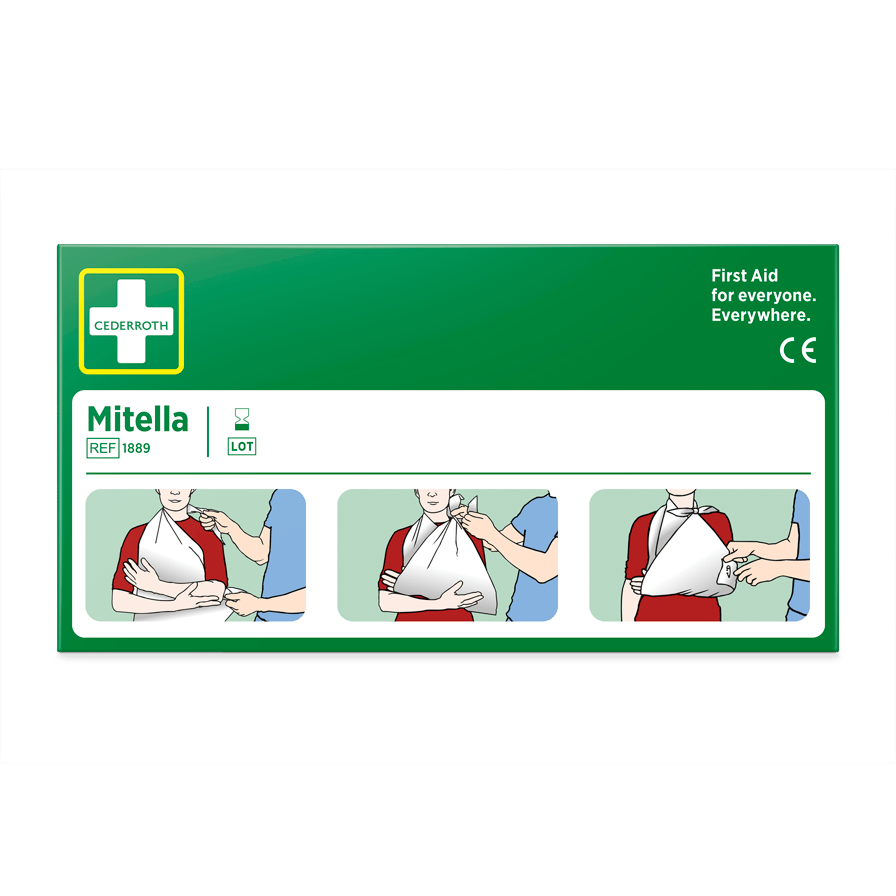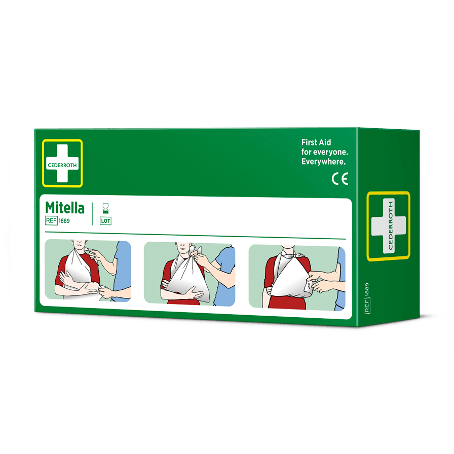 Das Cederroth Dreiecktuch wird zur Unterstützung eines verletzten Arms umgebunden. Bei Kopfverletzungen kann es auch zum Fixieren einer Kompresse verwendet werden.