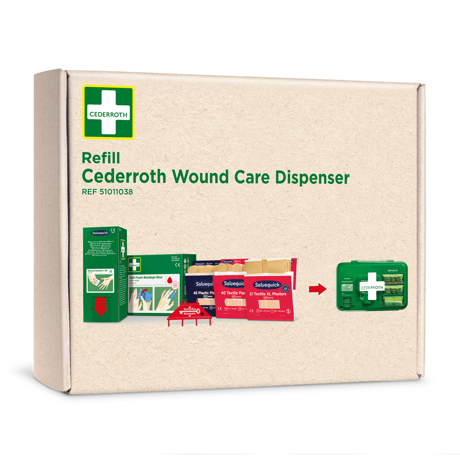 Komplette Nachfüllpackung für den Cederroth Wound Care Dispenser REF 51011006