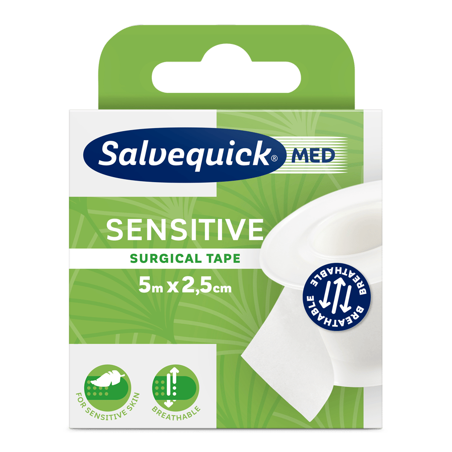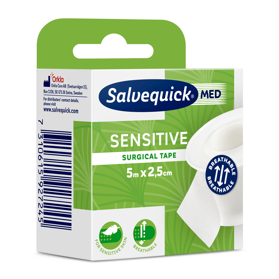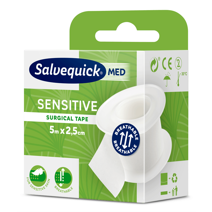 Sensitive Tape ist ein hautfreundliches, atmungsaktives chirurgisches Klebeband. Geeignet zum Fixieren von Wundauflagen/Verbänden. Kann auch zur direkten Versorgung kleiner Wunden verwendet werden. Geeignet für empfindliche Haut.