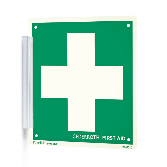 Selbstklebender Schilderhalter für die Fahnen- oder Deckenmontage.