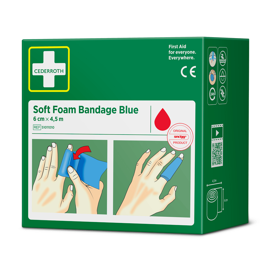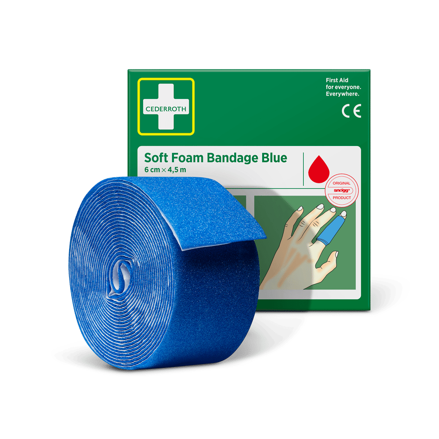 Cederroth Soft Foam Bandage Blue 6 cm x 4,5 m eignet sich als Pflaster und als Verband. Der Schnellverband, der auch bei Kälte, Hitze und Trockenheit sicher sitzt, eignet sich für alle Arten von kleineren Wunden. Cederroth Soft Foam Bandage ist ein selbsthaftendes Pflaster. Es ist klebstofffrei und klebt auf diese Weise nicht an Haut oder Haaren. Einfach passgenau abreißen und die verletzte Stelle verbinden. Bei starken Blutungen einen Druckverband anlegen. Hierzu ein Stück Soft Foam Bandage zu einem"polster" formen. Cederroth Soft Foam Bandage ist ideal für die schnelle und einfache Wundversorgung. Aufgrund der blauen Farbe ideal für den Lebensmittelbereich. Geeignet als Nachfüllpackung für die Wound Care Dispenser (REF 51011009 & 51011006) und den Cederroth Soft Foam Spender 2-in-1 (REF 510004108).