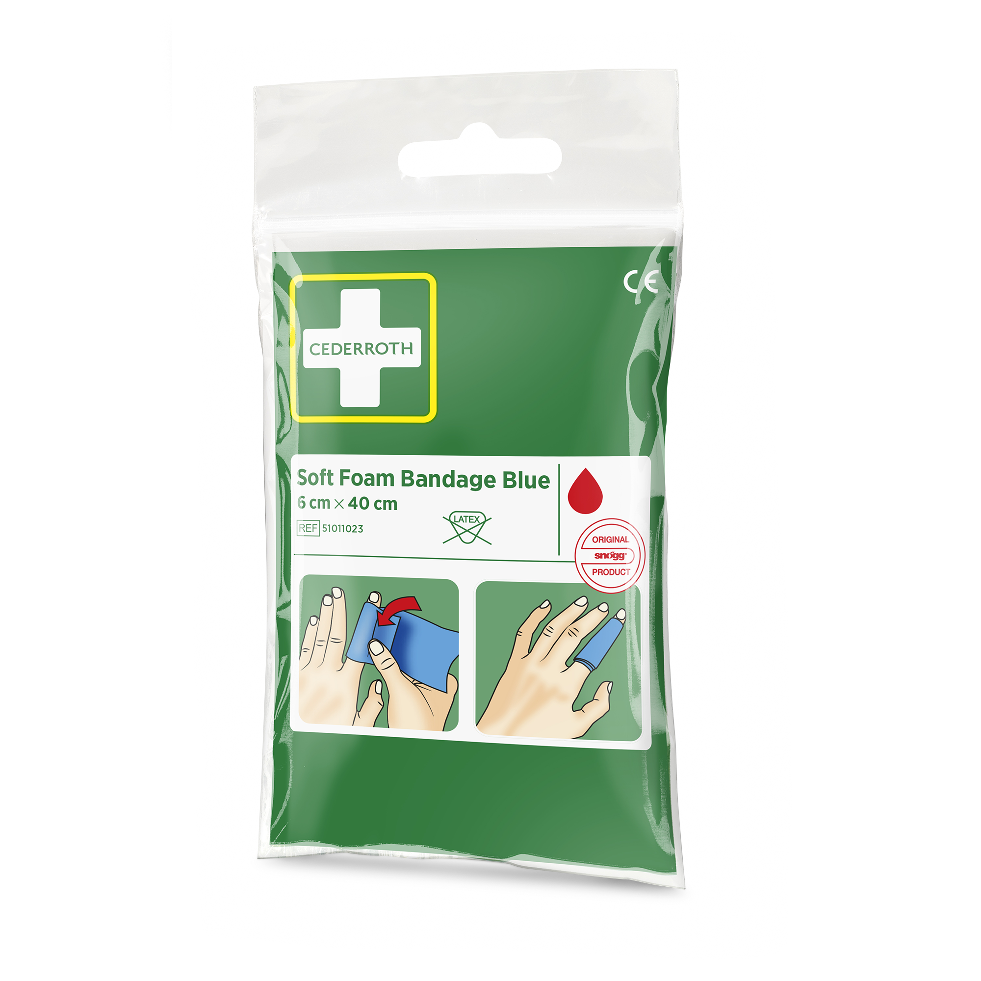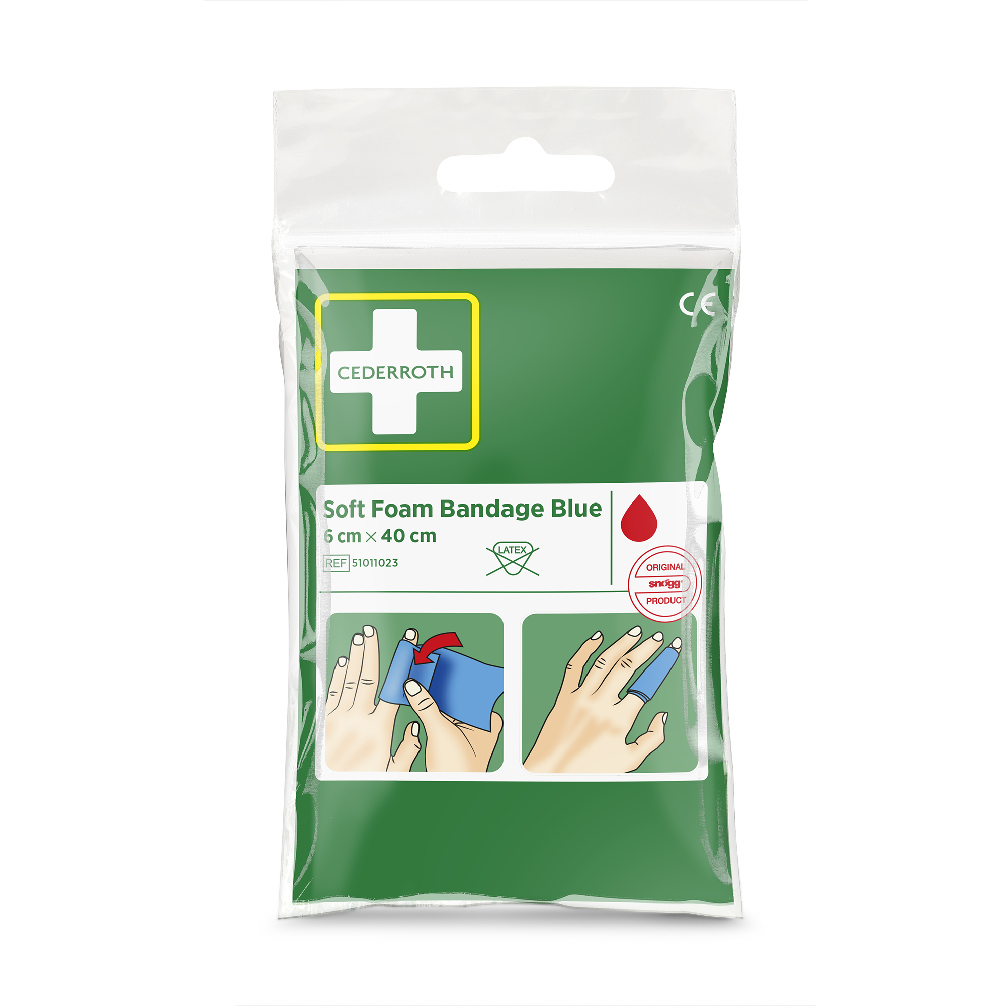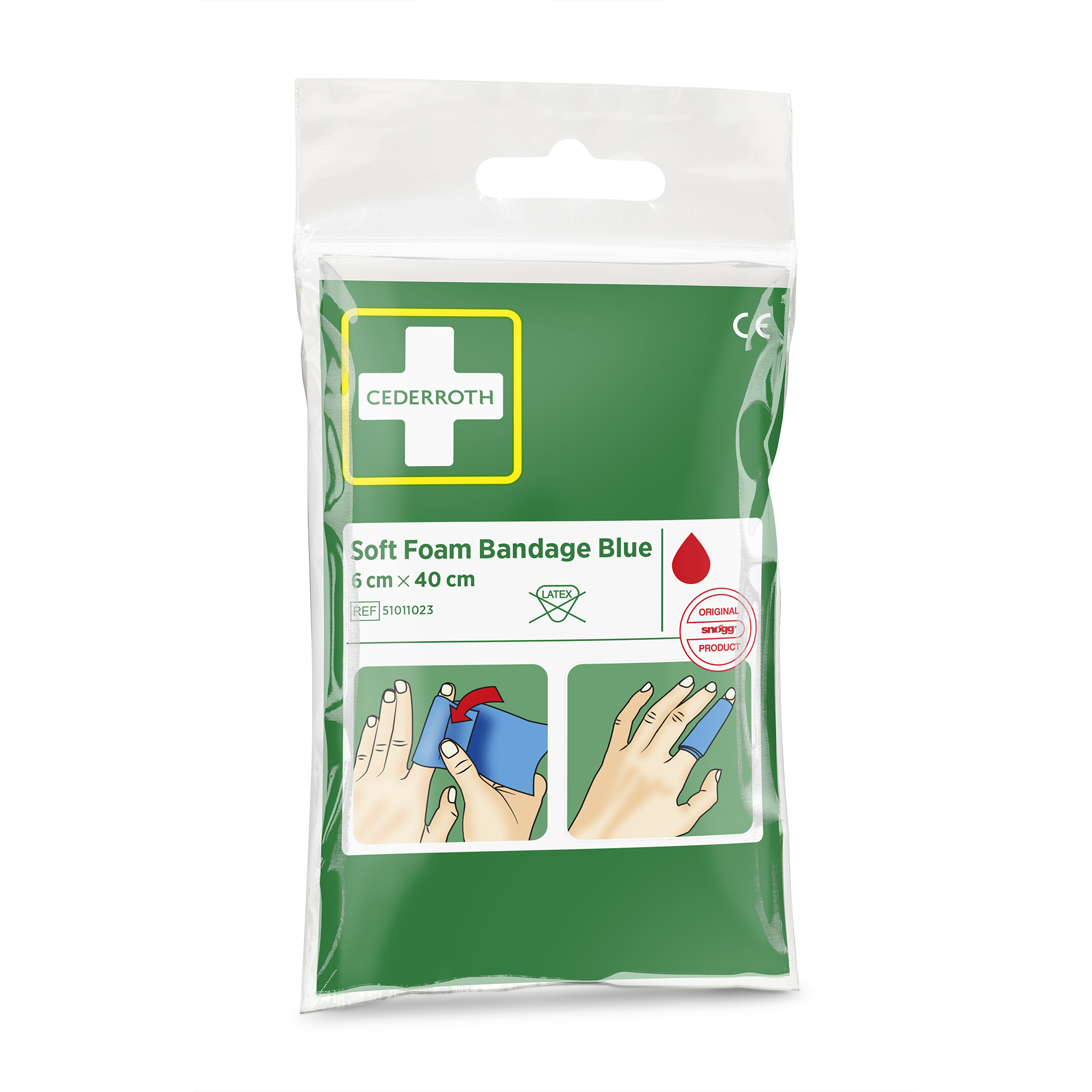 Cederroth Soft Foam Bandage Blau Taschenformat. Praktischer Beutel im Taschenformat mit 40 cm Soft Foam Bandage. Leicht und klein für unterwegs. 40 cm x 6 cm.