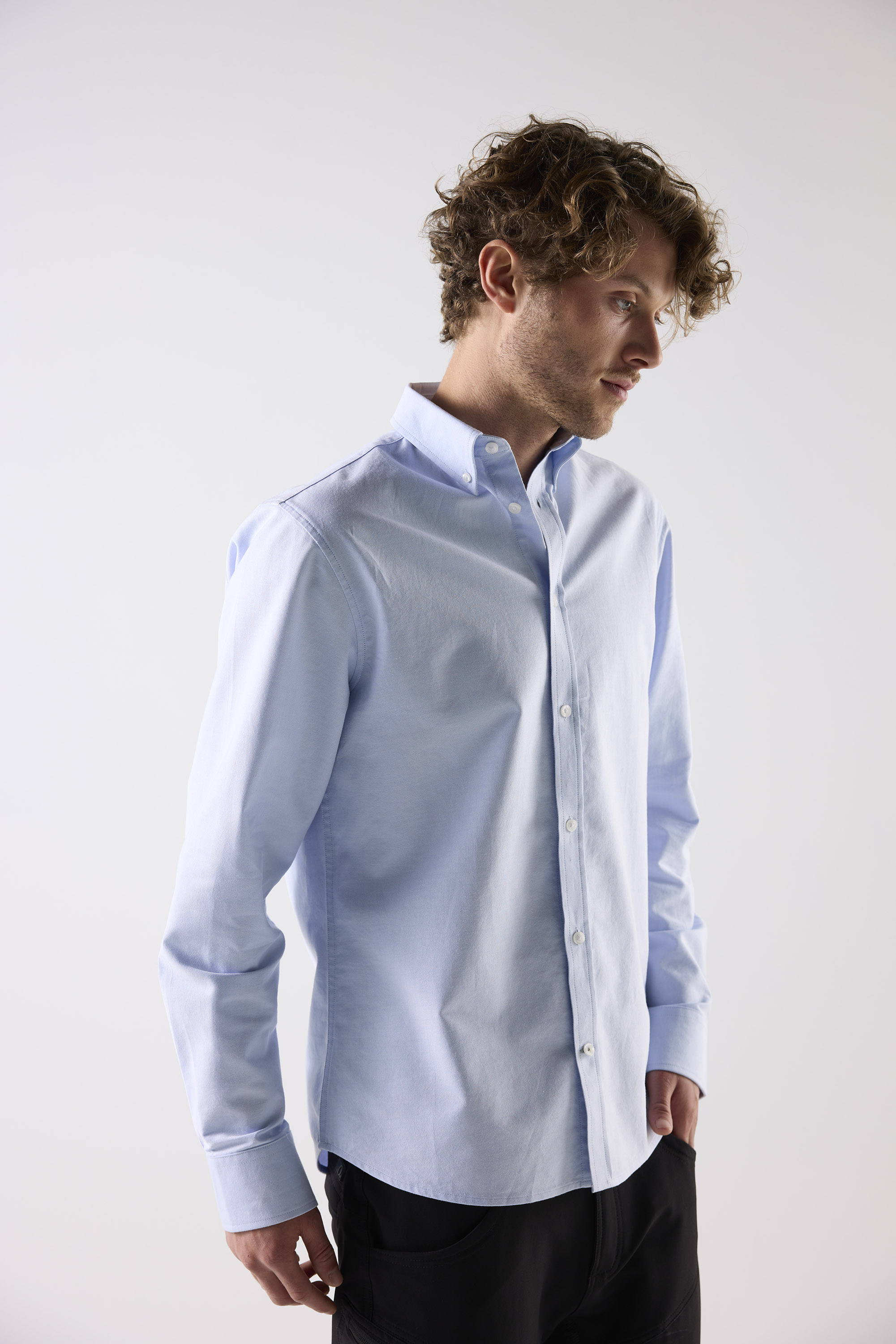 Alston ist ein langärmliges, schmal geschnittenes Herrenhemd aus 100 % GOTS-zertifizierter Baumwolle. Das Modell verfügt über einen Button-Down-Kragen, eine Knopfleiste vorne und einen leicht geschwungenen Saum, der hinten länger ist. Perfekt für Alltag, Arbeit oder festlichere Anlässe.