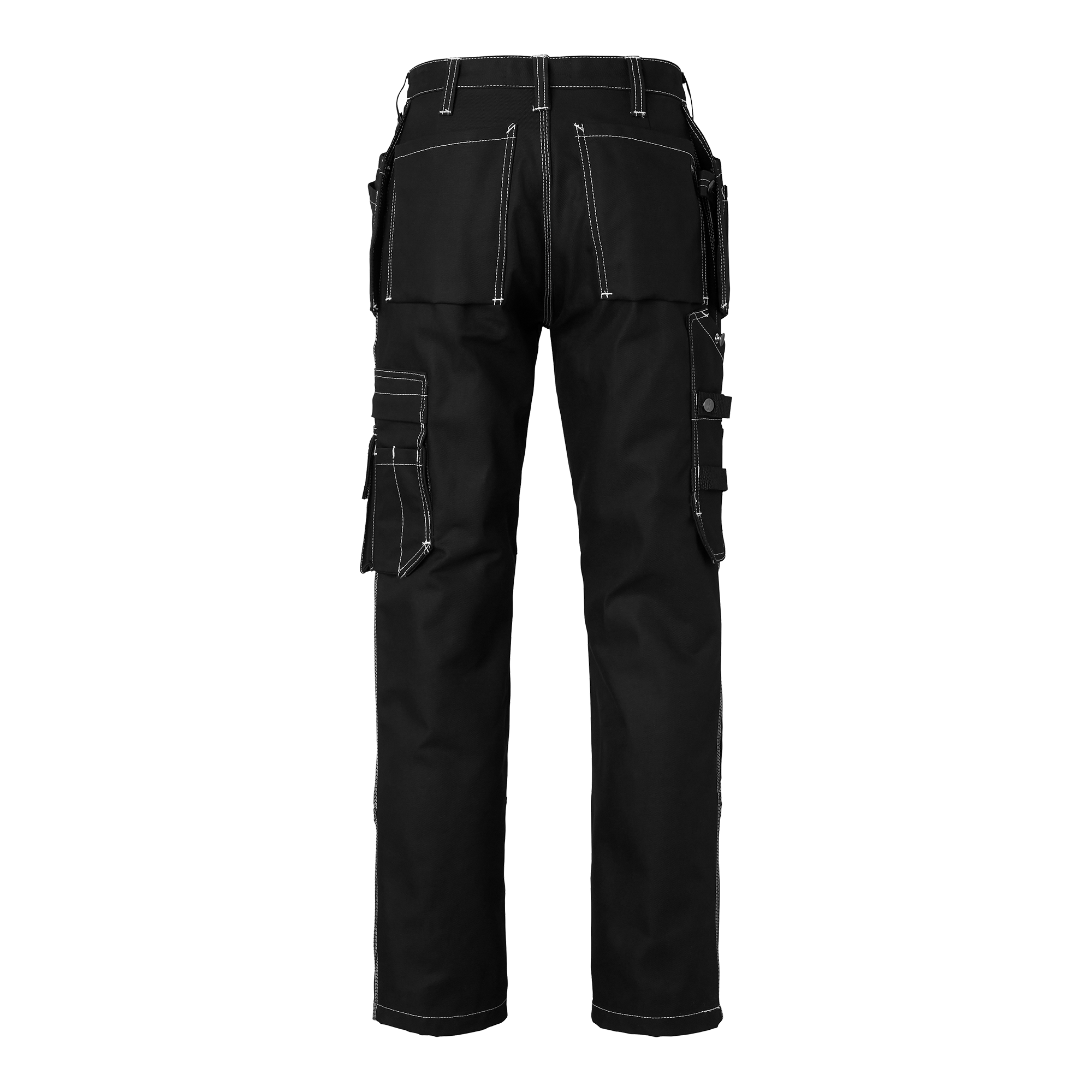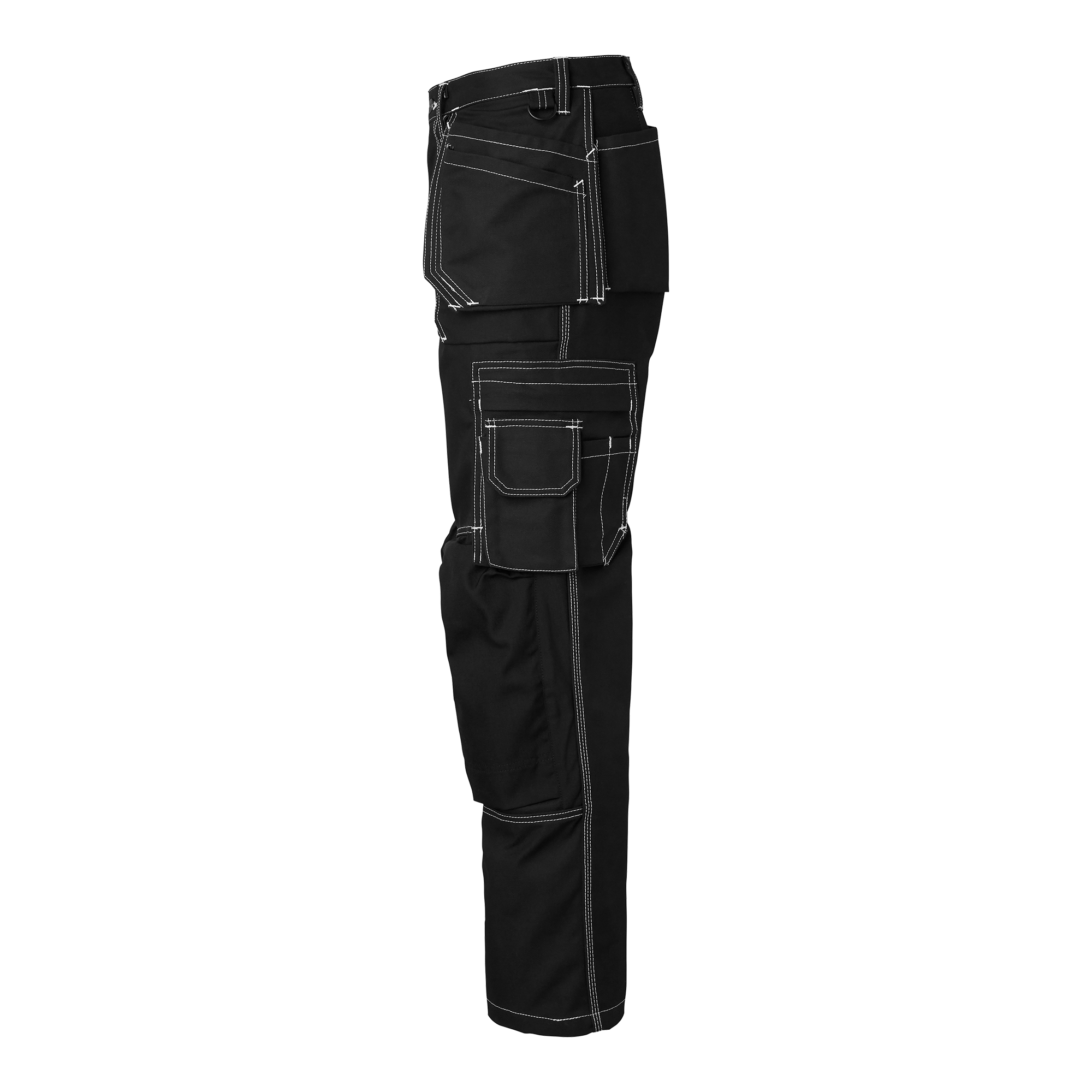 Handwerkerhose mit vorgeformten Beinen und Knietaschen aus CORDURA®. Zwei Vordertaschen, zwei Gesäßtaschen mit Blasebalg und lose hängende Nageltaschen mit CORDURA®-Verstärkung. Mehrere praktische Zusatzfächer, darunter eine Zollstocktasche und eine Handytasche.