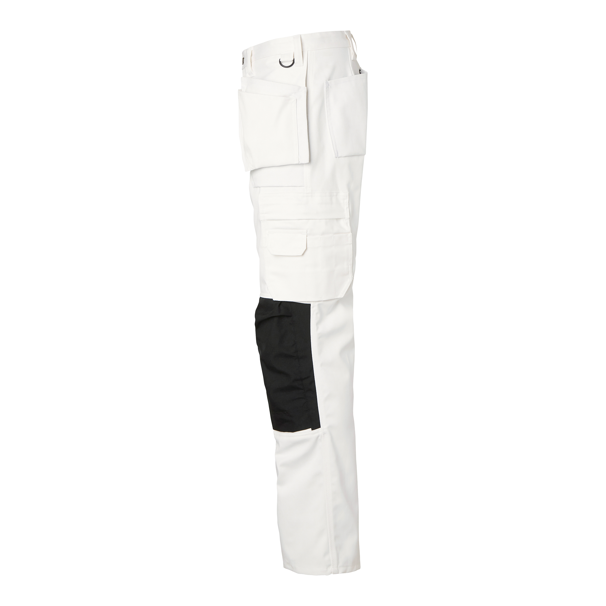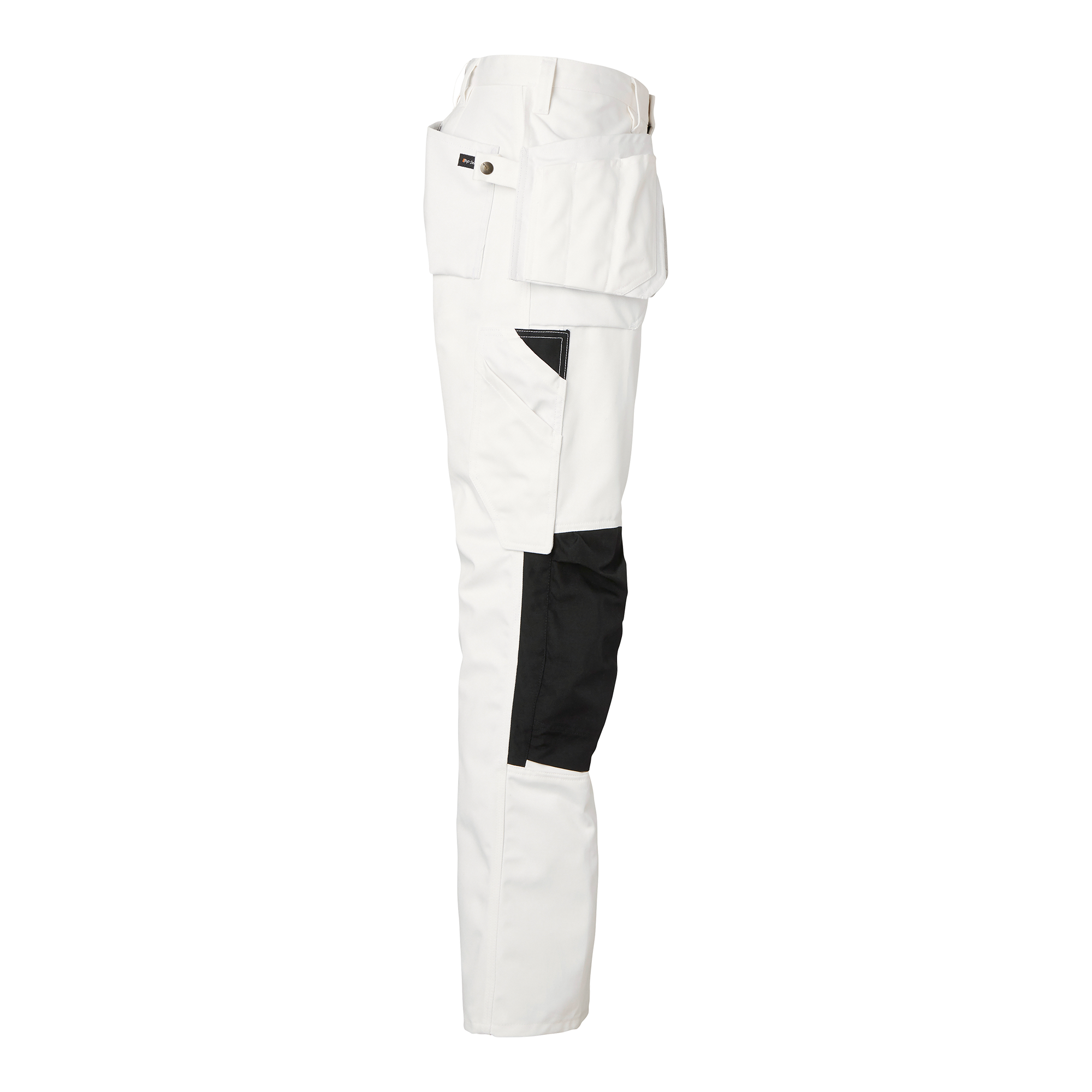 Entdecke die Top Swede 2515 Malerhose, die perfekte Malerhose für Maler- und Bau-Profis. Die Hose verfügt über vorgeformte Beine und Knietaschen aus robustem CORDURA® und bietet Platz für Knieschoner in zwei Ebenen für zusätzlichen Komfort und Schutz. Mit zwei Vordertaschen, zwei Gesäßtaschen mit Faltenbalg und locker hängenden Nageltaschen, alle mit CORDURA® verstärkt für extra Strapazierfähigkeit. Die linke Hängetasche hat ein zusätzliches Fach, während die rechte drei kleinere Zusatzfächer und ein verstecktes, herunterklappbares Ausweisfach besitzt. Die erweiterte Kellentasche ist für besseren Komfort und einfachen Zugriff konzipiert. Zusätzlich besitzt die Hose eine Beintasche mit verstecktem Reißverschluss, eine Stifttasche, eine Handytasche,, sowie einen verstellbaren Hammerhaken und einen D-Ring. Diese Merkmale machen die Hose ideal für anspruchsvolle Arbeitsumgebungen, in denen Funktionalität und Strapazierfähigkeit entscheidend sind. Entscheide dich für die 2515 Malerhose und profitiere von einer Kombination aus hoher Qualität,, Funktionalität und Komfort, die den höchsten Anforderungen an Arbeitskleidung gerecht wird.