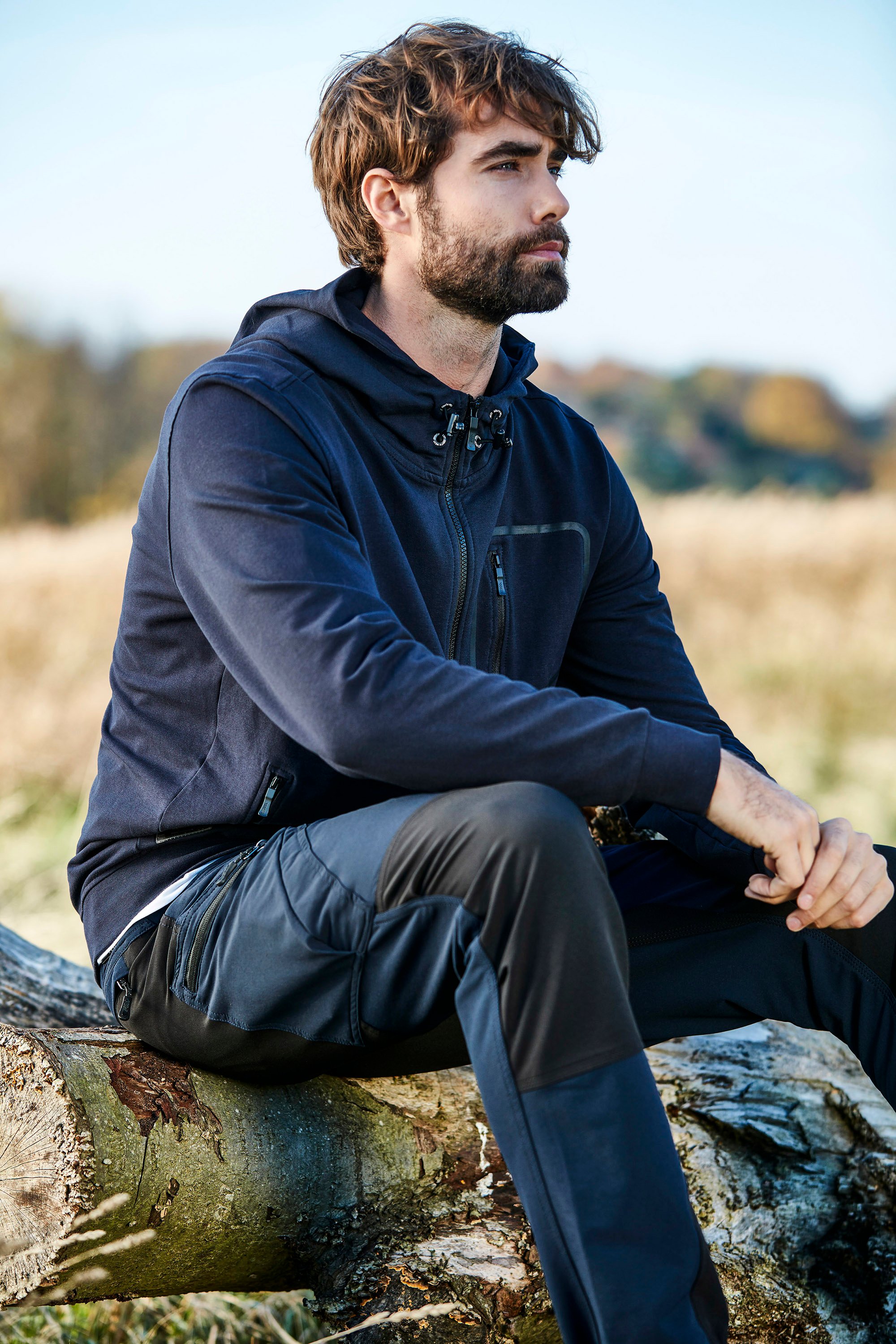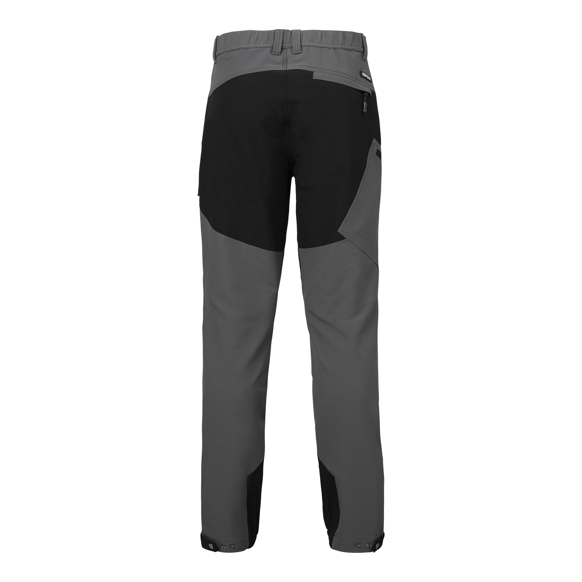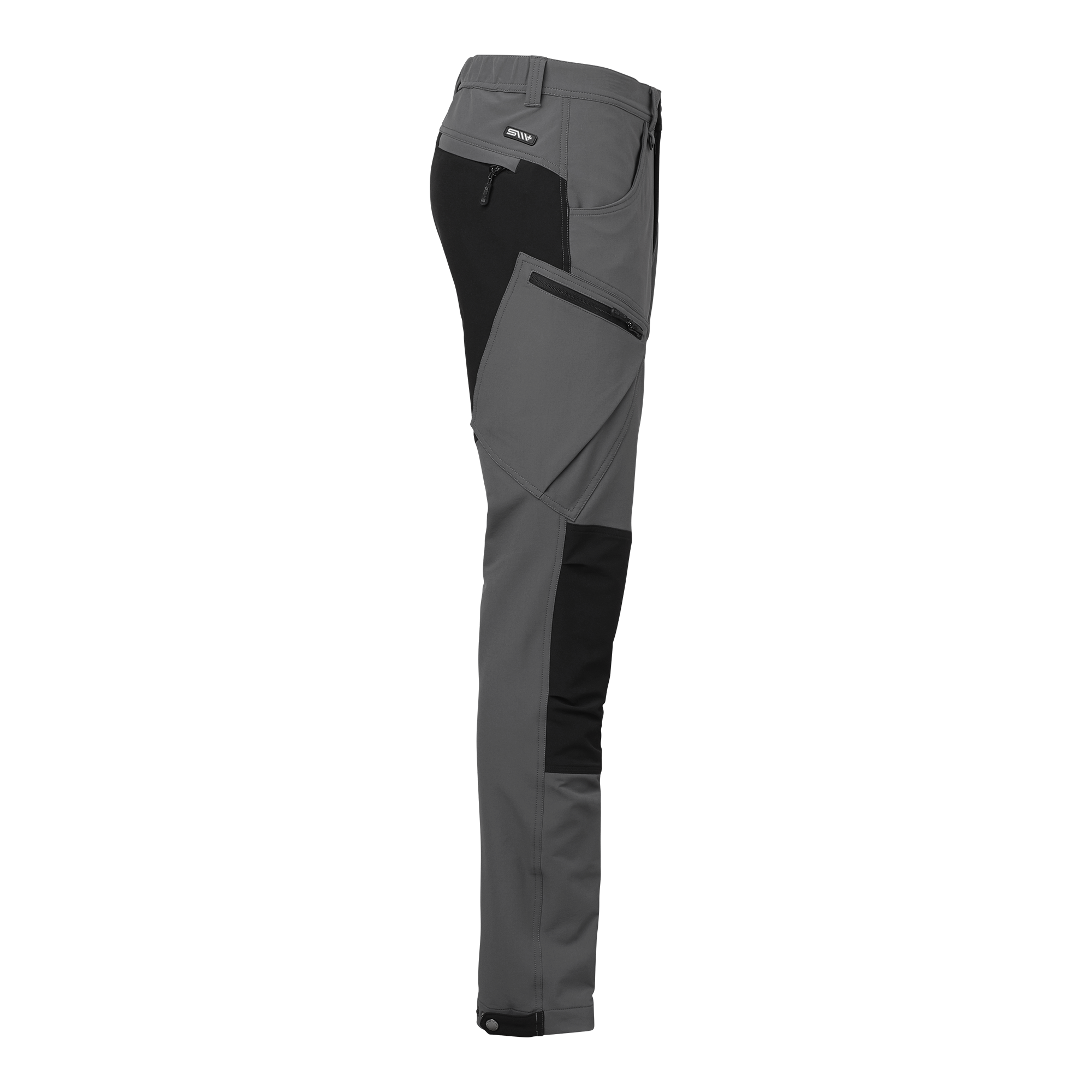 Praktische 5-Pocket-Hybridhose aus elastischem Material für optimale Bewegungsfreiheit und hohen Komfort. Bein- und Gesäßtaschen mit Reißverschlüssen und reflektierenden Details. Knöpfe am Beinabschluss zur Verstellung der Fußweite.