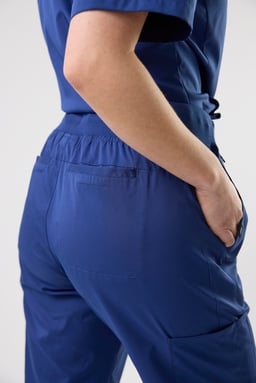 Die Lowe Trousers sind moderne und funktionale Unisex-Hosen, speziell entwickelt für die Anforderungen in Pflege- und Gesundheitsberufen, in denen Bewegungsfreiheit, Komfort und praktische Details entscheidend sind. Der breite Bund mit verstellbarem Kordelzug sorgt für eine flexible, bequeme Passform – unabhängig von Körperform oder Arbeitshaltung. Das gerade, schlichte Design ist durchdacht und wirkt professionell, während es gleichzeitig hohen Tragekomfort bietet – selbst bei langen Schichten. Geräumige Front- und Gesäßtaschen werden durch Beintaschen auf beiden Seiten ergänzt, die mit dezenten Paneldetails sowohl Stil als auch Funktionalität bieten. Dank der Bündchen am Beinabschluss sitzt die Hose stets ordentlich und gepflegt, unabhängig von der Beinlänge. Die Lowe Trousers sind Teil der Pflegekollektion von South West – Arbeitskleidung mit Fokus auf Komfort, Bewegungsfreiheit und Langlebigkeit. Strapazierfähige Materialien, praktische Funktionen und ein zuverlässiger Sitz machen diese Hose zu einem verlässlichen Begleiter für alle, die sich beruflich um andere kümmern.