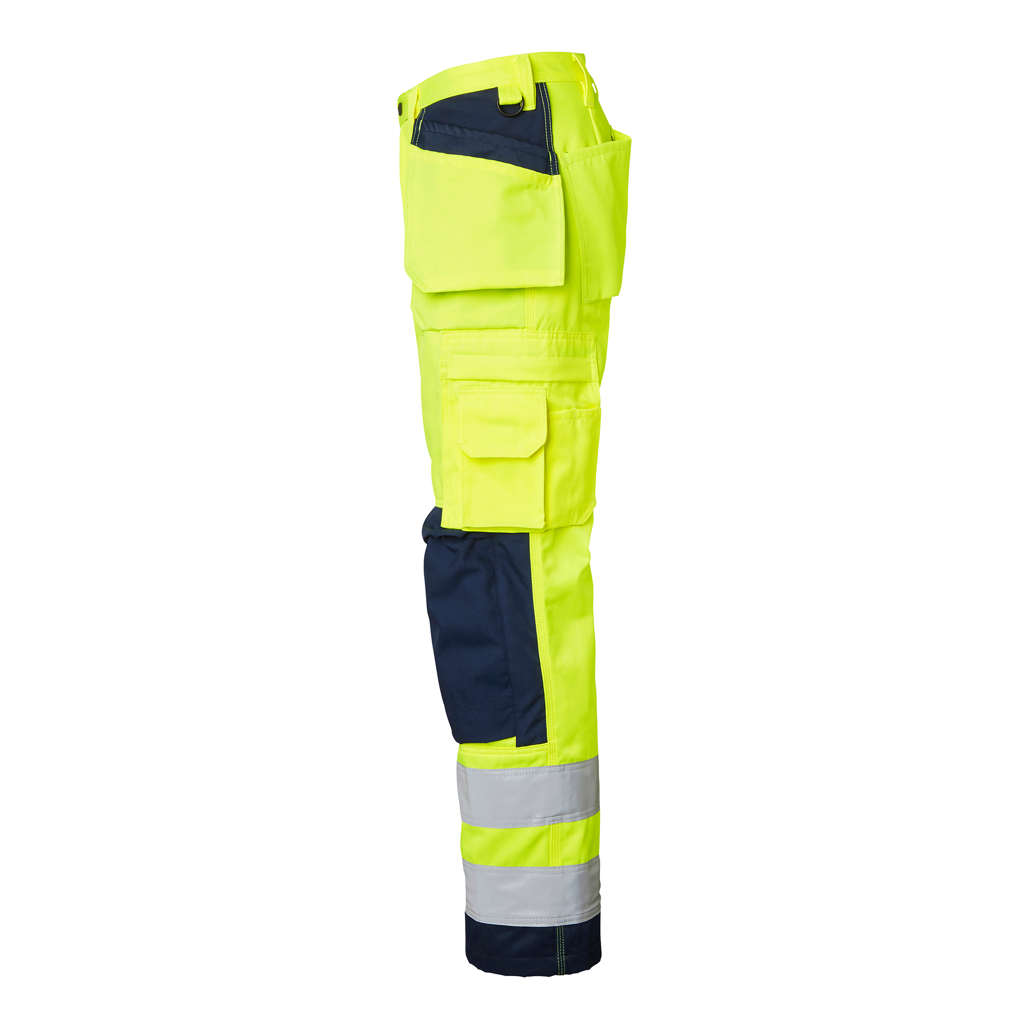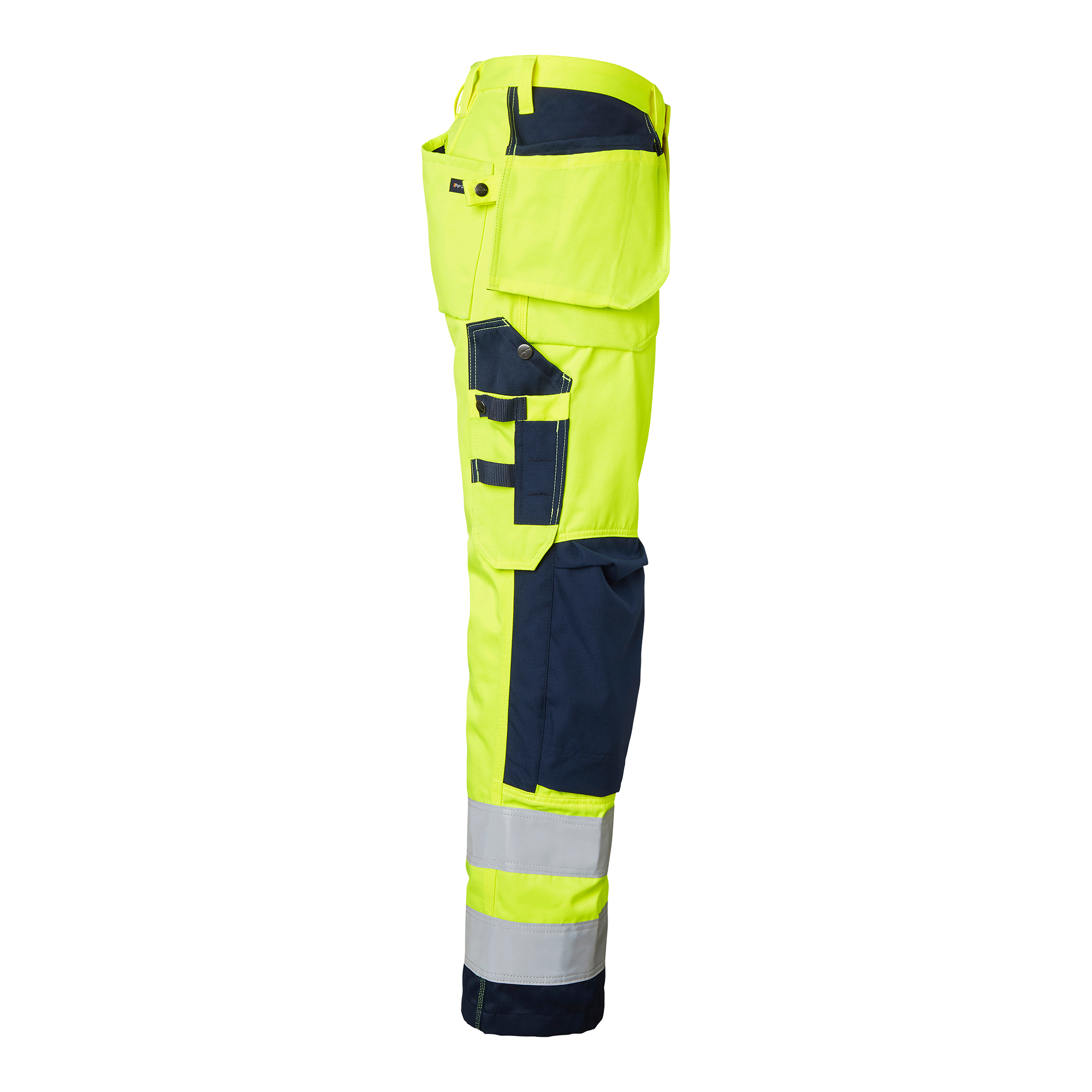 Die 2813 Hose von Top Swede ist die ideale Handwerkerhose für alle, die robuste und funktionale Arbeitskleidung benötigen. Diese Hose verfügt über vorgeformte Knie und Cordura®-verstärkte Knietaschen mit zwei Kniepolsterplätzen für optimalen Komfort und Schutz. Die Hose besitzt praktische, verdeckbare Nageltaschen, eine versteckte Ausweistasche sowie zwei Vorder- und Rückentaschen mit Patte und Klettverschluss. Zusätzlich gibt es eine Beintasche mit Patte, eine Handytasche und Stifttasche, eine Zollstocktasche mit Messerknopf und Messerschlaufe sowie Hammerschlaufe und D-Ring an der Frontpatte. Perfekt für anspruchsvolle Arbeitsumgebungen, in denen Sichtbarkeit und Funktionalität höchste Priorität haben.