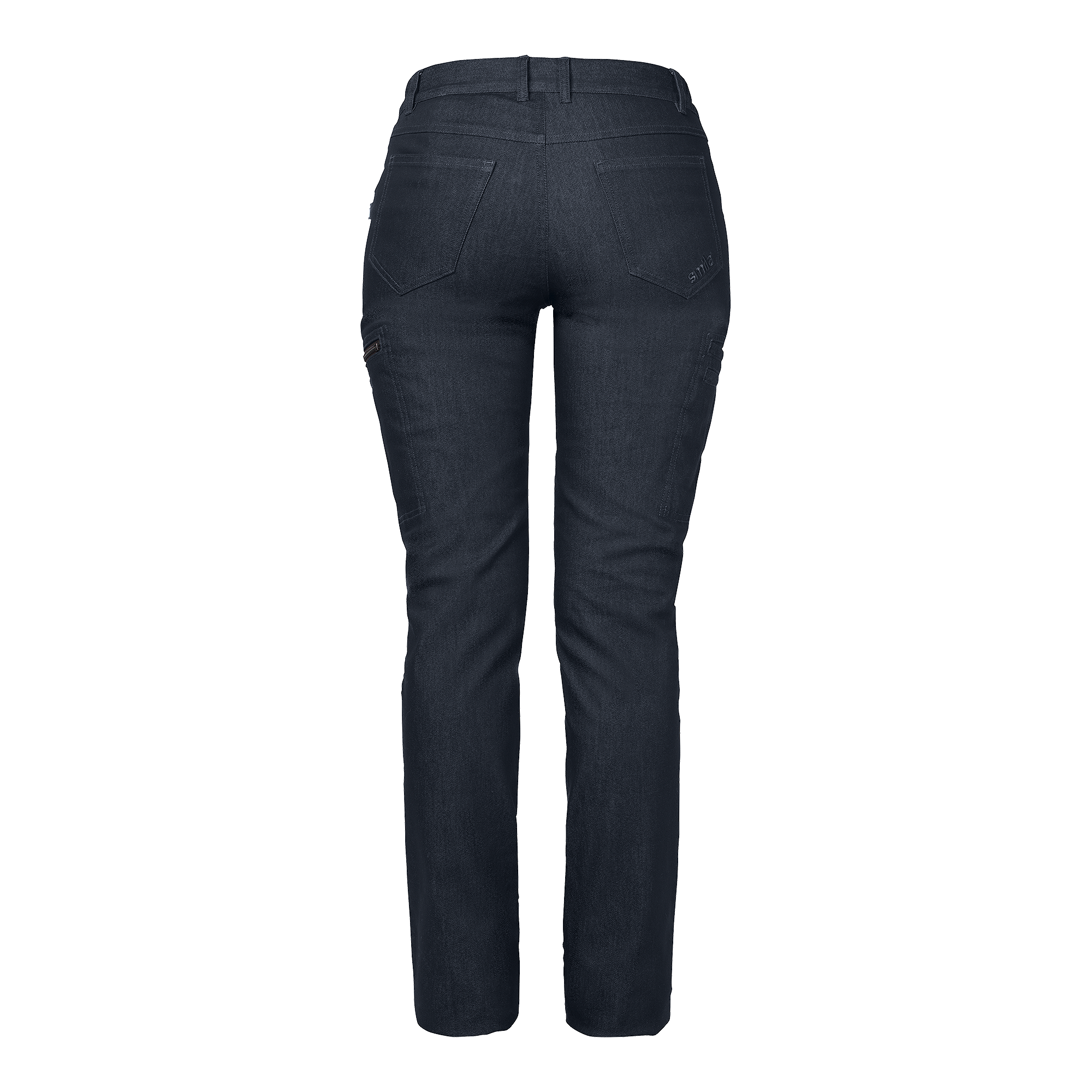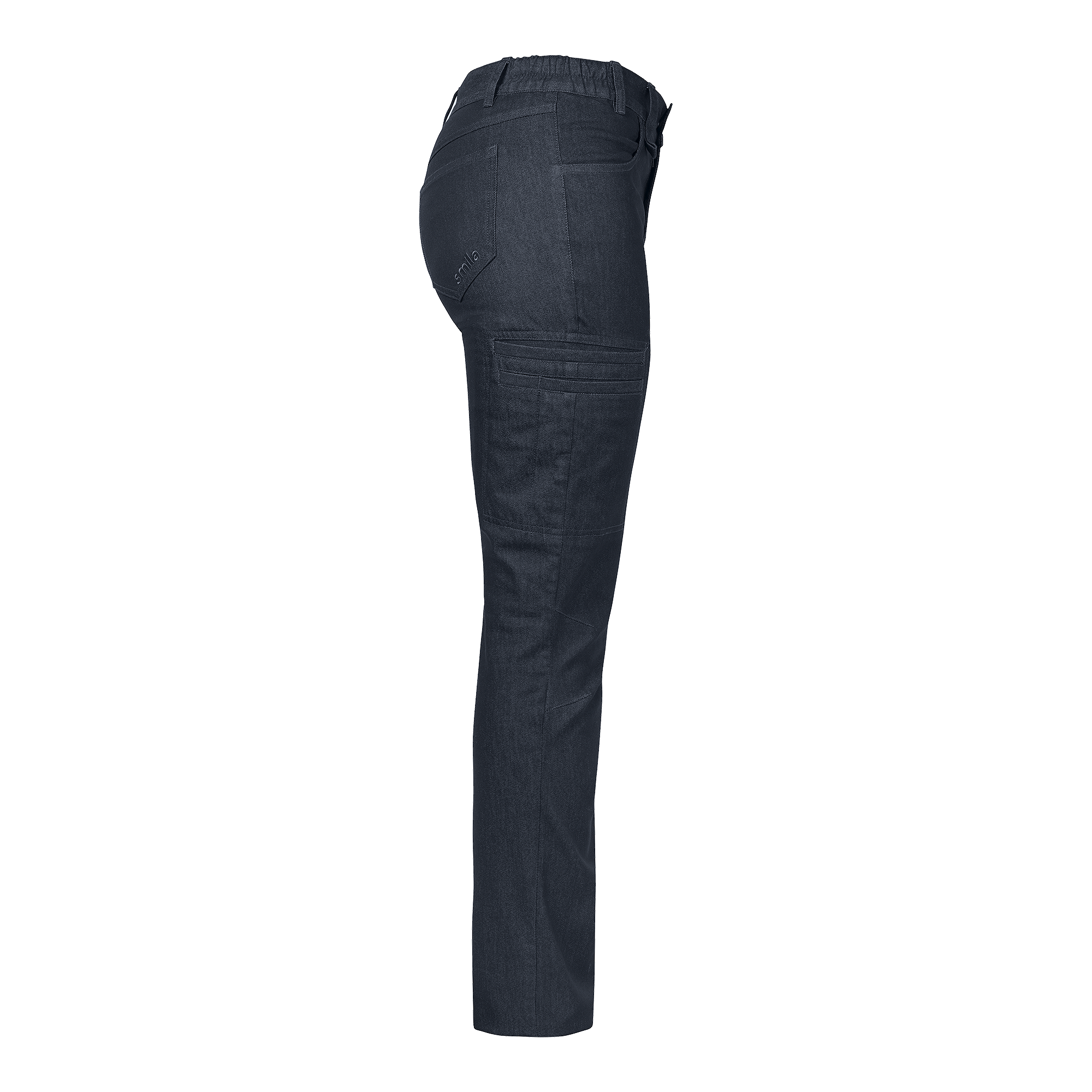 Bekleidung aus Denim im Worker-Style mit Stretch und guter Passform,. Ausgestattet mit Front- und Rückentaschen, einer Beintasche mit doppeltem Reißverschluss, Handytasche, Stifttasche sowie festem Hosenbund mit elastischen Seiten und Gürtelschlaufen. Zollgrößen.