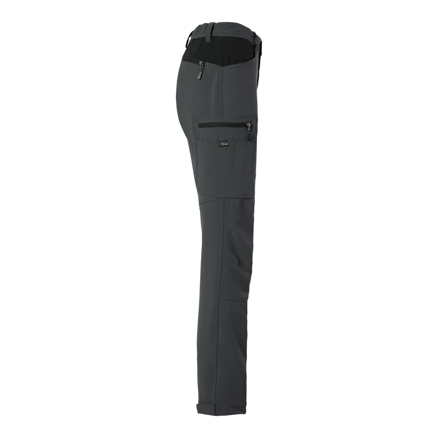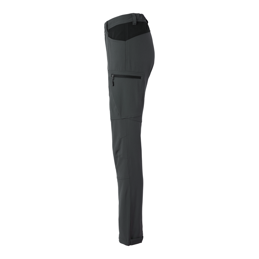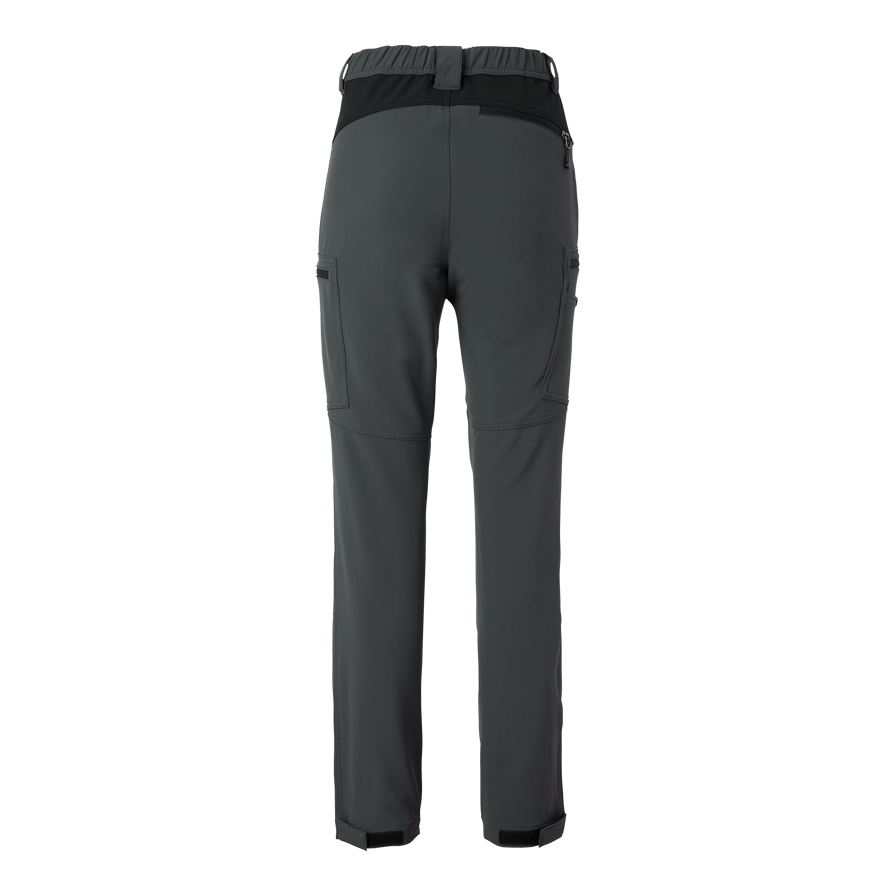 Moderne Arbeitshose mit Vapor-Passform, aus recyceltem Polyester und Elastan für optimalen Stretch und Komfort. Ausgestattet mit mehreren praktischen Taschen, darunter Stift- und Handytasche. Bein- und Gesäßtaschen mit Reißverschlüssen und reflektierenden Details. Verstellbare Beinweite mit Klettverschluss.