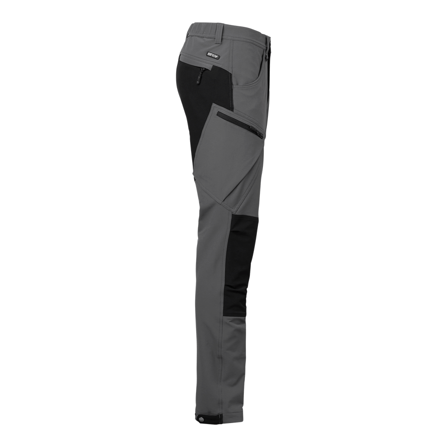 Praktische 5-Pocket-Hybridhose aus elastischem Material für optimale Bewegungsfreiheit und hohen Komfort. Bein- und Gesäßtaschen mit Reißverschlüssen und reflektierenden Details. Knöpfe am Beinabschluss zur Verstellung der Fußweite.