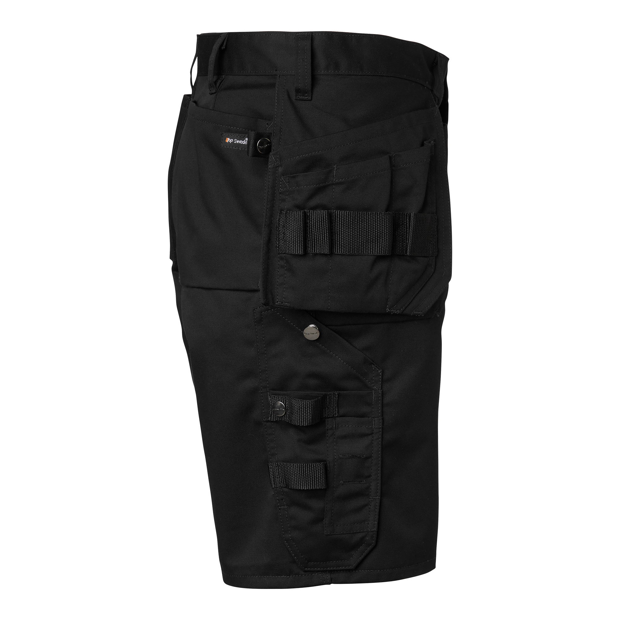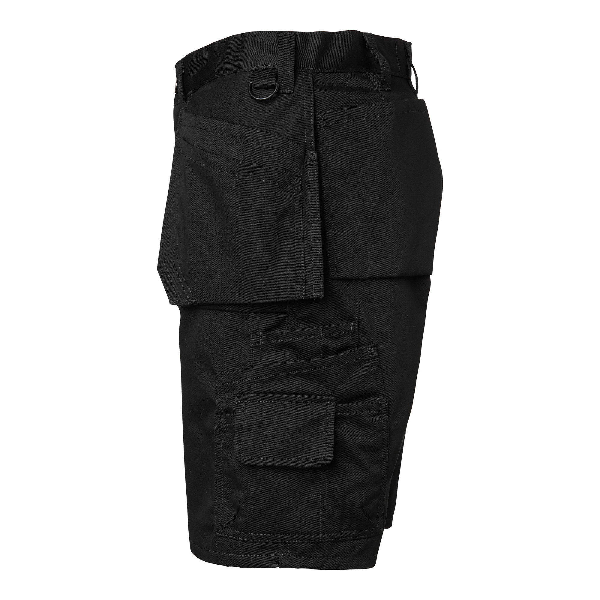 Strapazierfähige Arbeitsshorts für warme Tage von Top Swede. Sie verfügen über CORDURA®-verstärkte Nageltaschen, viel Platz zum Verstauen und clevere Details wie eine versteckte Ausweistasche und eine Hammerschlaufe. Ideal für den Einsatz im Bau und in der Industrie.