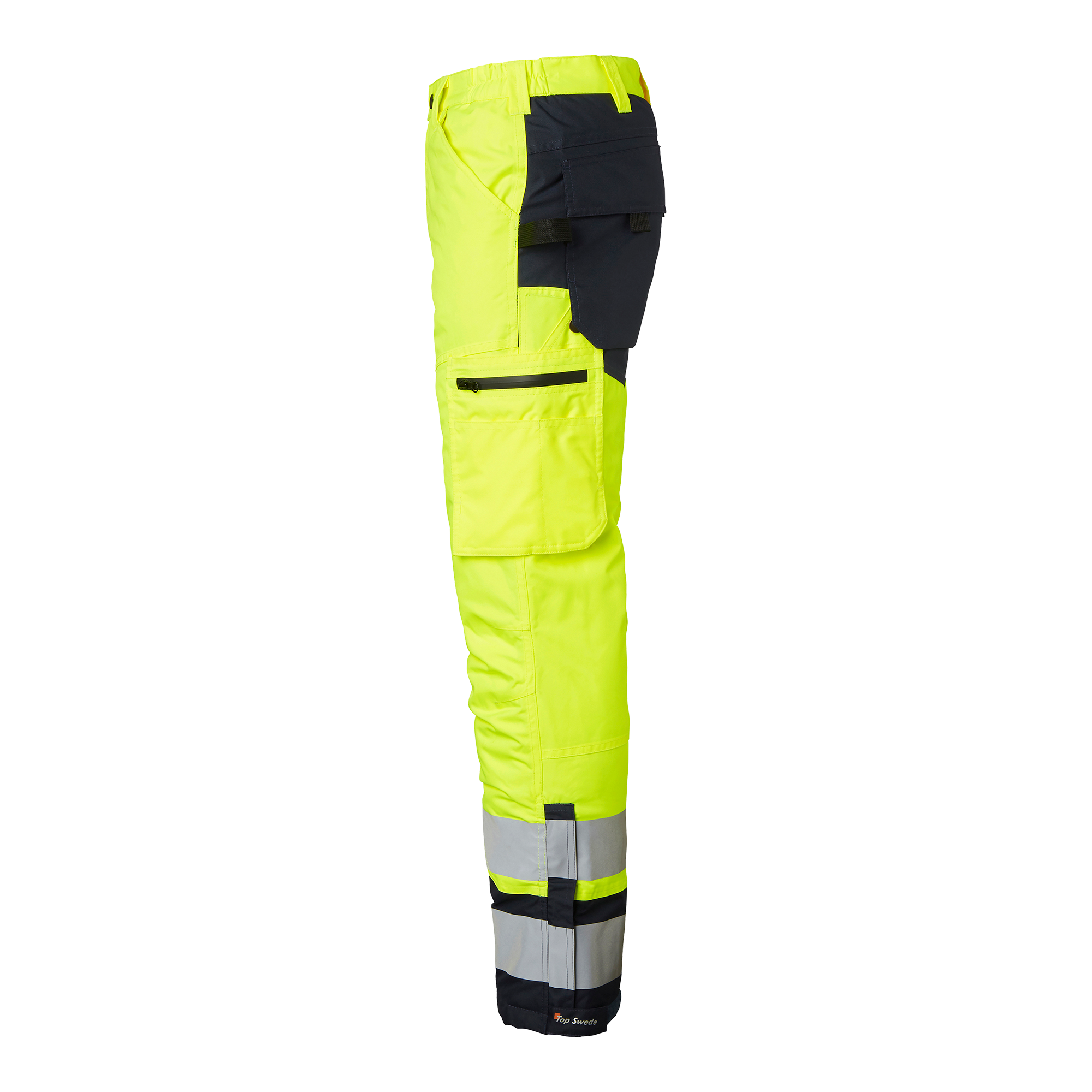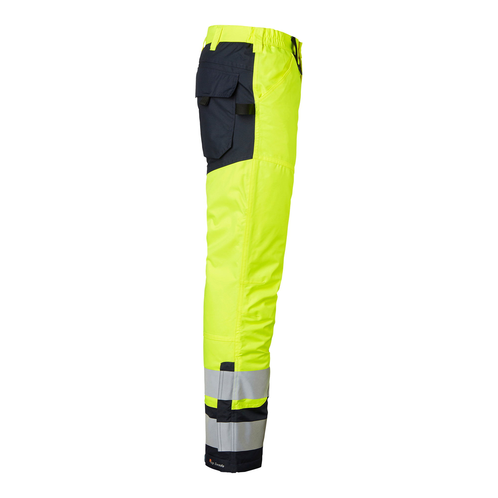 Gefütterte Winterhose von Top Swede mit vorgeformten Beinen. Wind- und wasserdicht mit verstärkten Nähten, schmutz- und ölabweisend. Mehrere praktische Taschen, innenliegende Knietaschen und verstellbarer Beinabschluss. Ideal für die Arbeit im Bau und in der Industrie.