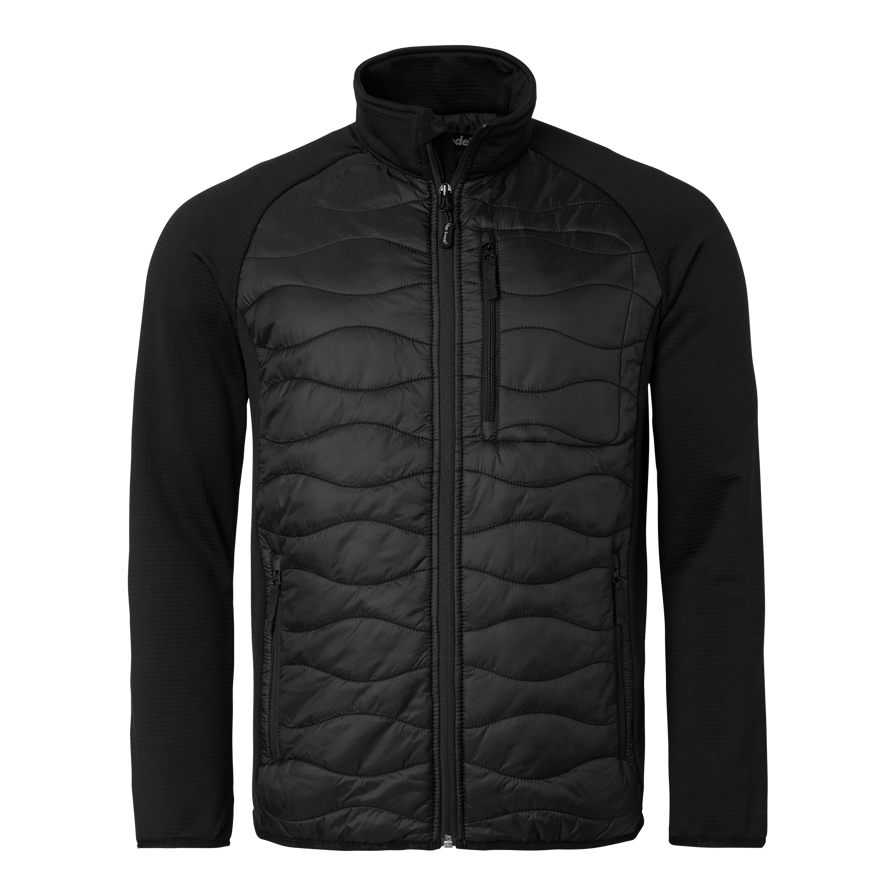 Leichtgewichtige Isolierjacke mit gestepptem Hauptteil und Fleece-Stretch-Einsätzen für optimale Bewegungsfreiheit. Durchgehender Reißverschluss mit Windschutzleiste, Brusttasche und zwei Vordertaschen mit Reißverschluss. Elastische Manschetten und Saum sorgen für Komfort.