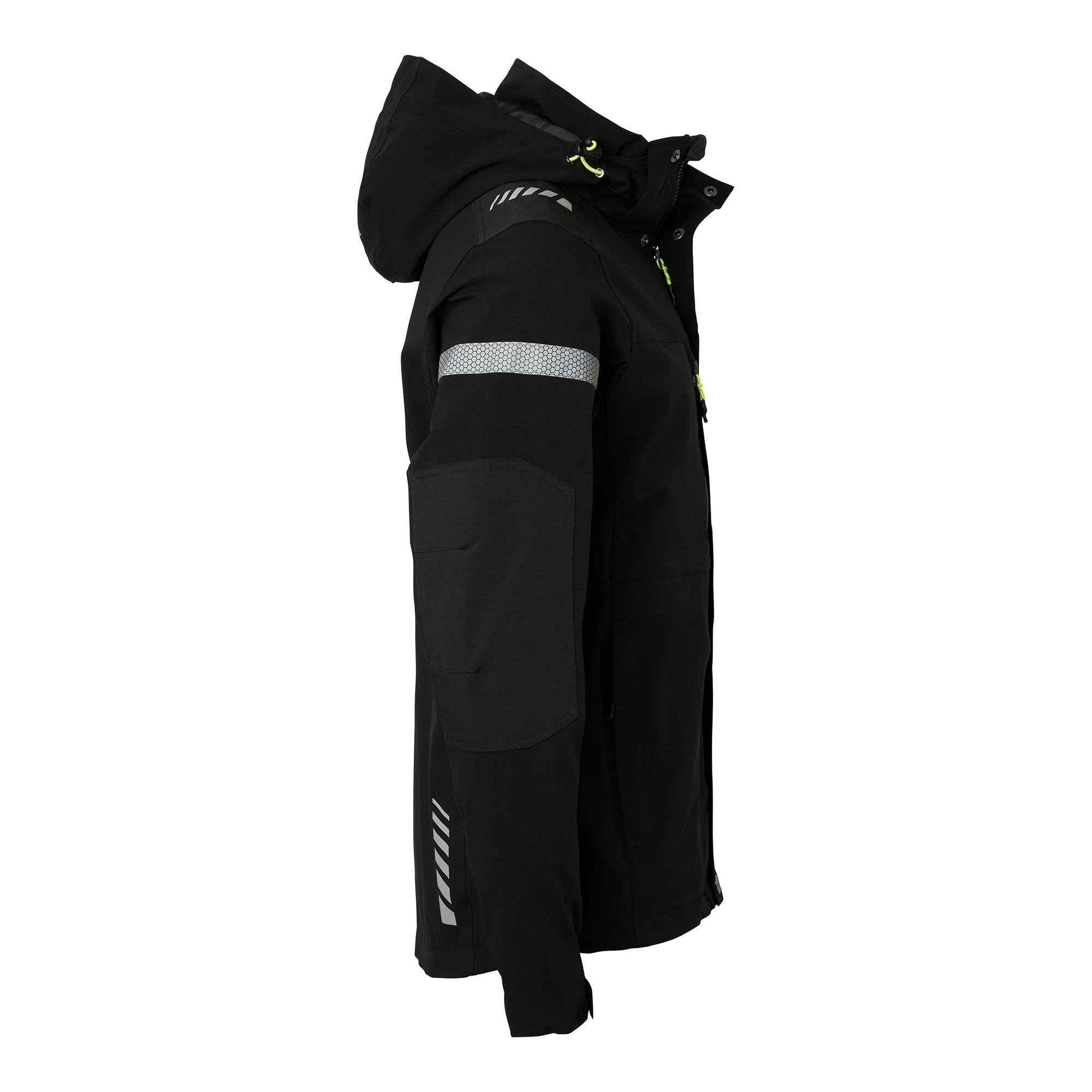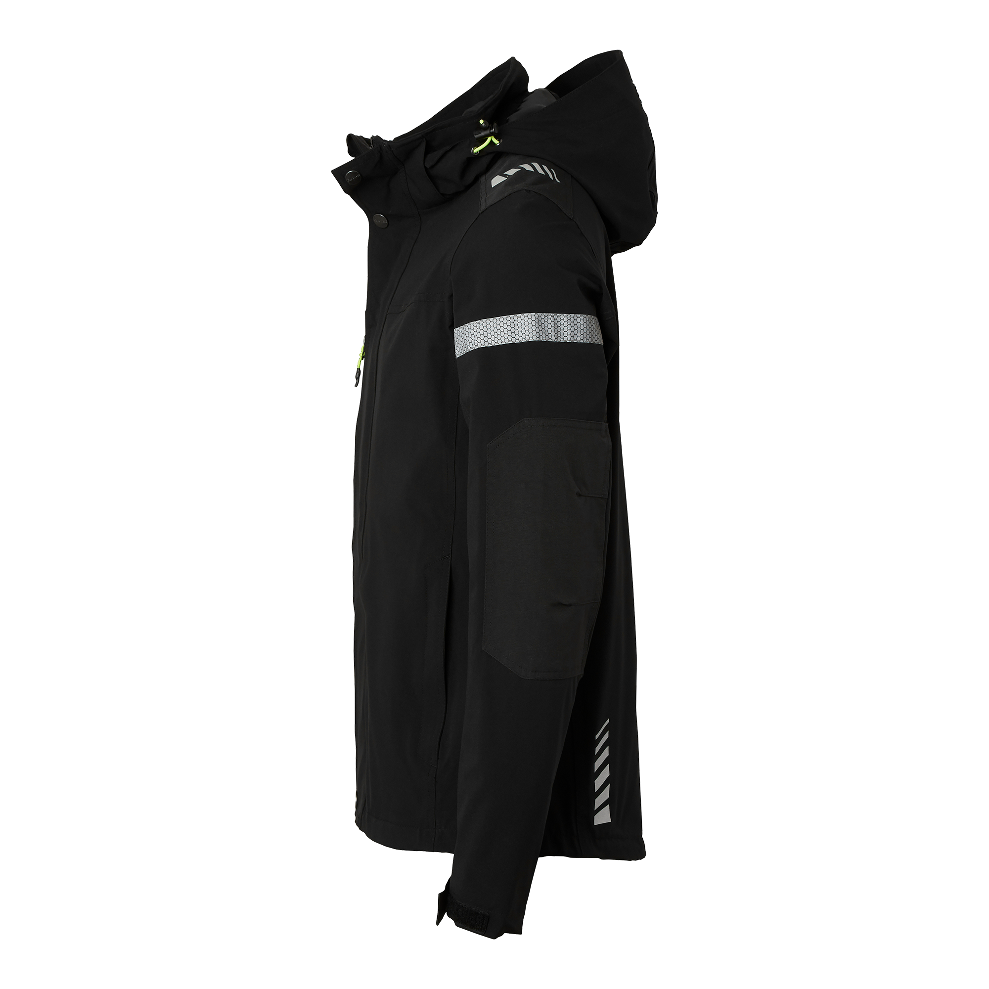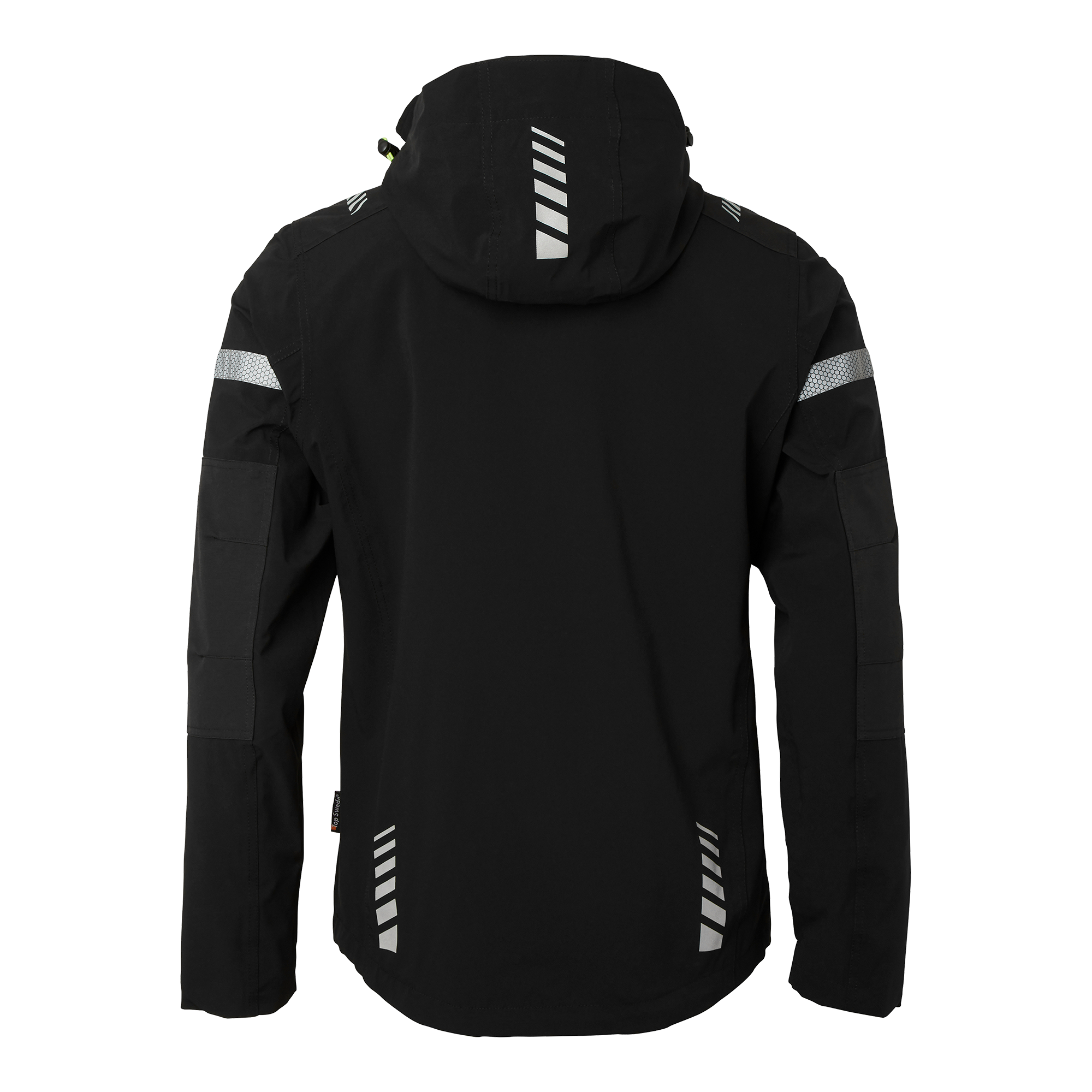 Wind- und wasserdichte Shelljacke mit verstärkten Nähten und guter Atmungsaktivität. Mit Brusttasche, Innentasche/Handytasche, großer Napoleontasche und abnehmbarer Kapuze ausgestattet. Reflektierende Details für bessere Sichtbarkeit sowie verstellbare Manschetten und Saum.