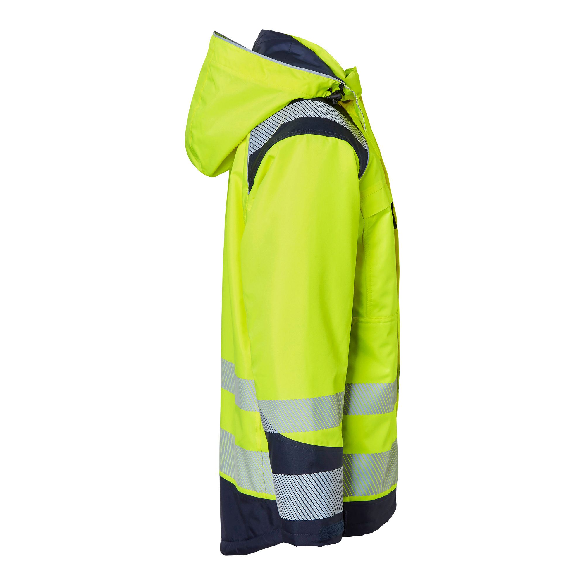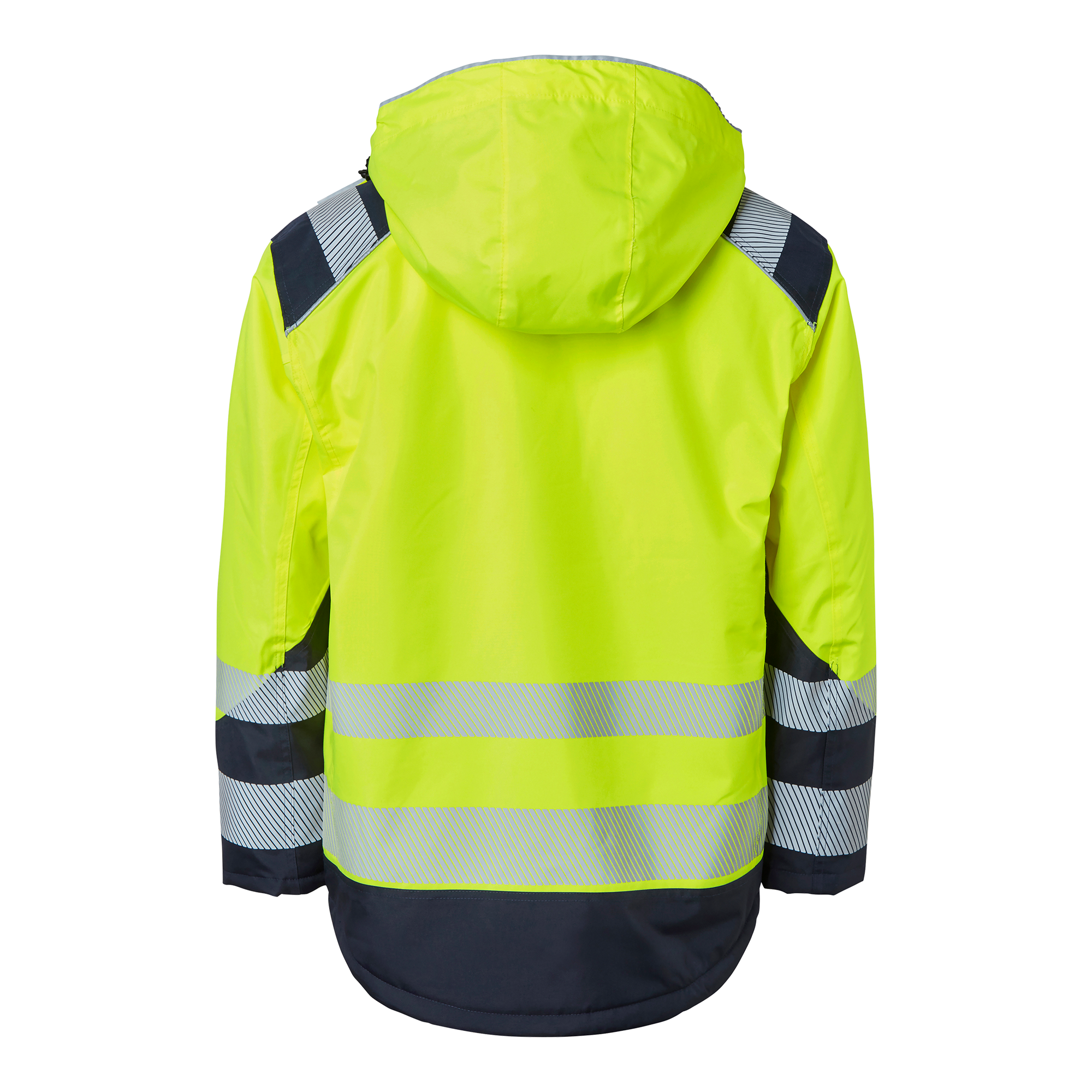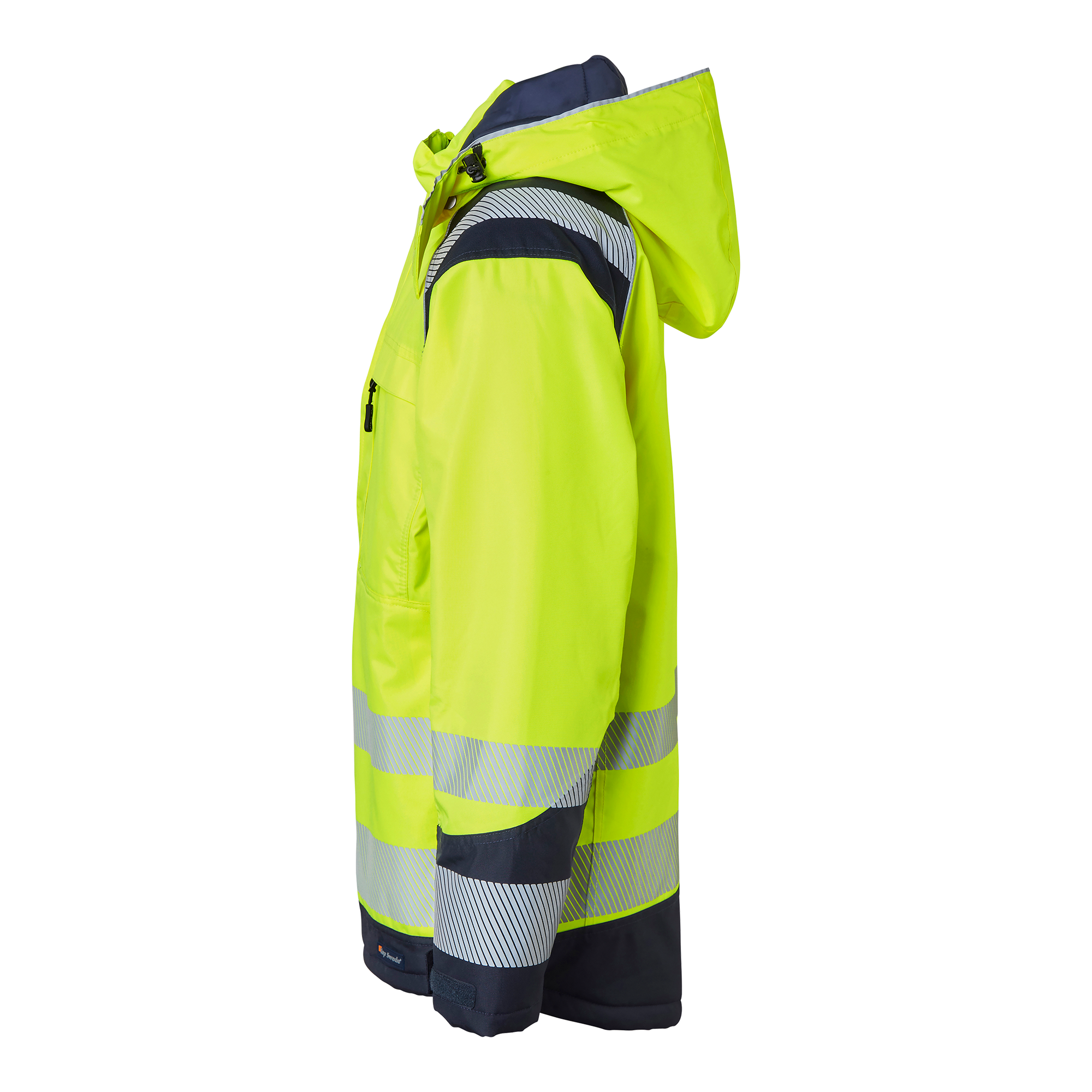 Wind- und wasserdichte Winterjacke mit verstärkten Nähten von Top Swede. Gefüttert mit Stepp- und Fleece im Kragen, verstellbarer, abnehmbarer Kapuze und mehreren Taschen. Perfekt für die Arbeit im Bau und in der Industrie.