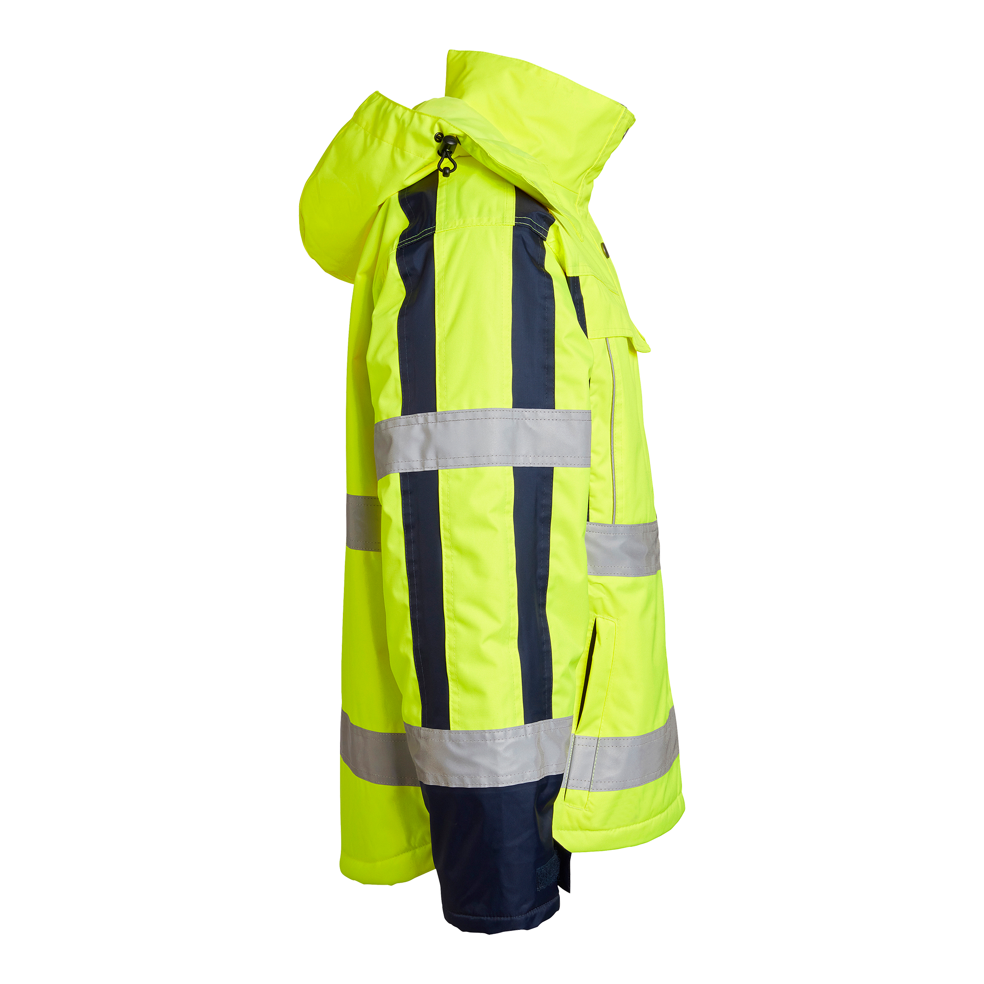 Wind- und wasserdichte Jacke mit verstärkten Nähten und guter Atmungsaktivität. Gefüttert mit Steppung und Fleece im Kragen. Ausgestattet mit mehreren Taschen, verstellbarer Kapuze, Manschetten und Kordelzug am Saum. Ideal für die Arbeit bei allen Wetterbedingungen.