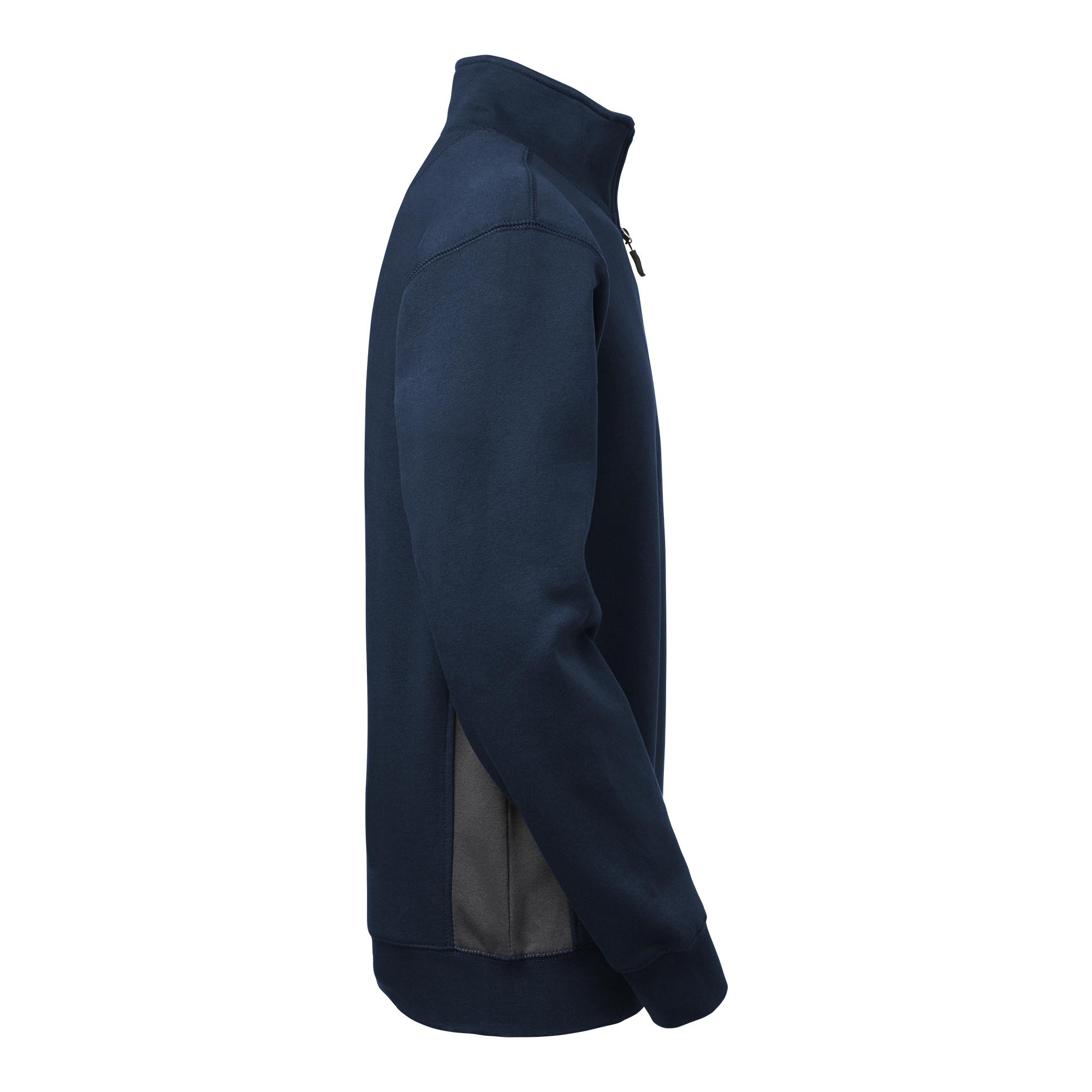 College-Pullover mit angerauter Innenseite, Stehkragen und kurzem Reißverschluss am Hals. Abgesetzte Seitenteile und elastische Manschetten an Saum und Ärmeln. Einige Farben bieten erhöhte Sichtbarkeit.