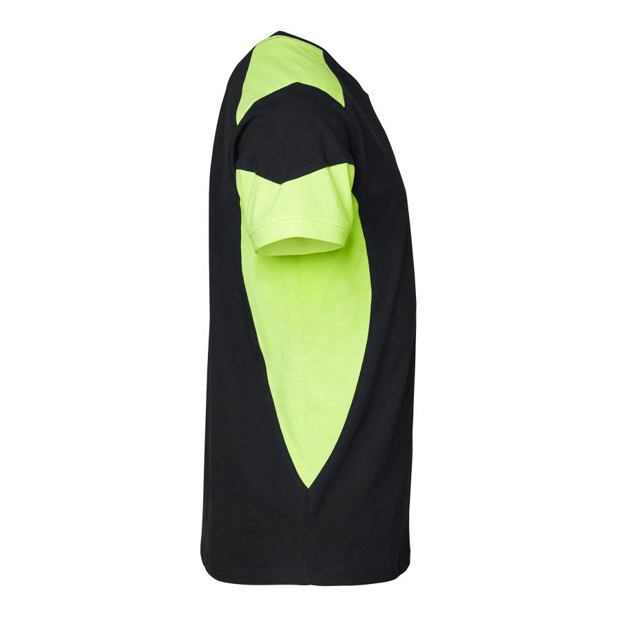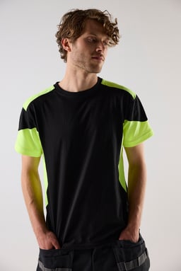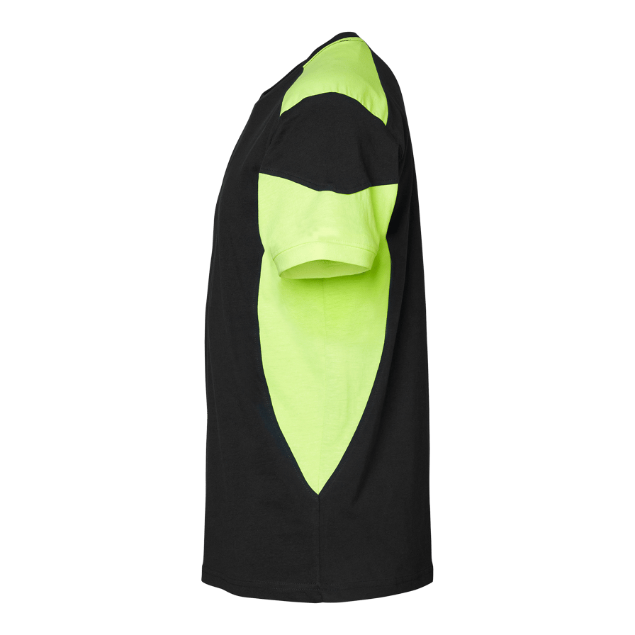 T-Shirt mit erhöhter Sichtbarkeit von Top Swede. Rundhalsausschnitt und doppeltes Nackenband mit Elastan. Aus Baumwolle und Polyester gefertigt, bietet es Komfort und Strapazierfähigkeit. Ideal für die Arbeit im Bau und in der Industrie.