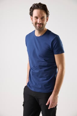 T-Shirt aus Fairtrade zertifizierter Baumwolle mit Stretch und Rundhalsausschnitt sowie schmalem geripptem Saum. Bequeme Passform, die Stil und Strapazierfähigkeit für Arbeit und Freizeit verbindet.