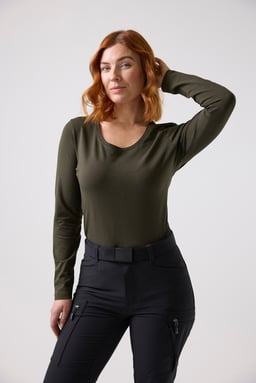 Das Lily T-Shirt von South West ist ein langärmeliges T-Shirt für Damen aus Fairtrade zertifizierter Baumwolle mit Elasthan für bequemen Stretch und perfekte Passform. Es hat einen Rundhalsausschnitt mit schmalem geripptem Saum und eine figurbetonte Passform, die Stil und Komfort verbindet – perfekt für Arbeit und Freizeit. Mit GOTS-zertifizierten Farben und einer nachhaltigen Verarbeitung ist das Lily T-Shirt w eine gute Wahl für Unternehmen und alle, die umweltfreundliche und ethisch produzierte Kleidung suchen. Dieses T-Shirt richtet sich an bewusste Frauen, die in ihrer Garderobe Qualität und Verantwortung schätzen. Es passt zu jeder Gelegenheit – vom Job bis zur Freizeit.