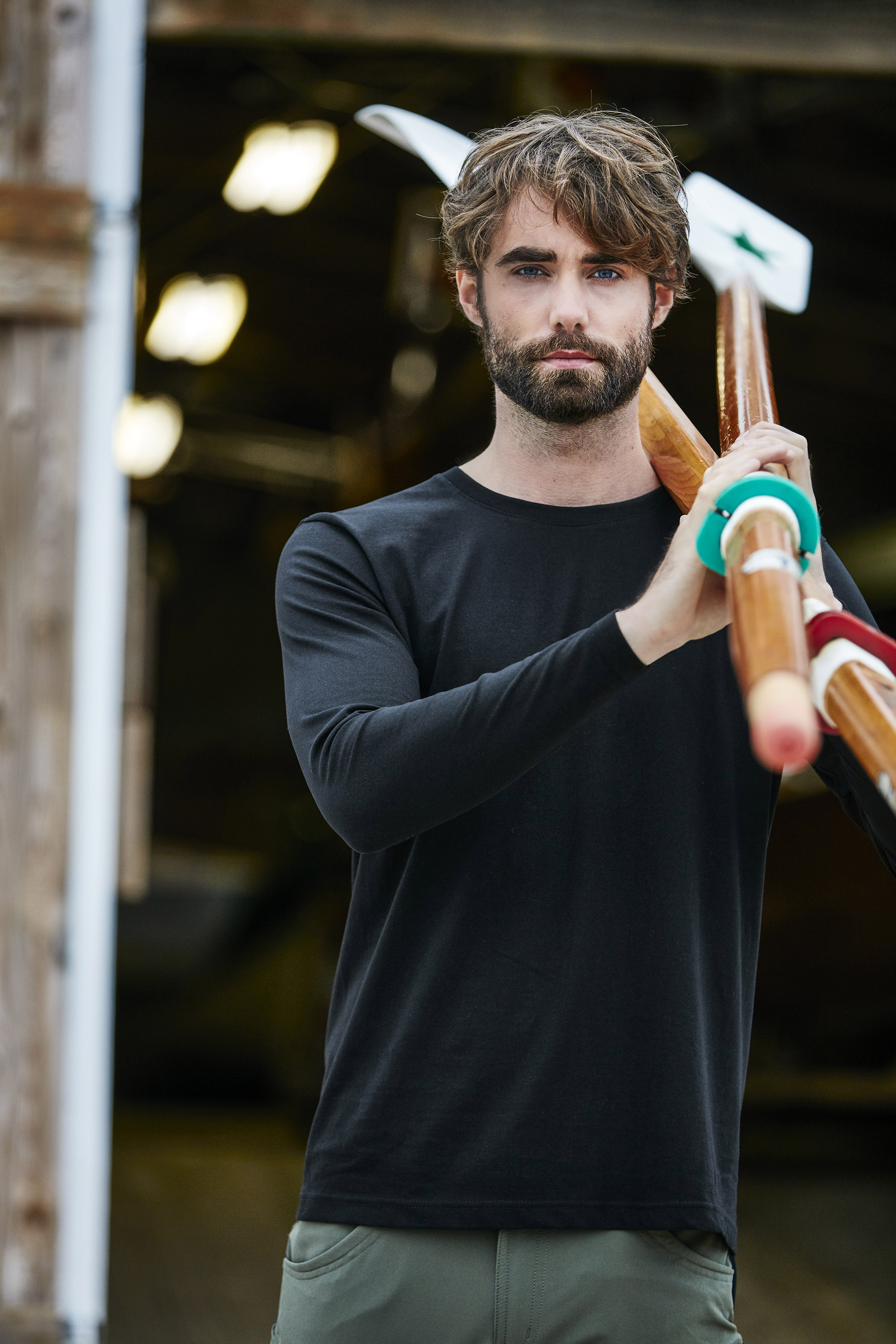 Funktionales Langarm-T-Shirt aus Baumwolle mit moderner Passform. Gefertigt aus Single-Jersey mit Elastan in den Nackenrippen für mehr Strapazierfähigkeit. Perfekt für Arbeit und Freizeit.