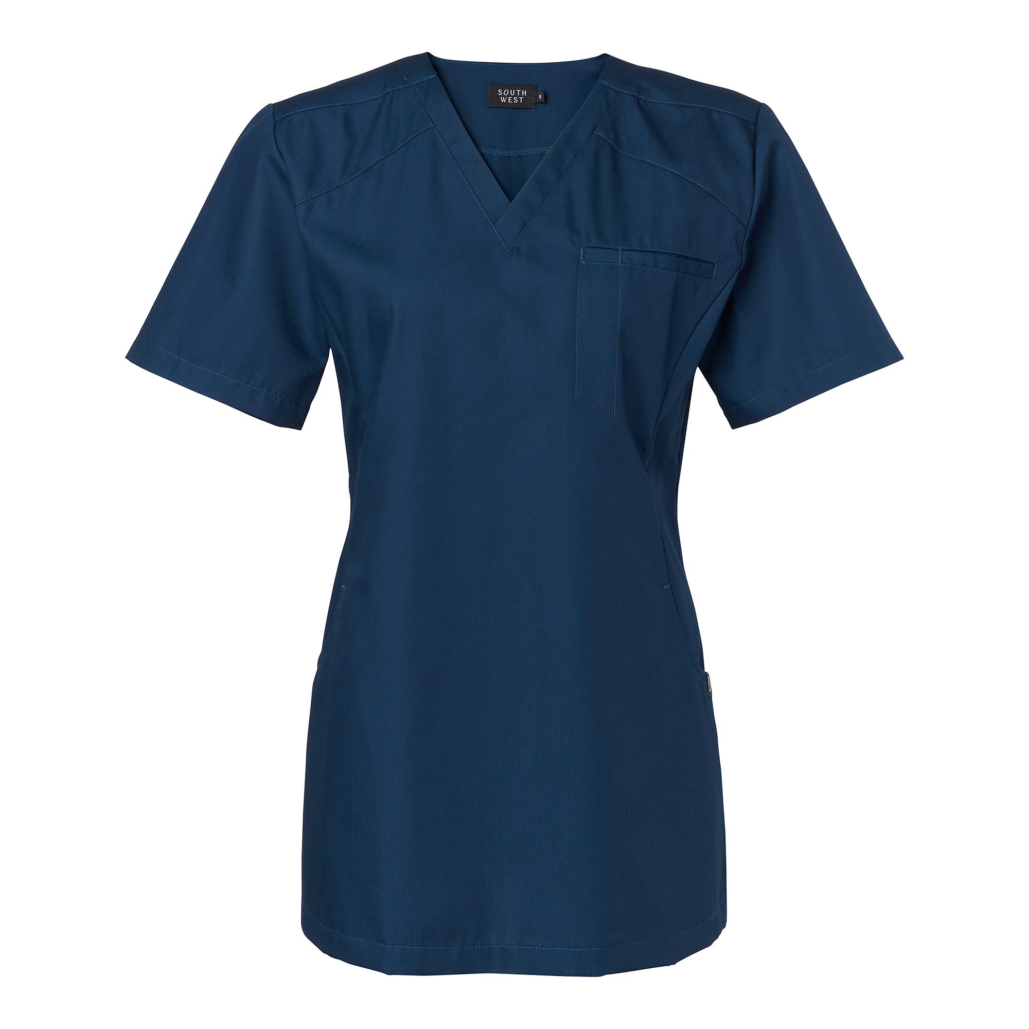 Die Amie Blouse W ist eine moderne und funktionale Damenbluse, speziell entwickelt für Fachkräfte im Gesundheits- und Pflegebereich. Mit ihrem schmeichelhaften Schnitt und durchdachten Details bietet sie hohen Komfort und ein professionelles Erscheinungsbild. Die feminine Passform entsteht durch einen eleganten V-Ausschnitt, Prinzessnähte vorne und hinten sowie eine leicht taillierte Taille, die die Körperform unterstreicht, ohne die Bewegungsfreiheit einzuschränken. Praktische Funktionen machen die Bluse ideal für anspruchsvolle Arbeitstage: zwei geräumige Fronttaschen – eine davon mit integrierter Handytasche und Schlüsselhalter –, eine Brusttasche sowie dezente Seitenpaneele mit zusätzlichen Aufbewahrungsmöglichkeiten. Ein Rückenschlitz im Paneel erhöht die Beweglichkeit zusätzlich – perfekt für aktives Arbeiten, bei dem jede Bewegung zählt. Die Amie Blouse W ist Teil der South West Pflegemodenkollektion, die auf langlebige Materialien, durchdachtes Design und ganztägigen Tragekomfort setzt. Mit der Amie Blouse W erhalten Pflegekräfte eine stilvolle Arbeitsbluse, die Funktionalität, Bewegungsfreiheit und einen gepflegten Look vereint – die ideale Wahl für alle, die sich wohlfühlen und professionell auftreten möchten.