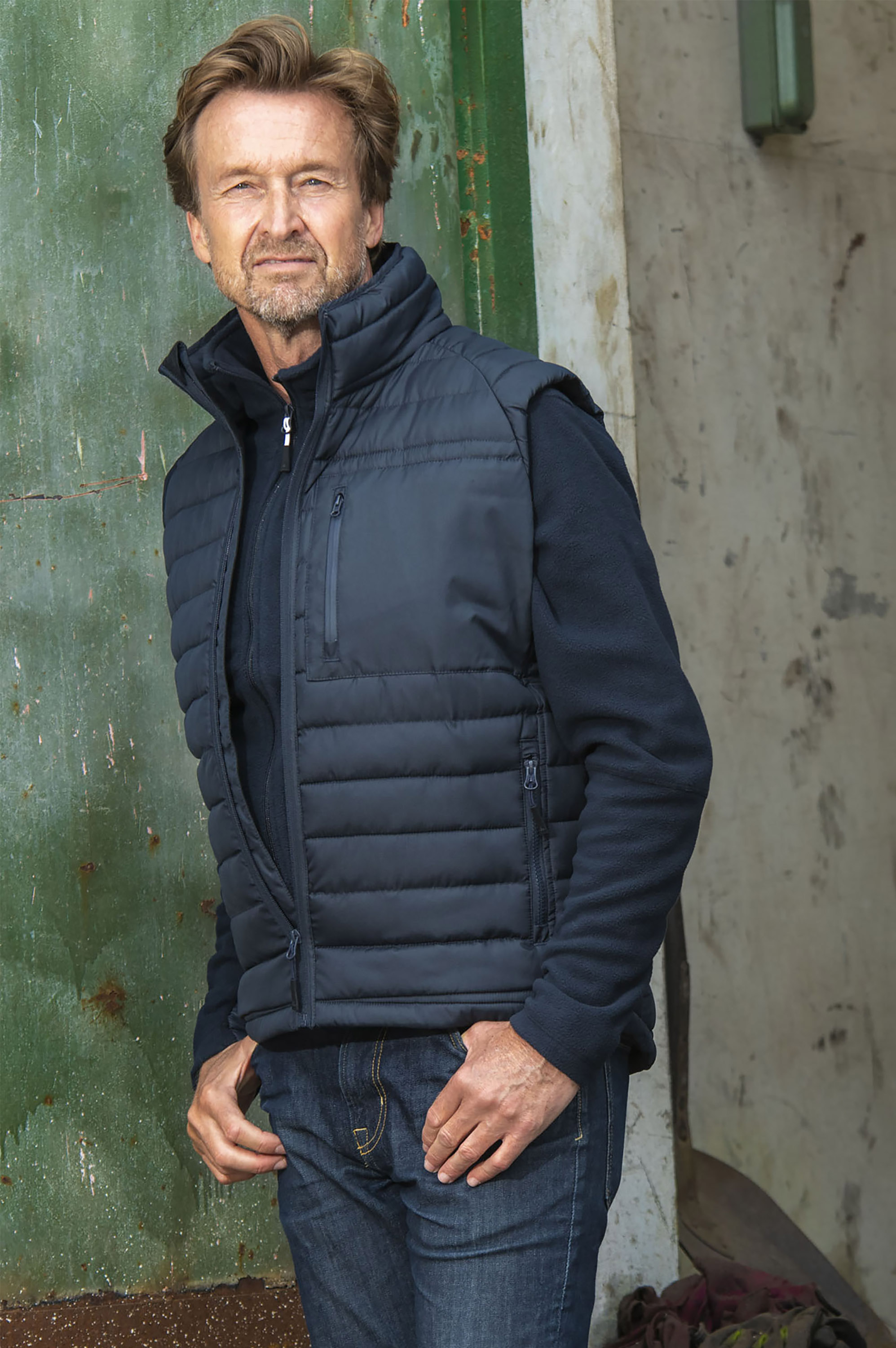 Die Garcia Weste von Matterhorn ist eine umweltfreundliche und funktionale, leichtgewichtige Weste aus recyceltem Polyester. Diese winddichte und wasserabweisende Weste verfügt über ein PFC-freies Bionic Eco-Finish, das vor Feuchtigkeit und Wind schützt und sie ideal für Arbeit und Freizeit macht. Das gesteppte Design verleiht einen modernen Look, während die leichte Wattierung warm hält, ohne schwer zu wirken. Zwei praktische Seitentaschen und eine Brusttasche bieten einfachen und bequemen Stauraum. Die Garcia Weste ist eine hervorragende Wahl für alle, die eine strapazierfähige und modische Weste mit Komfort und Funktionalität suchen.