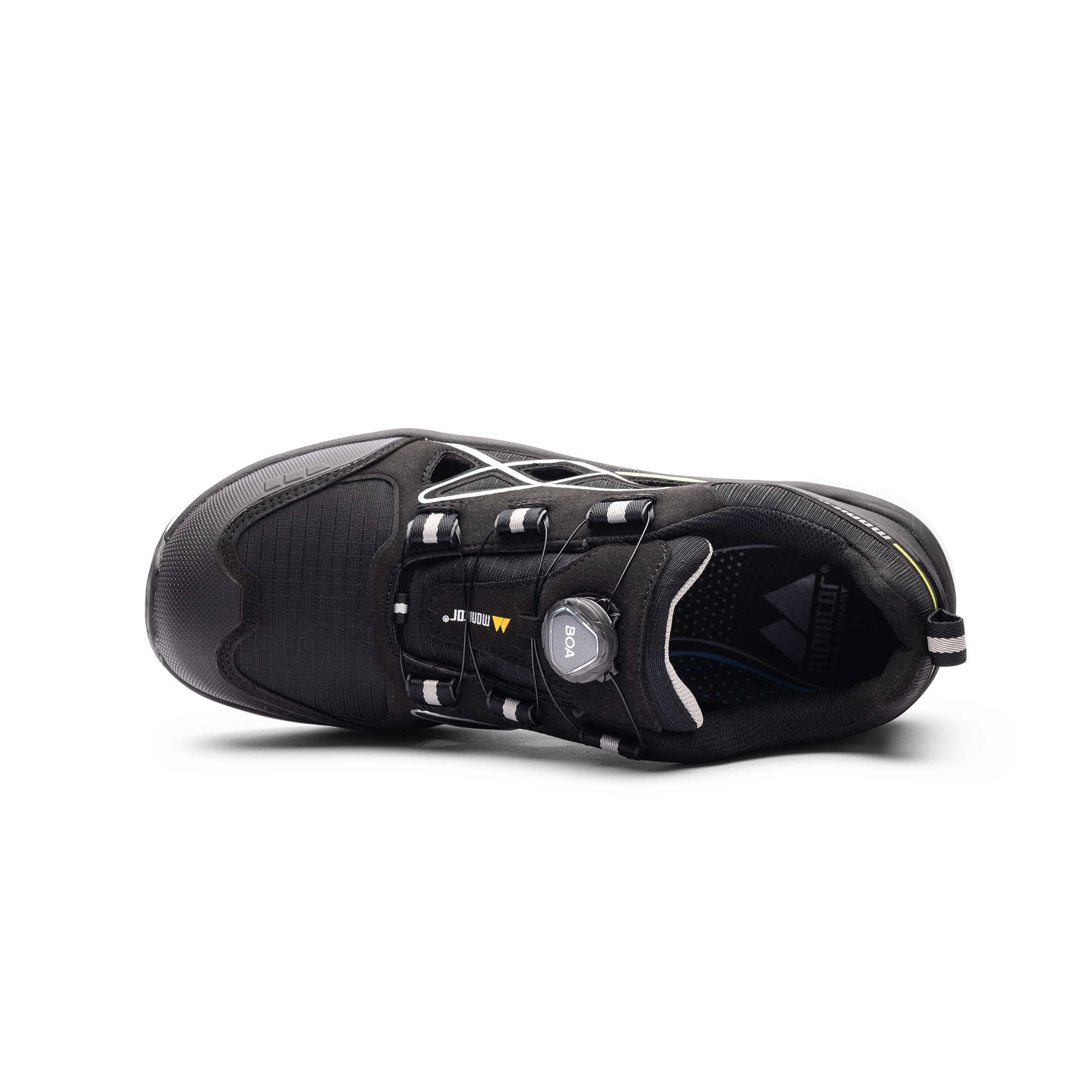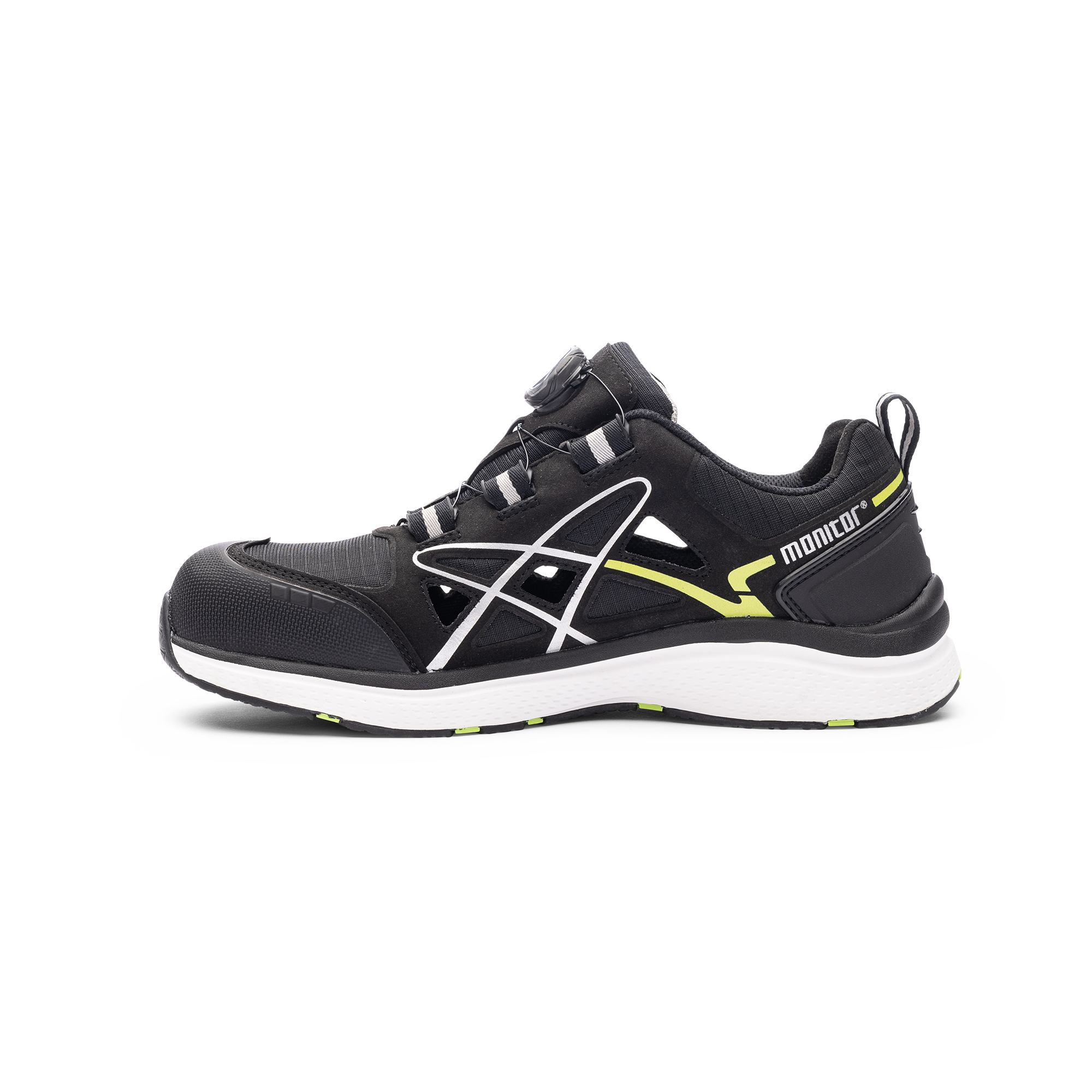 Entdecke die Monitor Enterprise Sicherheitssandale, Teil der Monitor Graphic-Reihe von leichtem Sicherheitsschuhwerk für Lager-, Industrie- und leichte Bauarbeiten. Die Enterprise ist eine extrem leichtgewichtige Sandale mit nur 520 Gramm Gewicht, die hohe Sicherheit mit außergewöhnlichem Komfort und Leichtigkeit verbindet. Das Obermaterial besteht aus Ripstop, einem robusten Material, das Strapazierfähigkeit und Belüftung garantiert. Die Sandale ist mit einem robusten TPU-Nasen- und Fersenschutz ausgestattet, der zusätzlichen Schutz vor Abnutzung bietet. Die weite Passform und das BOA® L6-Schnürsystem sorgen für eine perfekte und individuell anpassbare Passform, die Komfort und Sicherheit erhöht. Die Monitor Enterprise Sicherheitssandale verfügt über eine breite Aluminium-Zehenkappe und Pantzar APT Spikeschutz, die maximalen Schutz bieten, ohne die Flexibilität einzuschränken. Die robuste Gummi-Außensohle sorgt für hervorragenden Halt und Stabilität auf verschiedenen Untergründen, während die EVA-Zwischensohle exzellente Dämpfung und Komfort bietet. Die Innensohle Pro Support Recycle von Monitor besteht aus recyceltem Polyurethan und erhöht Komfort sowie Strapazierfähigkeit. Die Sandale ist außerdem mit ESD-Schutz ausgestattet, der elektrostatische Entladungen verhindert und so empfindliche Elektronik schützt. Diese Sandale ist ideal für Männer und Frauen, die einen zuverlässigen und bequemen Sicherheitsschuh mit erstklassiger Leistung und Strapazierfähigkeit suchen. Wähle die Monitor Enterprise Sicherheitssandale und erlebe den ganzen Arbeitstag über eine Kombination aus hoher Sicherheit, herausragendem Komfort und Leichtigkeit.